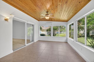 Discover a home that truly stands out in the Sebastian Highlands neighborhood, offering the freedom of NO HOA living. Freshly painted inside and out with a brand-new 2025 roof. This home offers a split floor plan with high vaulted ceilings, detailed trim accents, tile flooring in the main living areas, and carpeted bedrooms for added comfort. The oversized lot provides space to park a boat or RV, along with a 2-car garage that includes a built-in workshop. A detached shed adds extra storage, while mature trees and a built-out deck create a private outdoor oasis. Inside, enjoy two inviting living areas, including a bright sunroom with a new mini-split AC, abundant natural light, and charming tongue & groove wood ceilings. Conveniently located close to shops, restaurants, and local parks.