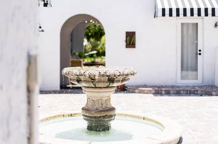 Welcome to this gorgeous 1920s Spanish Compound in the Heart of West Palm Beach. Step into a piece of timeless Palm Beach history -- a stunning Spanish-style estate celebrating its 100th year. Once owned by the best friend of Lilly Pulitzer, this one-of-a-kind property captures the essence of Old Florida charm with a touch of bohemian luxury.Set on a lush 1/2-acre in one of West Palm Beach's most desirable neighborhoods, this thoughtfully restored compound features a 4-bedroom main house, a spacious 1,200 sq/ft studio with vaulted ceilings, and two private apartments -- offering flexibility for guests, staff, or extended family.Every corner of this estate has been curated with care, blending original architectural details with elegant modern updates.The grounds are a tropical paradise, stroll through the orchid garden, gather by the fountain, or host unforgettable dinners and celebrations in the courtyard under twinkling bistro lights. Perfect for seasonal stays, family gatherings, or business retreats, This is more than a property it's an experience. Enjoy the vibrant lifestyle of West Palm Beach, with the city's best shopping, dining, and cultural attractions just a short walk away. Historic. Elegant. Unrivaled. Come discover the magic of this property where heritage, artistry, and elegance meet.