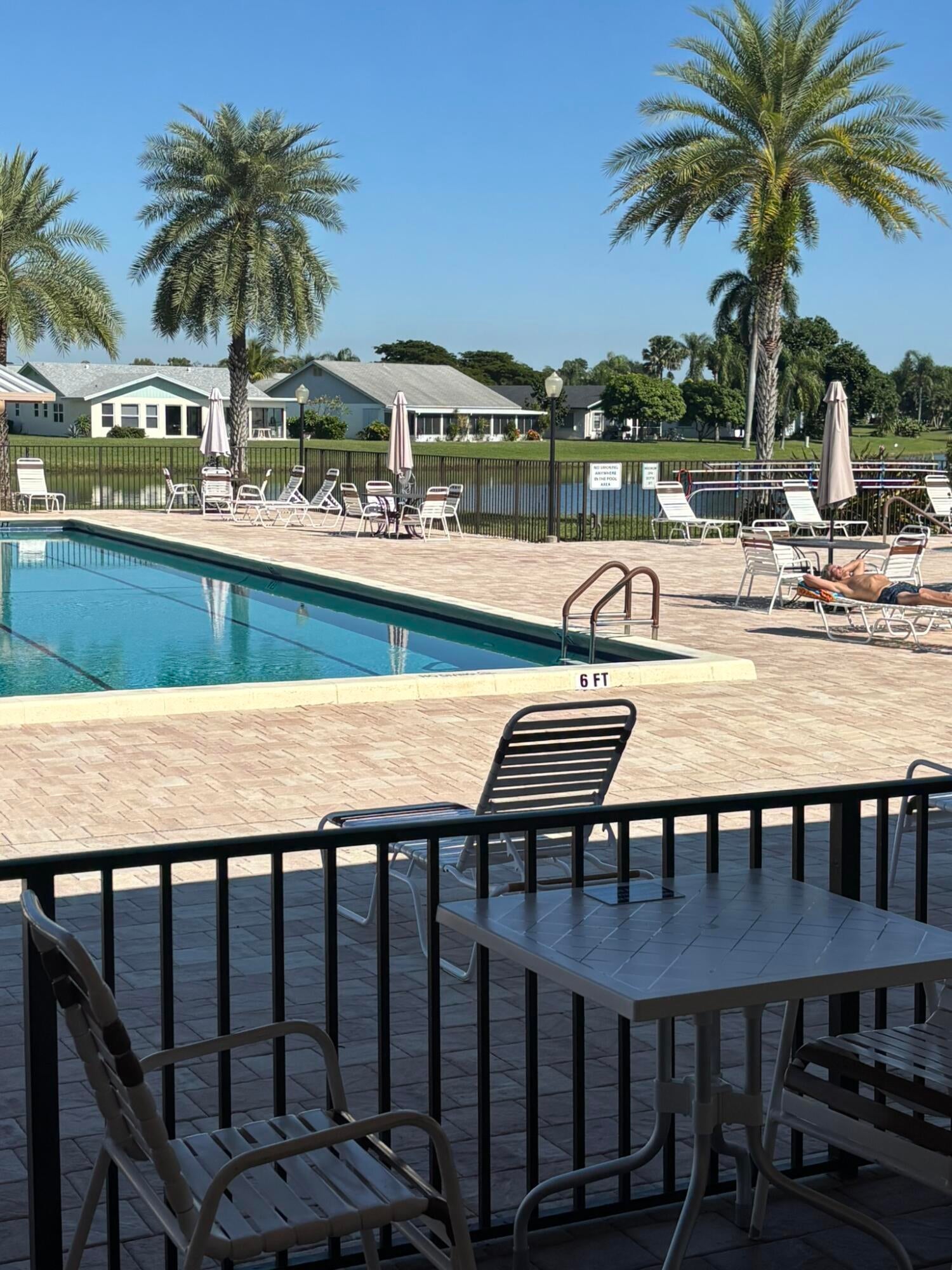 Beautiful 3/2 second floor end unit. Has an elevator and stairs to get to the second floor. a Brand new patio just installed . Pool for this location Manned Gated Commuitity offers another large community pool and Golf course,tennis courts,pickle ball,shuffleboard,bocce