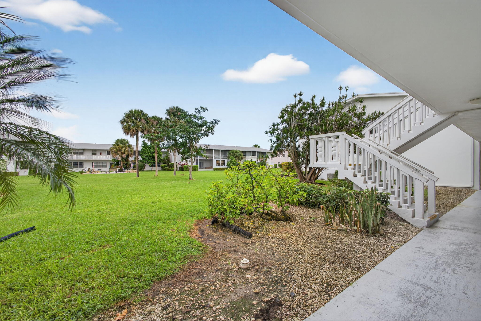Bright and spacious ground-floor condo with plenty of natural light throughout. The functional kitchen features a convenient pass-through window that opens to the living area -- perfect for casual dining or entertaining. A large hallway closet provides great storage space, and the open, screened porch offers relaxing south views and a perfect spot to enjoy the Florida sunshine and breeze.This condo does need some updating, giving you the opportunity to make it your own or invest in a property with great potential. Conveniently located near the community laundry area and close to shopping, dining, and major roadways.