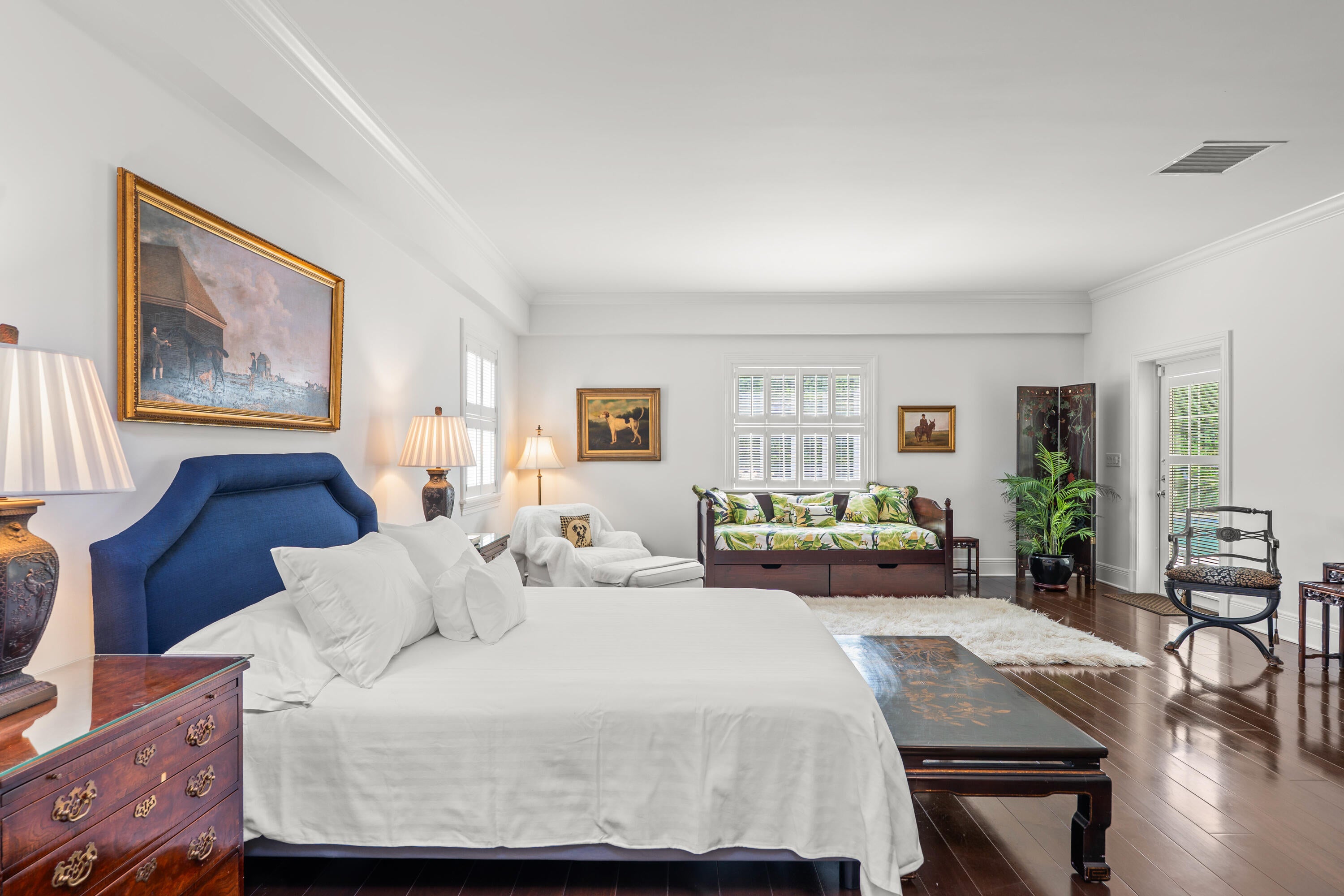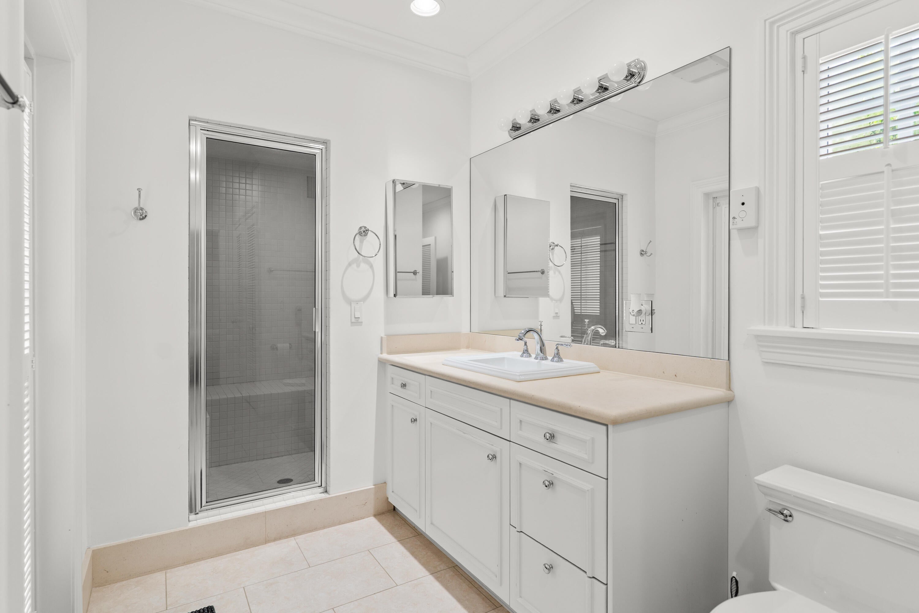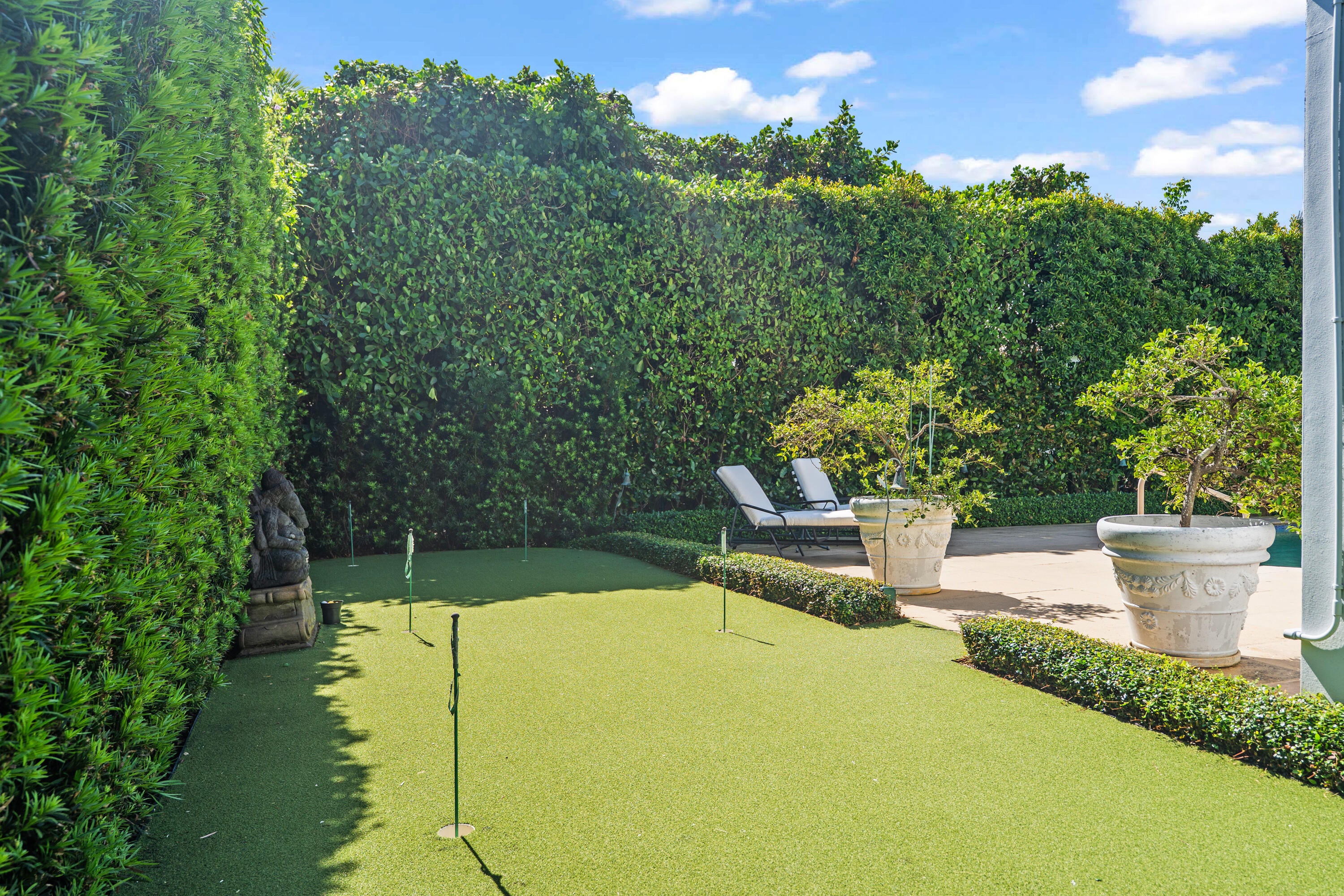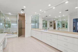 This stunning 4-bedroom, 4.5-bathroom home is situated on an expansive 149' x 97' lot on the sunny southern side of one of the most desirable streets in the Near-North End, this property offers a perfect blend of comfort and style. Renovated in 2015, the home boasts a spacious living area, wood floors, a new roof, and updated windows. As you step into the foyer, you'll be captivated by the meticulously crafted classic architectural details that adorn this one-story masterpiece. The living room seamlessly transitions into a breakfast area, leading to French doors that open to the covered loggia and adjacent pool. The large gourmet kitchen is a culinary haven, featuring granite countertops, stainless steel appliances, an ice maker, and a wine refrigerator. Each bedroom is elegantlyappointed with its own en-suite bathroom, while the attached guest suite offers a luxurious retreat with a spacious steam room. Additional features include an attached gas generator, a putting green, impact glass, and electric hurricane-rated screens for the loggia. The home also boasts a convenient 2-car garage with ample storage space.