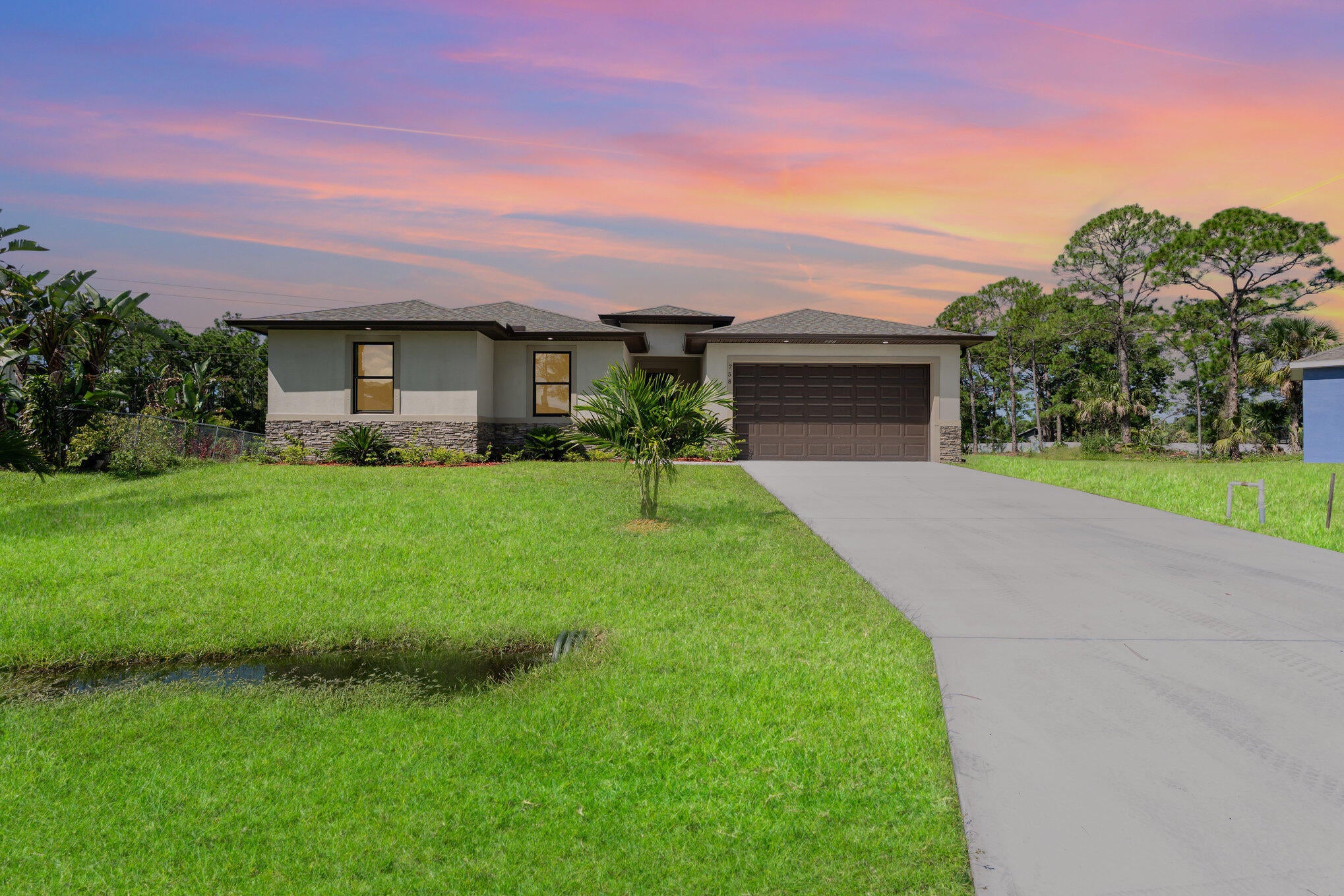 SPECIAL INTEREST RATES AVAILABLE, FLEX CASH OR NO CLOSING COST LOANS AVAILABLE. One or more photo(s) has been virtually staged--New Construction. This Luxurious 4-bedroom, 2.5 Bath Property is exquisitely built with all of the upgrades nestled in the heart of Palm Bay. Inside you will find a wonderfully open floor plan perfect for gatherings and entertaining. The capacious Chef's Kitchen is stylishly equipped with an island, solid wood cabinets, stainless steel appliances and ample storage. The contemporary living space is bursting with natural light and a flowing layout that is inviting and relaxing. Luxuriate in the vast Primary Suite that offers a collection of modern conveniences. This beautiful house is full of INCLUDED upgrades: solid wood soft close cabinets in the kitchen.
