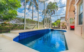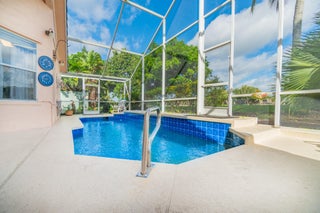 Beautiful 3-bedroom, 2-bathroom CBS pool home with 2-car garage and brand-new 2025 roof! This 1,548 sq ft lakefront home offers an open split floor plan with tile flooring throughout, stainless steel appliances, and granite countertops in the kitchen. Enjoy stunning lake views from your screened patio, sparkling pool with new pool pump, and relaxing hot tub perfect for entertaining or quiet evenings at home. Spacious primary suite with walk-in closet and plenty of natural light. Located in desirable West Palm Beach, close to shopping, dining, and highways. Move-in ready! Your South Florida oasis awaits!