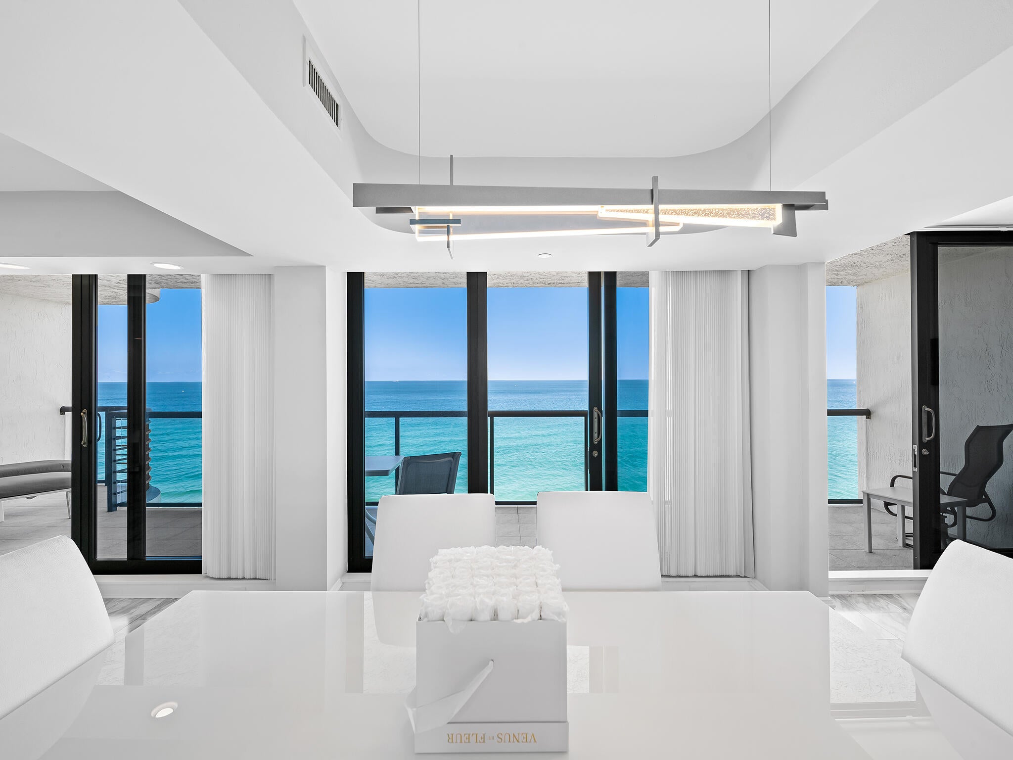 This Renovated, Modern Residence features Fantastic Direct Views, & floor to ceiling glass sliders, both to the East - over the Ocean and Sunrise, and West - over the Intracoastal and Sunset🌅, from all major rooms of the home. It is a private view in both directions- with no neighboring towers from any window. The building features comprehensive amenities, from the newly upgraded pool and deck, to the newly renovated lobby and residential corridors, to the umbrellas on the beach and the private access to a fabulous restaurant and resort off of the pool deck. With 21 million dollars spent in recent improvements, this community stands out from the crowd. Call for details and a private tour. Recent concrete restoration, roof, railings etc Docks & Cabanas sold separately if availab