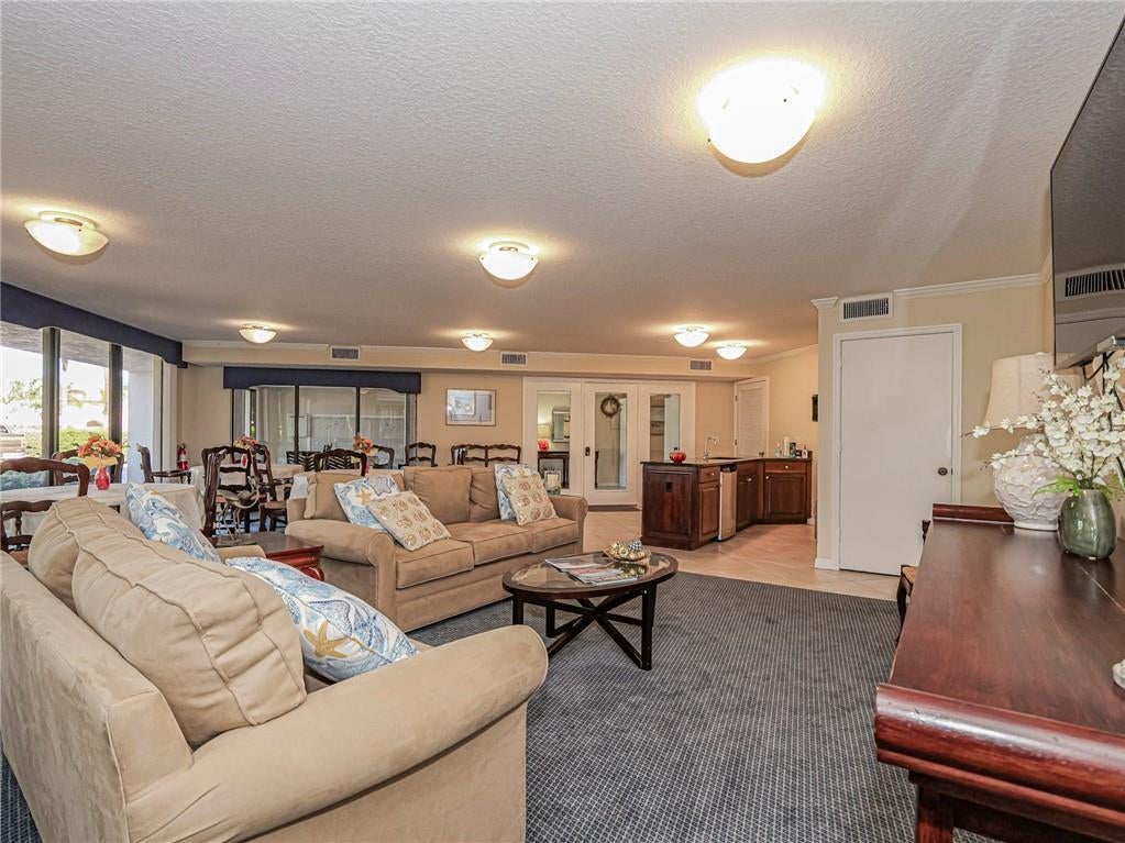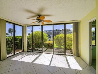 AVAILABLE NOW & READY FOR IMMEDIATE OCCUPANCY! Spacious 2BR/2BA, 1,900+ sq. ft. condo in The Moorings on Vero's barrier island. Features an upgraded kitchen with Corian counter, black stainless steel appliances & white shaker cabinets. Enjoy stunning river & marina views, private beach access, tennis, heated pool & spa, and outdoor entertaining areas. Minutes to Ocean Drive dining, shops & cultural attractions. All utilities included except electric & internet. Boat slips available separately.