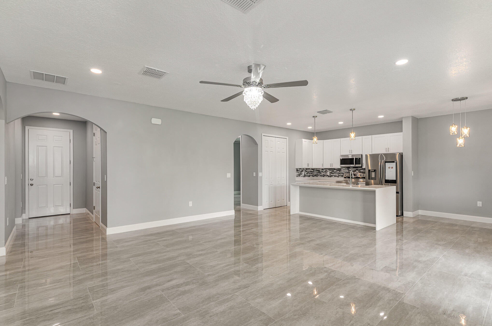 Move-in Ready SPECIAL INTEREST RATES, FLEX CASH OR NO CLOSING COST LOANS AVAILABLE. One or more photo(s) has been virtually staged--New Construction. This Luxurious 4-bedroom, 2.5 Bath Property is exquisitely built with all of the upgrades nestled in the heart of Palm Bay. Inside you will find a wonderfully open floor plan perfect for gatherings and entertaining. The capacious Chef's Kitchen is stylishly equipped with an island, solid wood cabinets, stainless steel appliances and ample storage. The contemporary living space is bursting with natural light and a flowing layout that is inviting and relaxing. Luxuriate in the vast Primary Suite that offers a collection of modern conveniences. This beautiful house is full of INCLUDED upgrades.