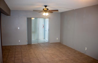 This first floor 2/1 corner unit has an open, spacious and bright layout with natural light and garden view. Surrounding hurricane windows provide peace of mind, ensuring safety and comfort. It's important to note that while the condo currently lacks cabinets and appliances in the kitchen, this gives you a blank canvas to design your dream kitchen. The large living and dining space can be customized to your preferences. The convertible space can be easily transformed to a 2nd bedroom, creator room or office with the simple addition of a wall, maximizing its functionality. Dresser in master bedroom is included. This 55+ active lifestyle community boasts a range of amenities, including two pools, an auditorium a fully-equipped fitness center, library, clubhouse, bocce ball and more catering to diverse interests and activities. Plus, you're just minutes away from the beach and nearby shopping, making it an ideal location for relaxation and convenience.