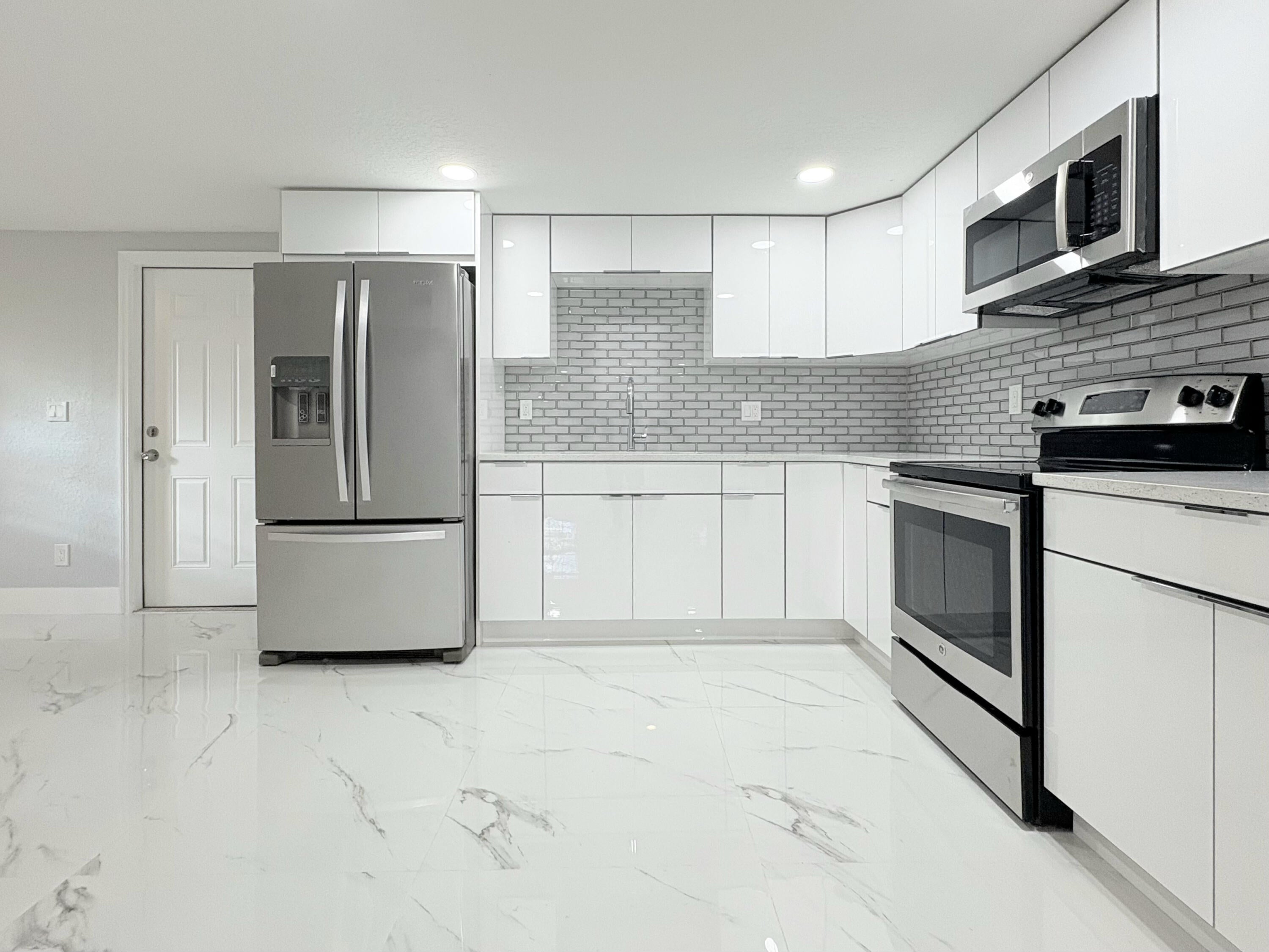 Beautifully remodeled 3-bedroom, 2-bathroom home in Lake Worth! This single-story residence features all tile flooring, a modern open layout, and brand-new finishes throughout. The kitchen offers updated cabinets, new countertops, and stainless-steel appliances. Both bathrooms have been completely renovated with stylish tile and fixtures. Updated with impact windows for peace of mind. The large fenced backyard provides plenty of room to relax or entertain. Conveniently located near shopping, schools, and major highways--move-in ready and waiting for its new owner!