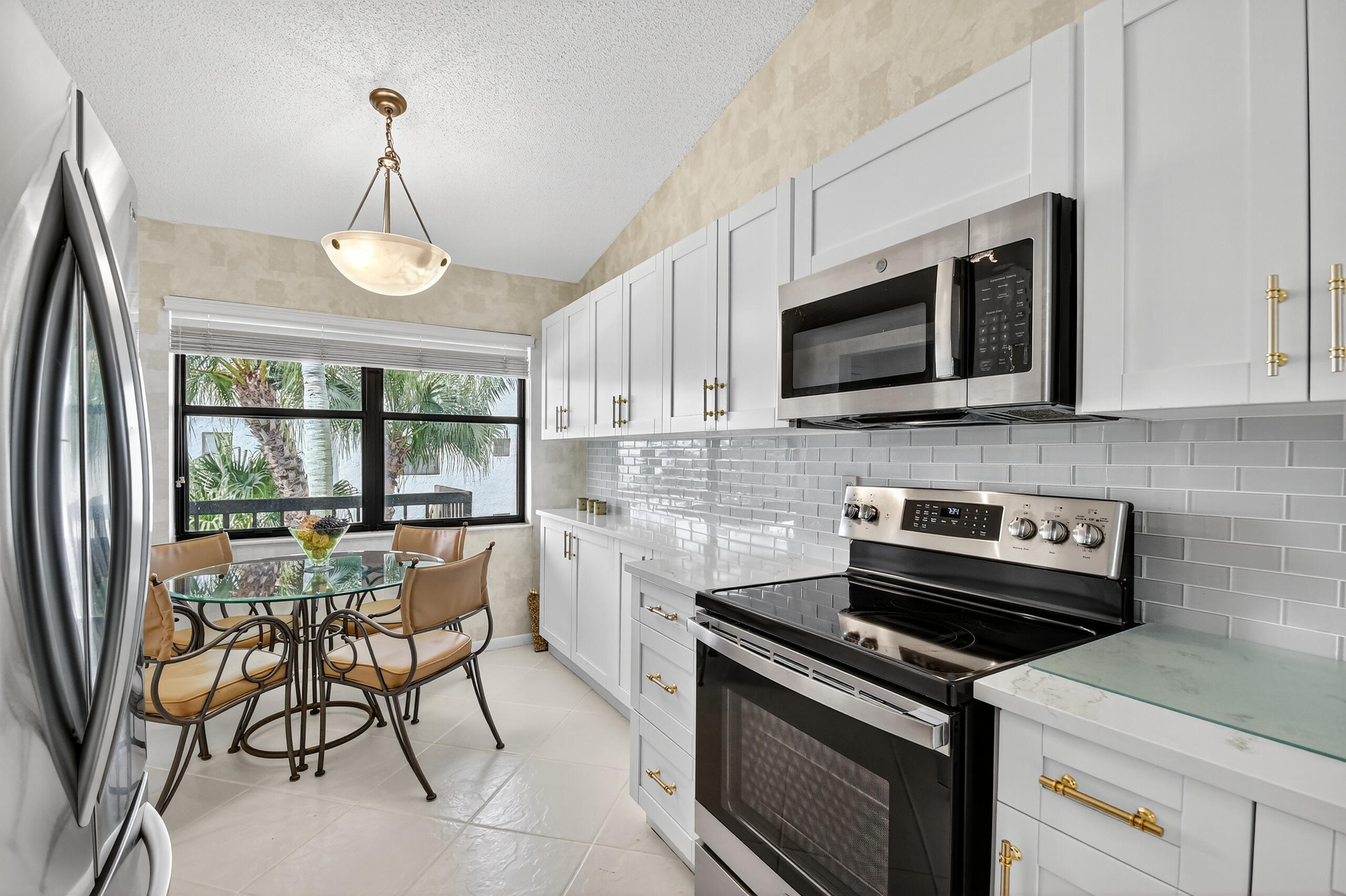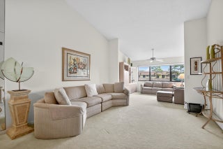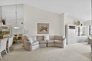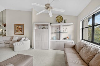 Spacious apartment with vaulted ceilings. Updated kitchen with new refridgerator Stove, Microwave, Dishwasher. This partment comes furnished. The large open living and dining area looks has water views The spacious master bedroom with patio overlooks the waterway. Active adult living - large clubhouse, theater w/entertainment, billards, bocce, shuffleboard, tennis, library, 2 heated pools, hot tub, whirlpool, sauna. On-site bus to shopping centers, medical facilities. Close to Wellington Mall, shopping, Turnpike Negotiable