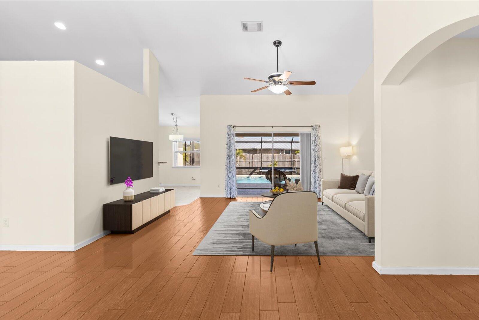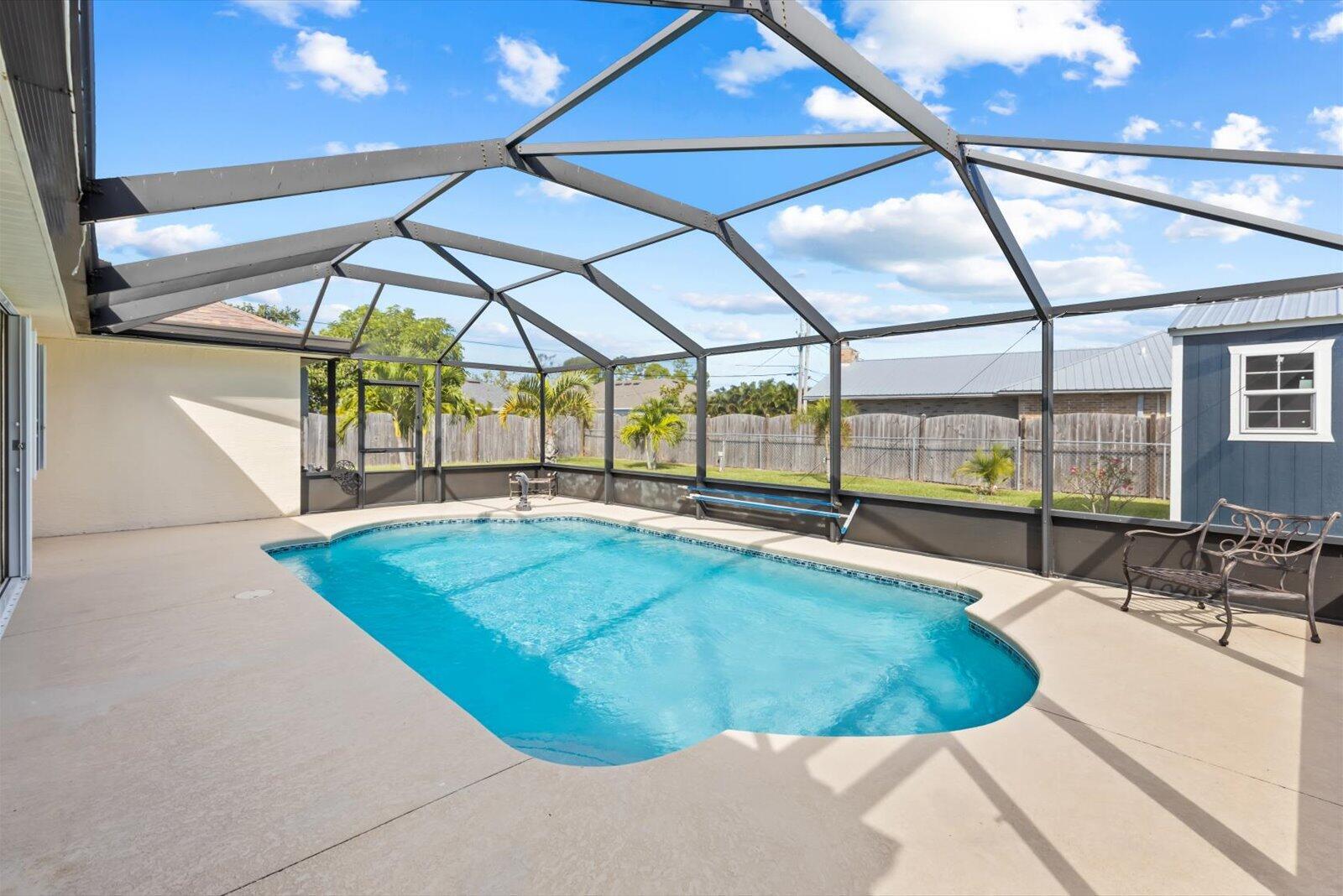 Premium Location, Impeccable Condition & Outstanding Value! Discover this Solid Concrete Block Home with a NEW Roof 2022! Prime improvements include a NEW Pool & Screened Enclosure (2018), AC system (2019), Water heater (2021), LG Washer & Dryer (2021) ++ Accordion Shutters & a 30AMP Generator hookup! The light & bright interior with Volume Ceilings & neutral paint tones flows through the Family Room & Kitchen to the Large-27'x 8'-Covered Lanai overlooking the Pool Area. The Gourmet Kitchen features oak wood cabinetry, granite counters +newer stainless steel appliances. Enjoy the fenced yard & corner property with an Oversized 10'x16' Shed (2023) with Impact windows & Full Electric & AC !-Truck, Boat &, Pet Friendly-ALL WITH NO HOA! PLUS Close to all that Downtown Tradition has to offer.