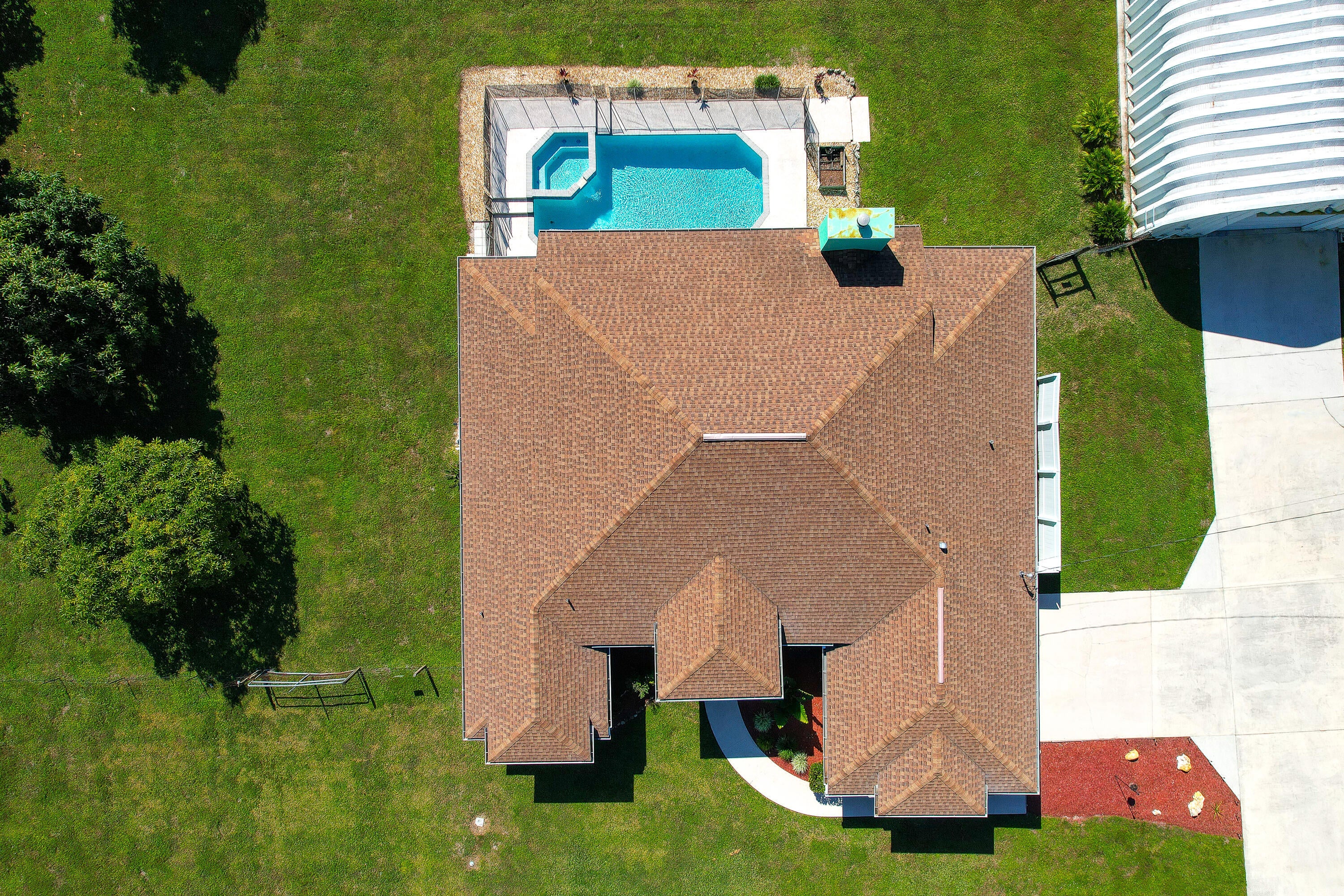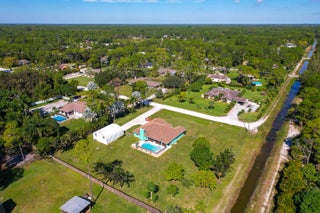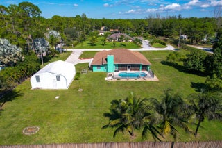 This spacious 3-bedroom + Den, 2-bath single-family home on 1.31 acre at the end of the road in the Acreage offers room to grow and relax. The versatile den/flex room complements the split floorplan, while two living areas, including one overlooking the pool, provide plenty of space for gatherings. The updated kitchen features a bay window, island, and extra seating, and the home's bright, open, and airy layout enhances its inviting feel. The primary bath has been modernized, and a cozy fireplace adds charm. Recent updates include an exterior repaint, a new garage door for the detached garage, and a new pool pump. Enjoy your own in-ground pool, fruit trees, a large metal storage/workshop garage, hurricane panels, and a 2-car garage--all situated on a large lot with no HOA!