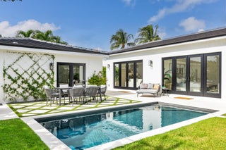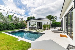 Back on Market and ready for immediate occupancy! A truly exceptional home in sought-after SoSo offers a total of 4 bedrooms and 3 baths with over 2,200sqft of indoor living. Situated on a beautiful fully landscaped + irrigated lot with premium hardscape package. Key highlights include: New saltwater pool (12x24), new roof, complete impact windows and doors, upgraded electrical and plumbing systems, two hot water heaters, blown in insulation in all trusses and R-19 insulation in the walls (rolled foam), engineered white oak hardwood floors throughout the entire dry living areas, designer bathrooms with porcelain mosaics and high-end finishes, gourmet kitchen featuring custom fluted white oak design and top-of-the-line Cafe appliances. The main house features Carrera gold quartz countertops and quartz in detached guest apartment/office. This is truly an amazing value constructed by a renowned local builder with thoughtful design, high-end materials and expert craftsmanship. Located just minutes from Worth Avenue and Downtown West Palm Beach. PBI airport is 6 miles away. Inquire today! Property can be sold fully furnished, separately. Buyer to verify all information, sizes, and measurements independently.