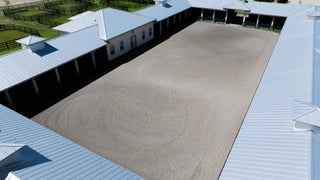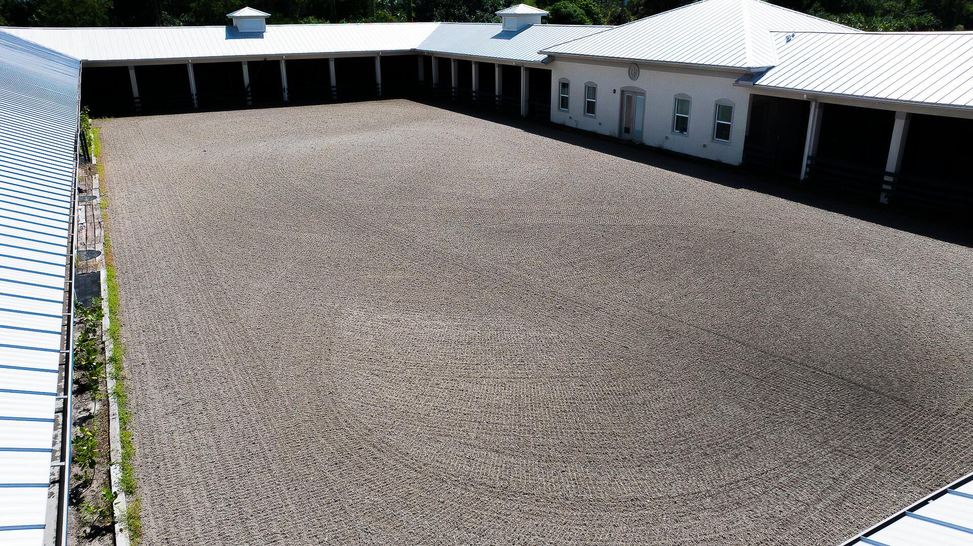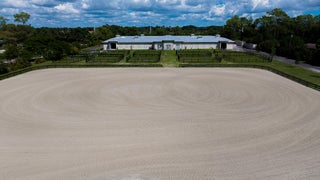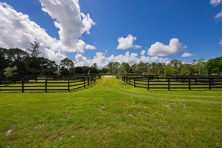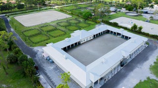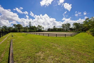Exquisite Equestrian Estate Minutes from WEF. Nestled in a peaceful enclave and inspired by a custom designed Ralph Lauren farm, this newly constructed equestrian facility is designed for the discerning professional. With up to 40 stalls and two elegant living options-- gorgeous three-bedroom staff quarters and a pro residence --this property offers both sophistication and functionality.The courtyard-style barn features permanent stalls with filtered waterer in stalls and paddocks, 14′ ceilings, two air-conditioned tack rooms, 11 wash stalls, and rubber flooring. GGT courtyard arena and a large Equitan outdoor ring, Horsegym treadmill, and 10 beautiful grass paddocks--all set amid tranquil surroundings, ideal for preparation and recovery. Fans in stalls, fly spray system equipped. Inside, the owners' lounge impresses with wood-look tile, custom cabinetry, two modern chandeliers, and generous space for dining and relaxation. The facility encompasses 4 staff quarters, a conference room, laundry, storage, RV hookup, and trail access. With top-of-the-line footing and asphalt millings driveways, this property seamlessly blends luxury, practicality, and proximity offering the perfect base for competition success in Wellington. $800/stall/month in season and can be more competitive rate for 4 or more stalls. Come spend your Beautiful Winter in Wellington!