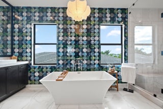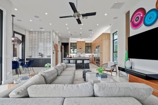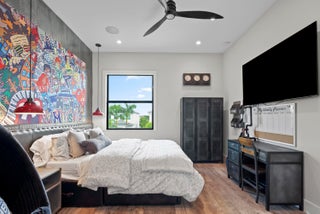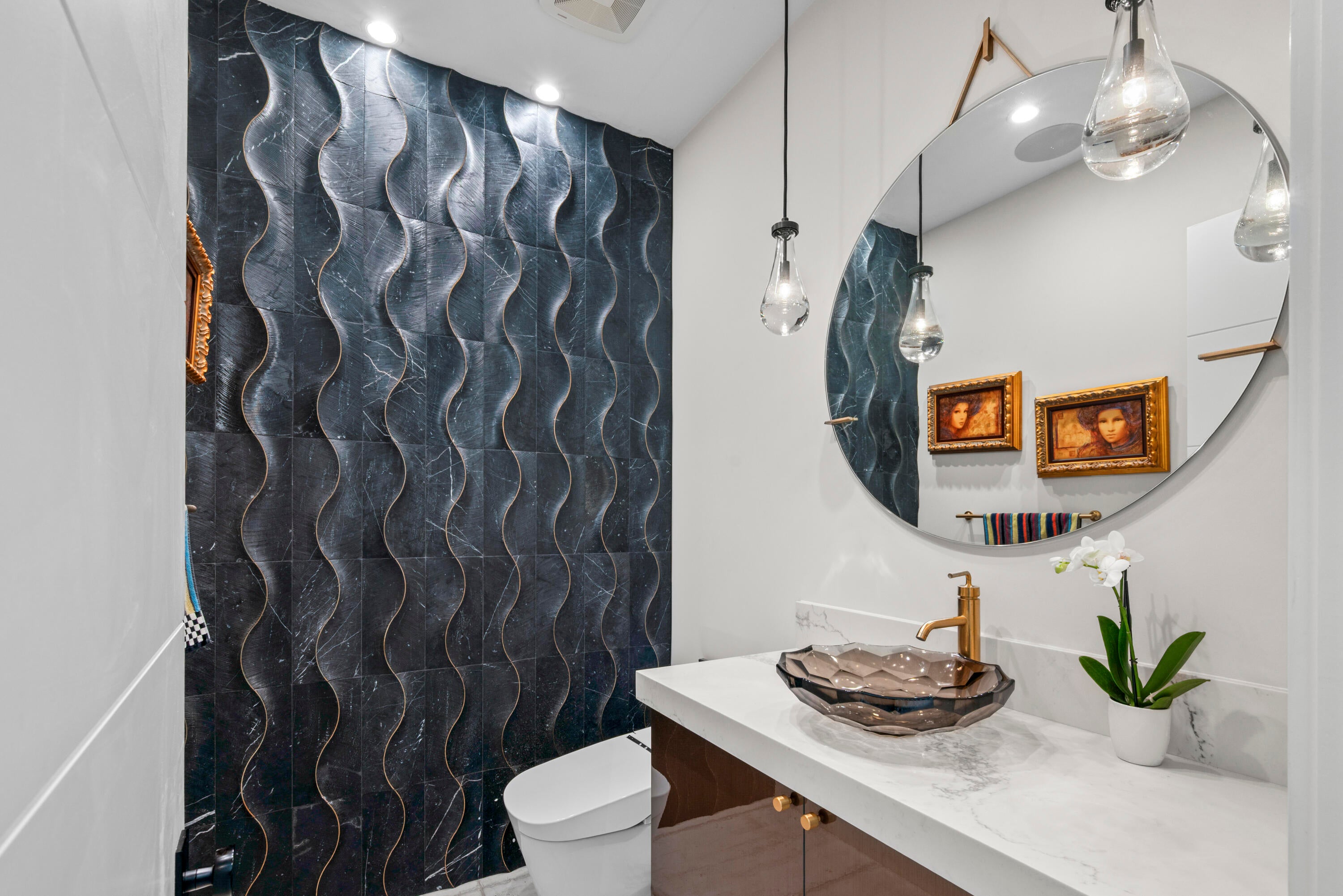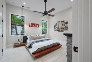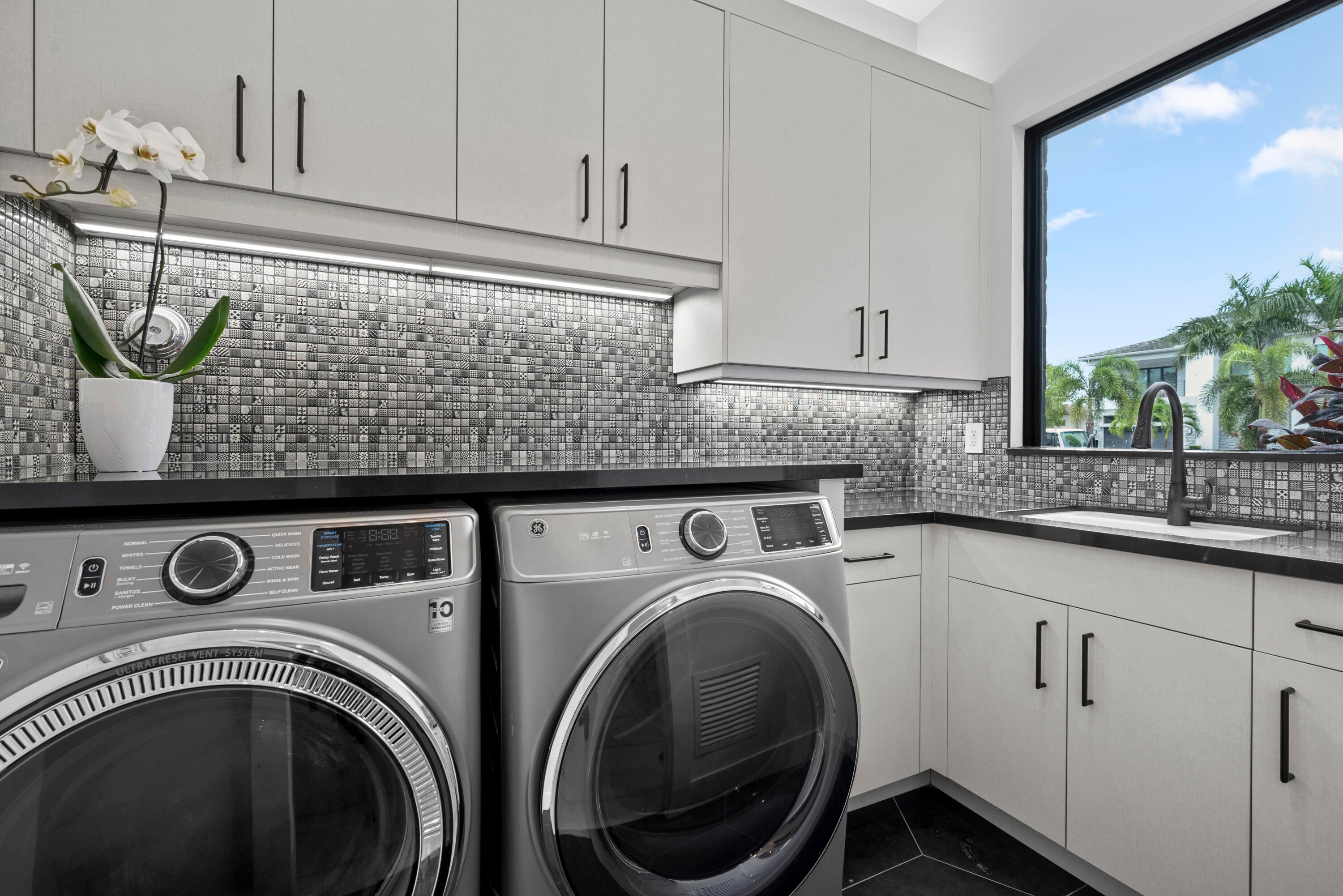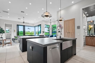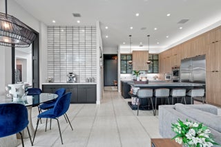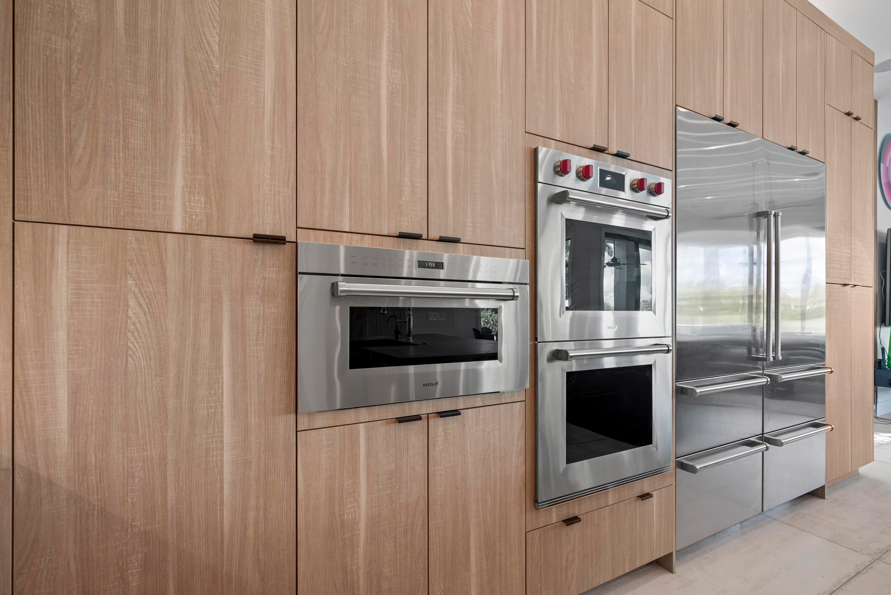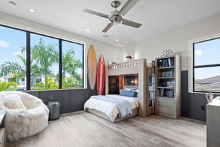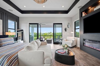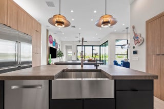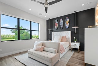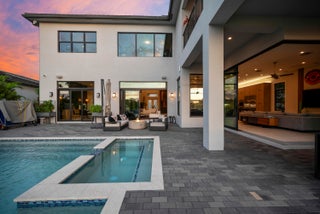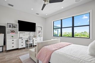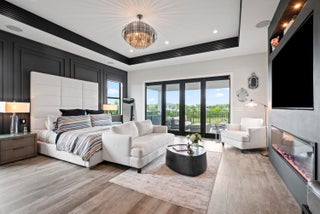 Experience unparalleled elegance and modern sophistication in this exceptional contemporaryPalermo home in one of Boca Raton's most coveted neighborhoods, Boca Bridges. Amasterpiece of contemporary luxury and design, this expansive 6,175 SF residence packed with upgrades and modern amenities sits on an approximately 1⁄3 acre private lakefront lot with no rear neighbors and single story homes on either side for added privacy. No detail overlooked, this desirable floor plan features a sleek elevator, 6 bedrooms, 8 and a half bathrooms, a loft/media/game room, two laundry rooms, and a four-car garage. As you enter the home, marvel at the exquisite custom millwork, the architectural beauty of theglass staircase with oak wood steps, and the oversized industrial porcelainflooring that sets the stage for what's to come. Above, soaring ceilings showcase a magnificent handcrafted Restoration Hardware chandeliera round metal masterpiece with a brilliant crystal interior, conveniently maintained with an electric lift system for effortless cleaning and bulb replacement. Designed for the ultimate entertainer, this home features a spacious living room with a custom double-sided gas fireplace that opens seamlessly to the clubroom, enhancing the ambiance of both spaces. Expansive sliding glass doors from each room lead to the patio, inviting effortless indoor-outdoor living year-round. A stylish wet barcomplete with a sink and beverage refrigeratorserves as a perfect centerpiece for gatherings, designed to blend beauty and usability. Custom-made whiskey bottle pendants cast a warm glow over the bar, complemented by a stunning tile backsplash, enhancing the home's modern aesthetic.The gourmet eat-in kitchen is a stunning showcase of design and functionality, featuring dual islands topped with 3-inch quartz Caesarstone rugged concrete countertops and upgraded cabinetry with convenient pull-out drawers. A breathtaking professional-grade designer faucet serves as both a culinary tool and a work of art, beautifully complemented by Art Deco-inspired black and white pendants from renowned designer Louis Poulsen. This exceptional space is equipped with two Bosch dishwashers, dual side-by-side Sub-Zero refrigerators with four freezer drawers for effortless organization, a 48-inch Wolf gas range with six burners, a center grill, and double ovens, plus two additional wall ovens. A Wolf microwave, walk-in pantry, and sophisticated coffee bar complete this dream kitchencrafted for both elegance and performance. Adjacent to the kitchen is the sun-drenched family room, which boasts expansive zero-entry sliders that extend the living space into the picturesque backyard retreat. Rounding out the first floor is a convenient cabana bath, a stylish powder room showcasing an impressive marble and gold accent wall by Artistic Tile, a private ensuite bedroom, and a thoughtfully designed sleek laundry room. The primary suite is a sanctuary unto itself, featuring a morning bar, his and her bathrooms, a cozy fireplace, bespoke millwork, and a wrap-around balcony. The custom floor-to-ceiling dual walk-in closets offer meticulously organized storage for every need. The spa-like bathroom is an owner's dream, showcasing a freestanding jacuzzi and an oversized glass-enclosed shower connecting both bathroomsexpertly designed with dual body jets, an overhead rain shower, handheld, and an additional shower head for the ultimate experience. Three-inch Naxos quartz countertops and custom marble feature walls complete the space with timeless elegance. The backyard is as remarkable as the interior, boasting a custom extended pool with oversized jacuzzi, a sunshelf with lounge chairs, and a striking water featurecreating a breathtaking retreat for relaxation and entertainment. Experience the essence of outdoor living with a fully equipped summer kitchen, elegant dining area, and inviting gas fire pit, perfect for gatherings under the stars. This home is thoughtfully equipped with a full water purification system featuring reverse osmosis drinking water, a whole-house generator, and impact windows for enhanced safety and peace of mind. Modern comforts abound, including Control4 smart home technology, upgraded lighting throughout, and a three-car air-conditioned garage with a Tesla wall connector, complemented by a separate single-car air-conditioned garage gym. Additional enhancements include an electric pool heater and a discreet toad fence for added security.A true masterpiece of design and innovation, this residence offers the pinnacle of modern luxury living. Don't miss the opportunity to make it your own.