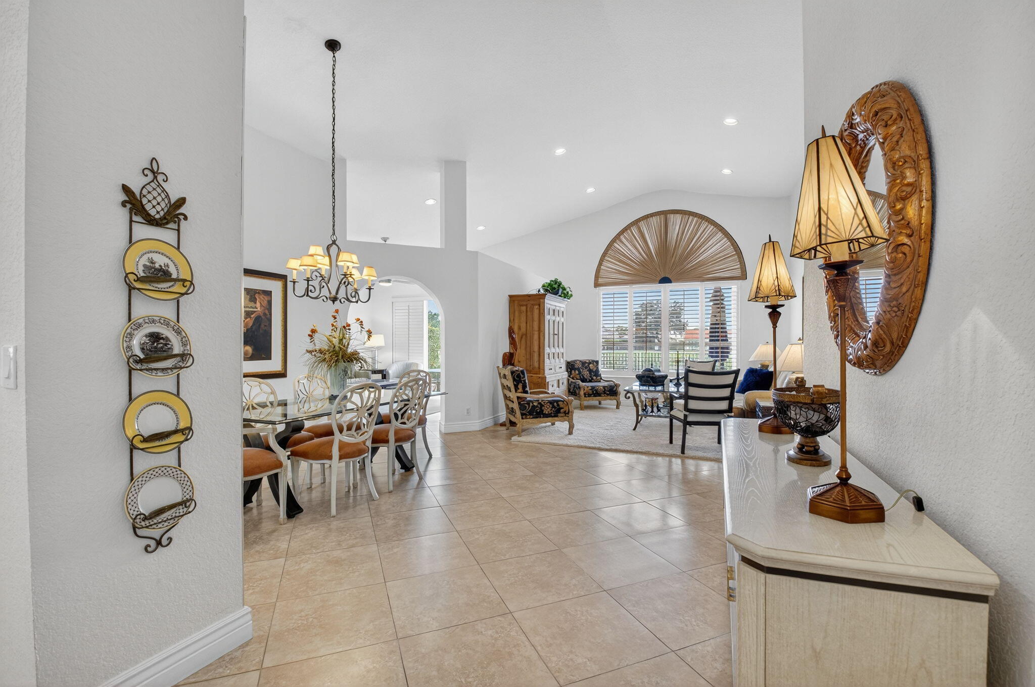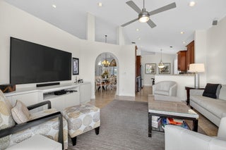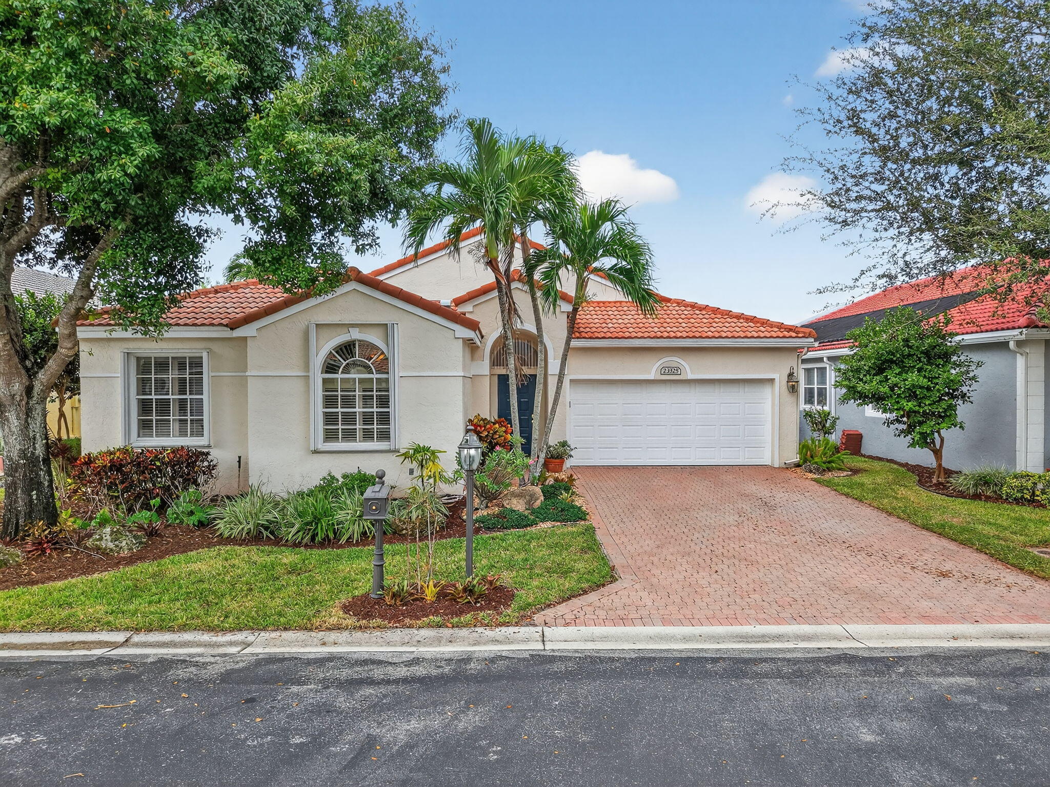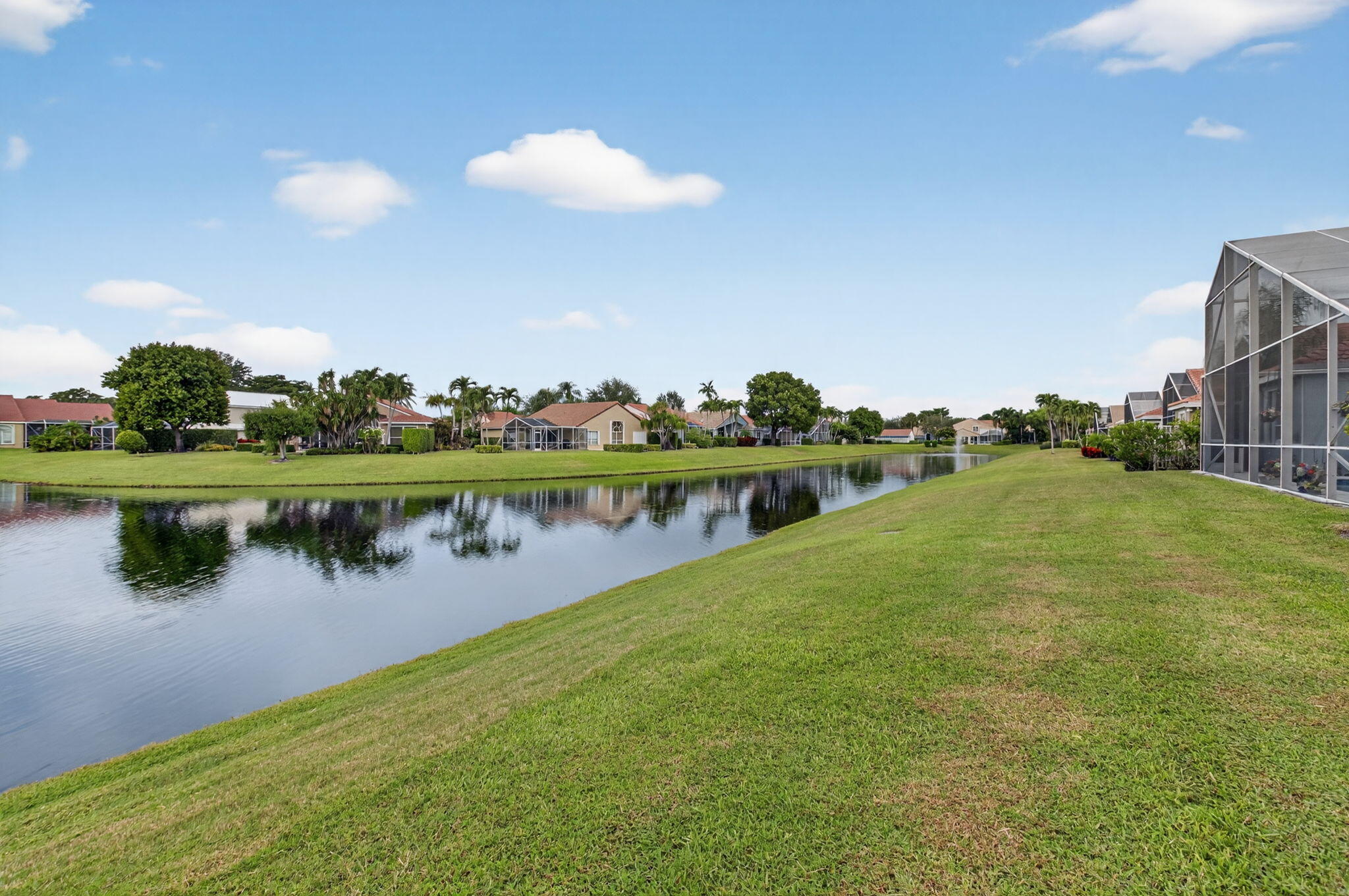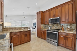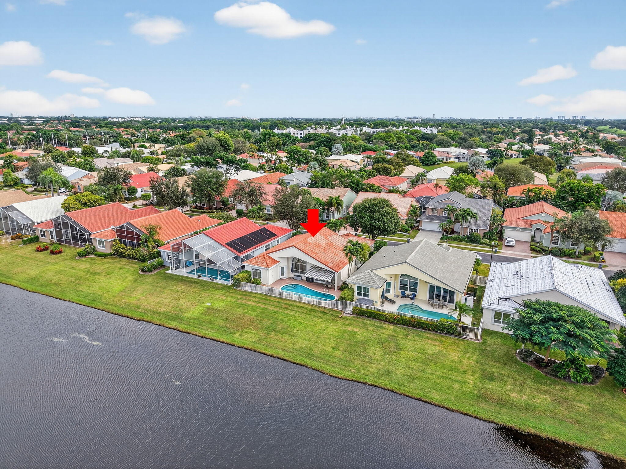 Enjoy the incredible sunset views overlooking the expansive lake & fountain from your own tropical paradise. The patio area has an electric awning which makes it so enjoyable on those bright days. Spotless and meticulously maintained 1-story home with 3 bedrooms & 2.1 baths plus 2-car garage. Ceramic tile and engineered wood flooring. Plantation shutters throughout. The kitchen has real wood cabinetry, granite counters & a full granite backsplash. The master bedroom features fully outfitted closets & en suite bath with dual sinks. New central vacuum system & new washer & dryer. Hurricane resistant garage door & accordion shutters.Situated within the highly sought-after, manned-gated community of Costa Del Sol at Boca Pointe, residents enjoy a low-maintenance lifestyle with cable, common areas, and 24-hour security included in the HOA. Optional membership at the Club at Boca Pointe offers access to an 18-hole championship golf course designed by Jack Nicklaus, a world-class tennis facility, state-of-the-art fitness center, resort-style pool, fine dining, and a vibrant calendar of social events, all without mandatory equity fees. Ideally located in central Boca Raton, this home is just minutes from Town Center Mall, Mizner Park, Downtown Boca, pristine beaches, and top-rated Palm Beach County schools. With its prime location, open layout, and access to the best of South Florida living, this home is an incredible opportunity to experience the luxury, comfort, and convenience of Boca Pointe living.