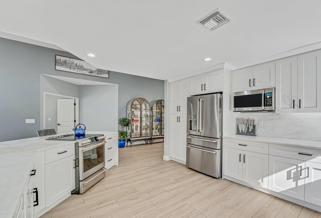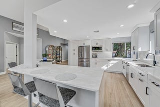 GORGEOUS remodeled home is better than buying new & is one of the prettiest & lowest prices in Villa Flora! This One story sprawling ranch is spectacular! OPEN CONCEPT is a breath of fresh air from the moment you enter the perfectly manicured double door entry, WOW! 2022 newer roof, newer A/c,newer tankless H/w Htr, Porcelain plank flooring throughout,natural stone quartzite counters & backsplash with waterfall edge, high end stainless appliances,remodeled porcelain bathrooms, this is one of the most pristine, immaculate, move in ready Boca homes to buy!The private backyard adorned by the perfect landscaping creates the perfect retreat for relaxation! A non mandatory spectacular country club is available if you wish to join,but is not mandatory.Best location in Boca Raton! LOVE IT!