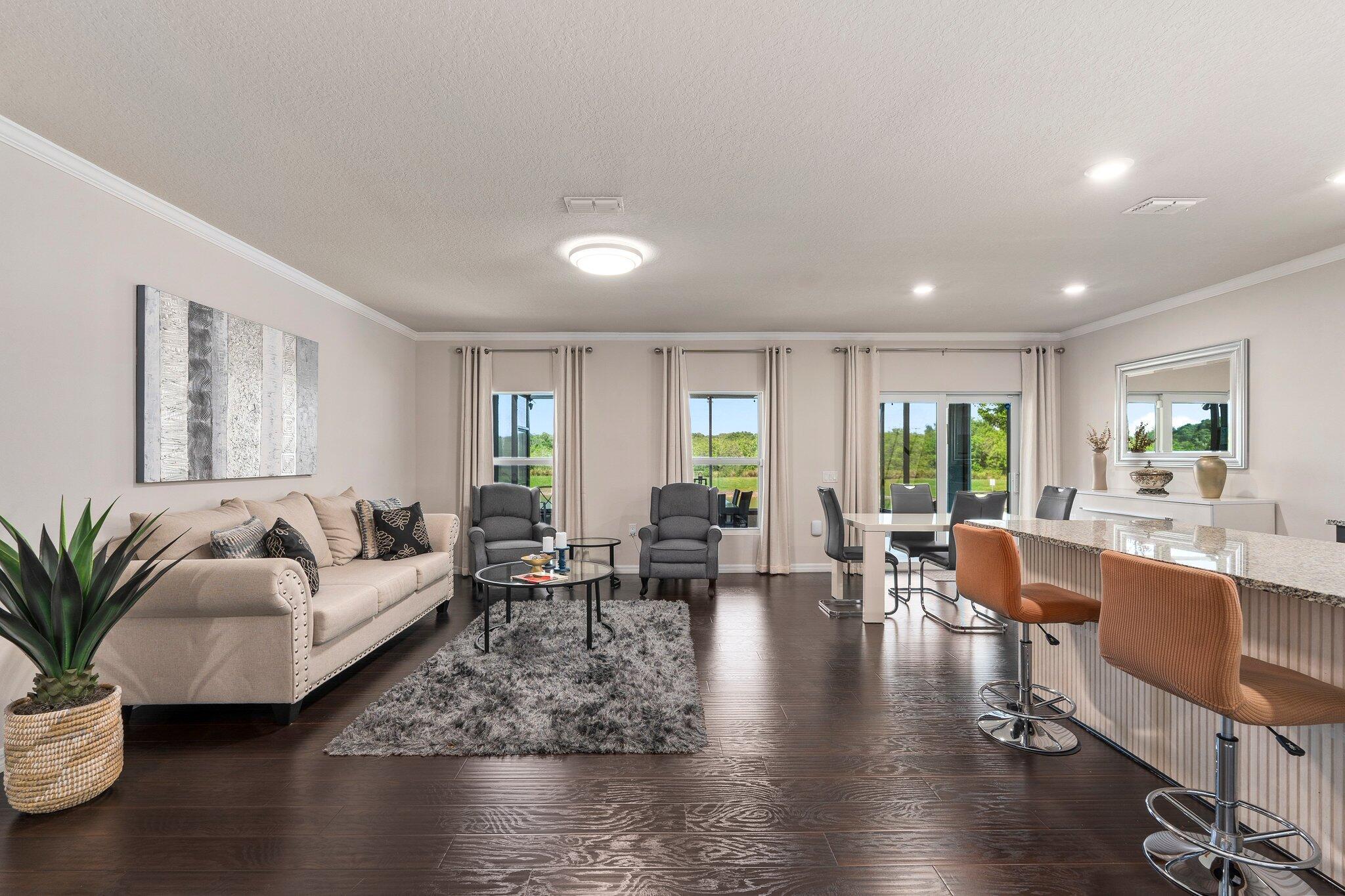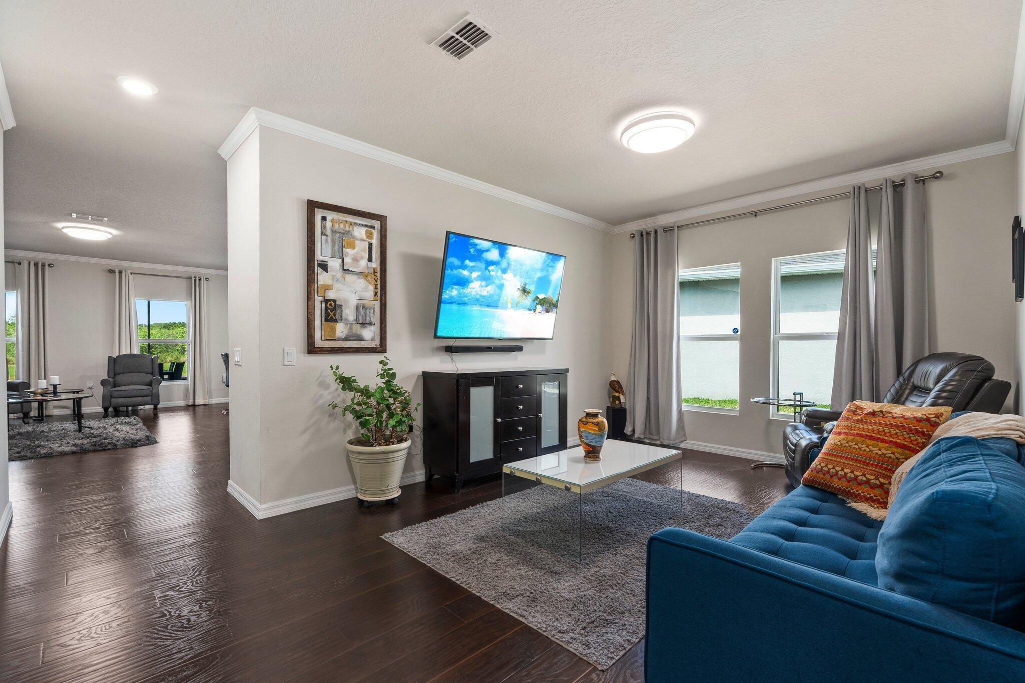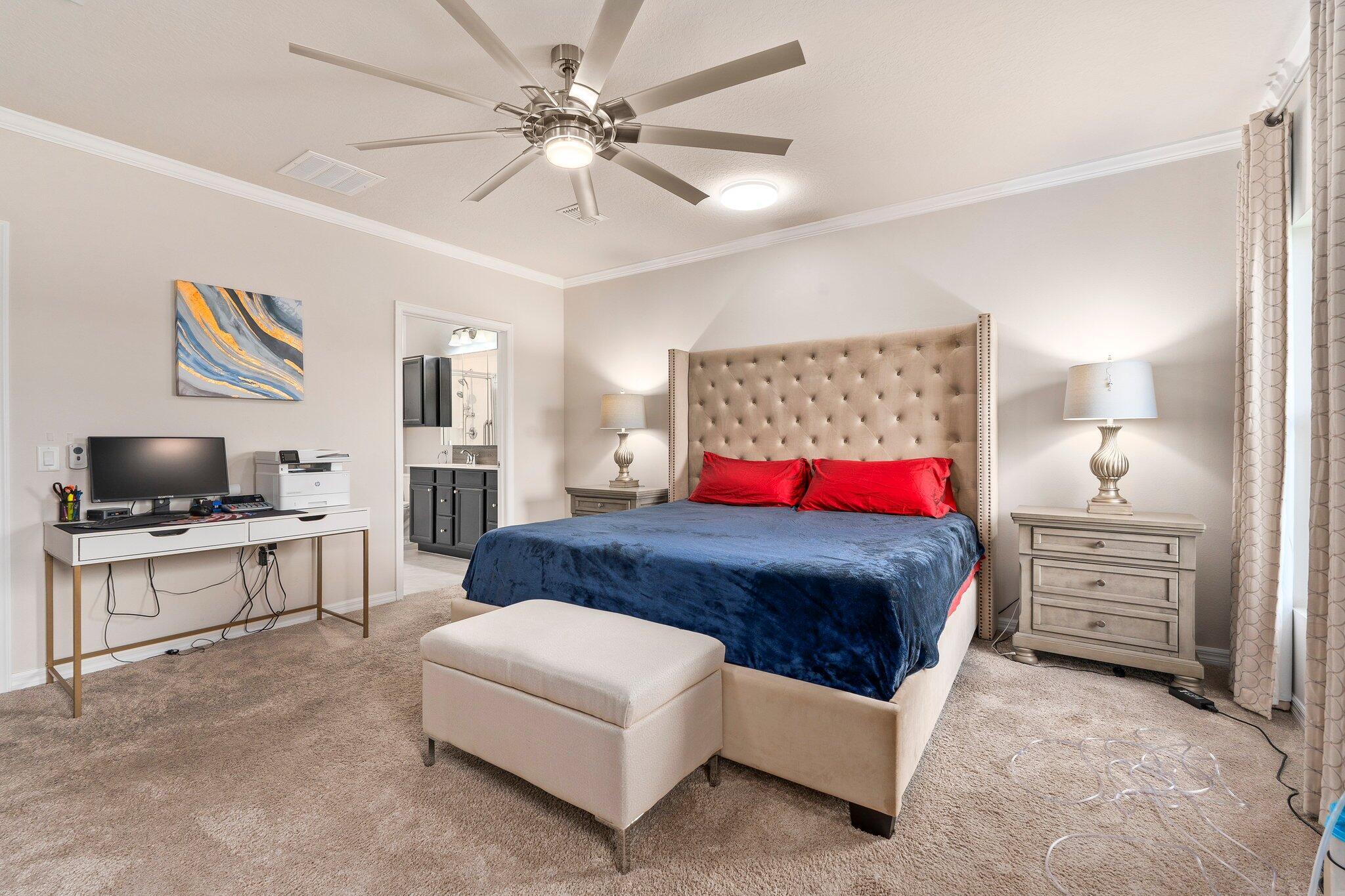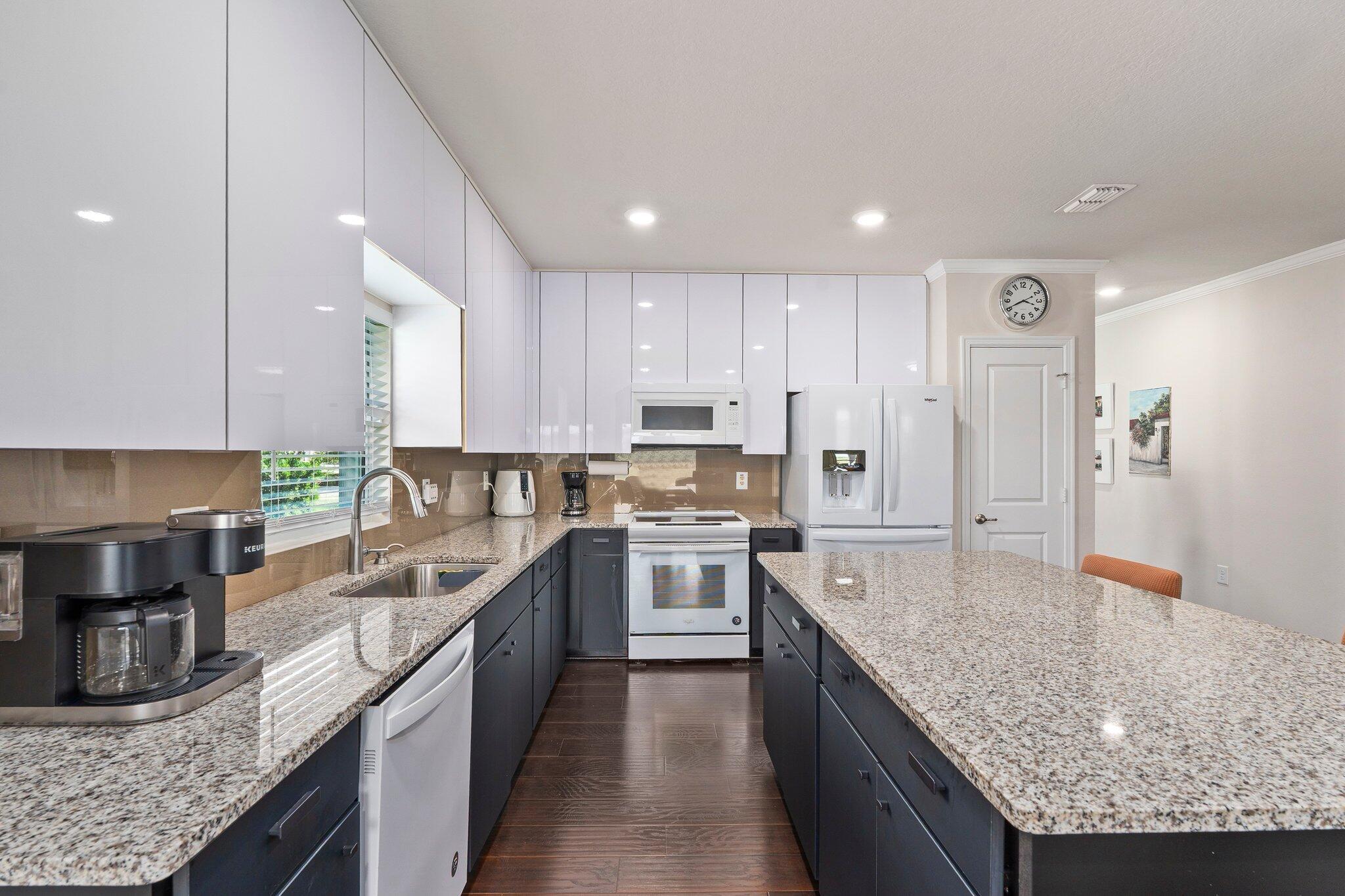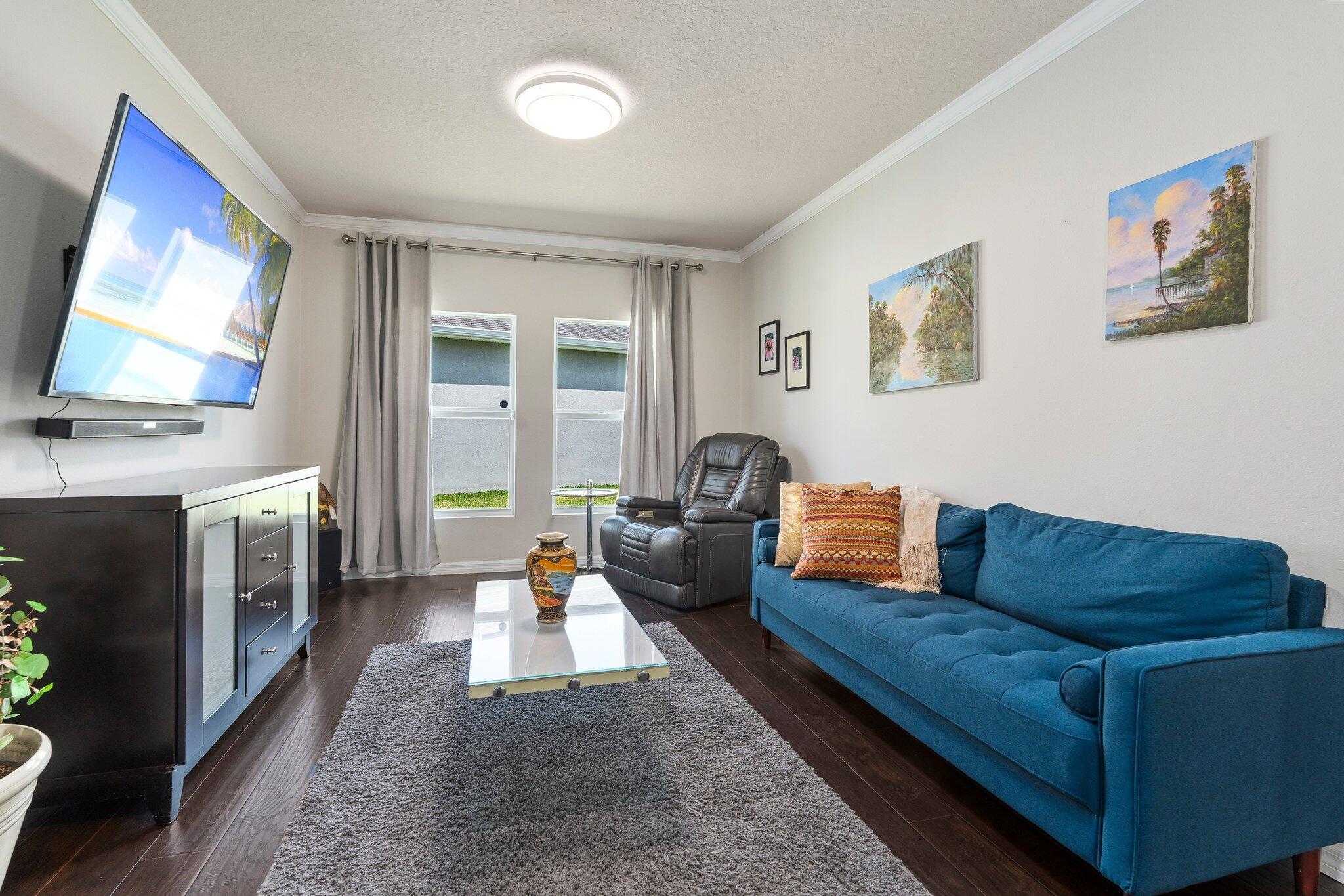 Check out this upgraded 3-bedroom, 2-bath home in the gated Carriage Pointe community. The widened driveway and custom stonework out front give it great curb appeal, and the tiled walkway leads you right to the front door.Inside, you'll find a modern kitchen with granite countertops, brand-new appliances, and easy-access roll-out drawers in the cabinets. Crown molding and updated light fixtures add a nice touch throughout, and impact windows help with safety, quiet, and lower energy bills.The community includes a playground, picnic areas and a dog park--perfect for kids and pets. With peaceful lake views and thoughtful upgrades, this home is ready for you to move in and enjoy.