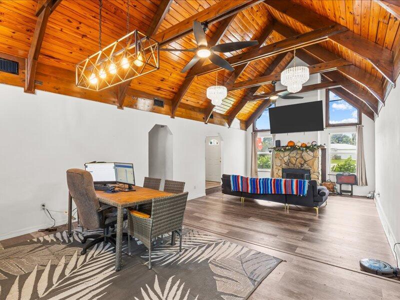 Welcome home-fantastic 3 bedroom 2 bath home is ready for its new owners. Enjoy the bonus of a fully converted garage, easily serving as a 4th bedroom, office, or creative space. Relax by the heated pool. Location couldn't be better situated across from the United States Submarine Veterans Park with its beautiful lake walk and playground. Don't miss this blend of flexibility and prime location.