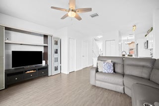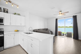 Best lake view in The Shores!! From the moment you walk in the front door, you know you've found something special. One of the few updated properties currently on the market. Your beautiful home sits on a serene lakefront, offering peaceful views and a relaxing atmosphere. Freshly painted. Gray wood tiles throughout. Kitchen boasts white cabinets, stainless steel appliances and a quartz countertop. BRAND NEW ROOF, Accordion shutters, and a custom build out under the stairs for extra storage. Appliances and A/C 4 years old. Two designated parking spots. Come see your new home and you're sure to fall in love!!!