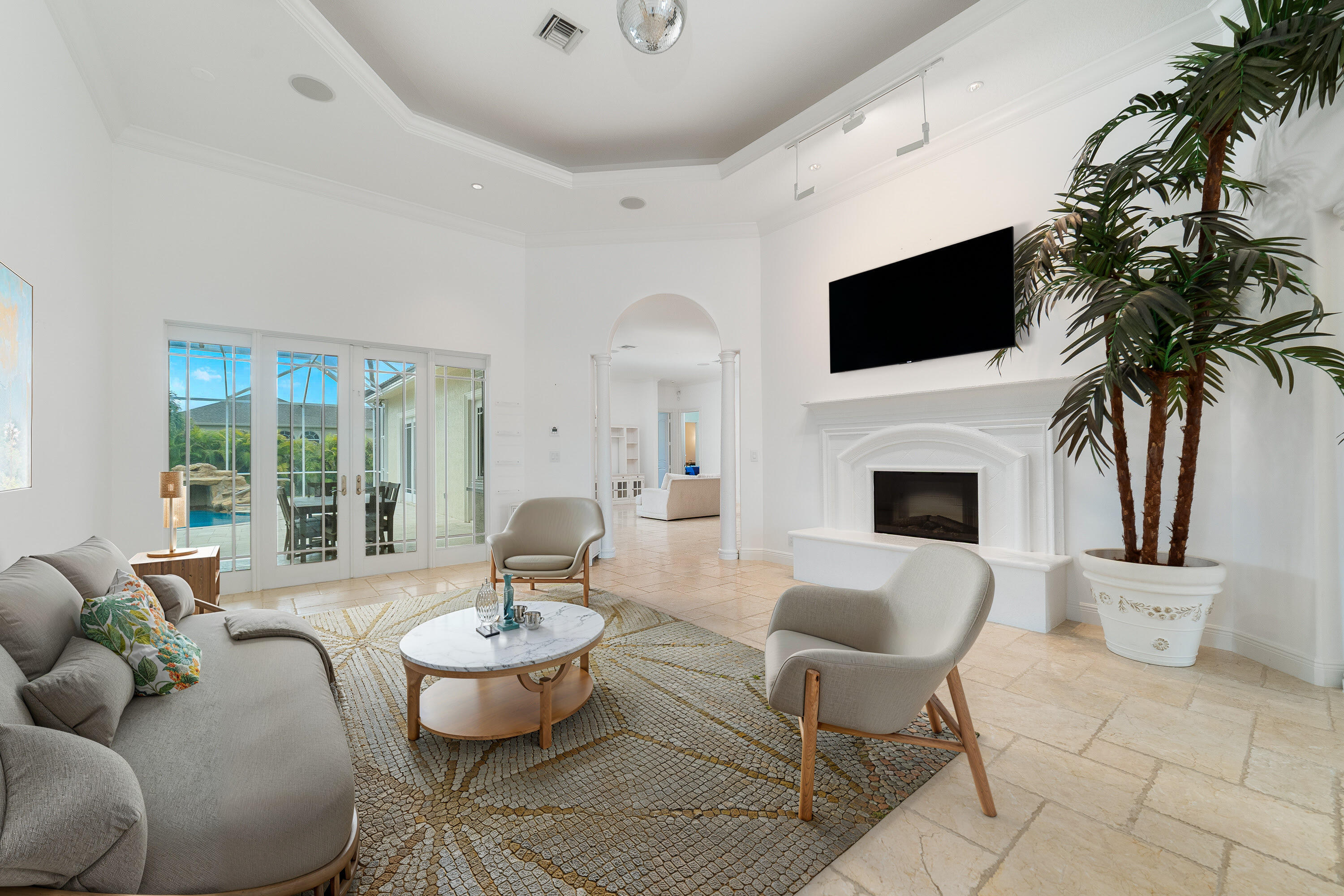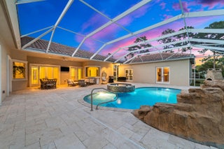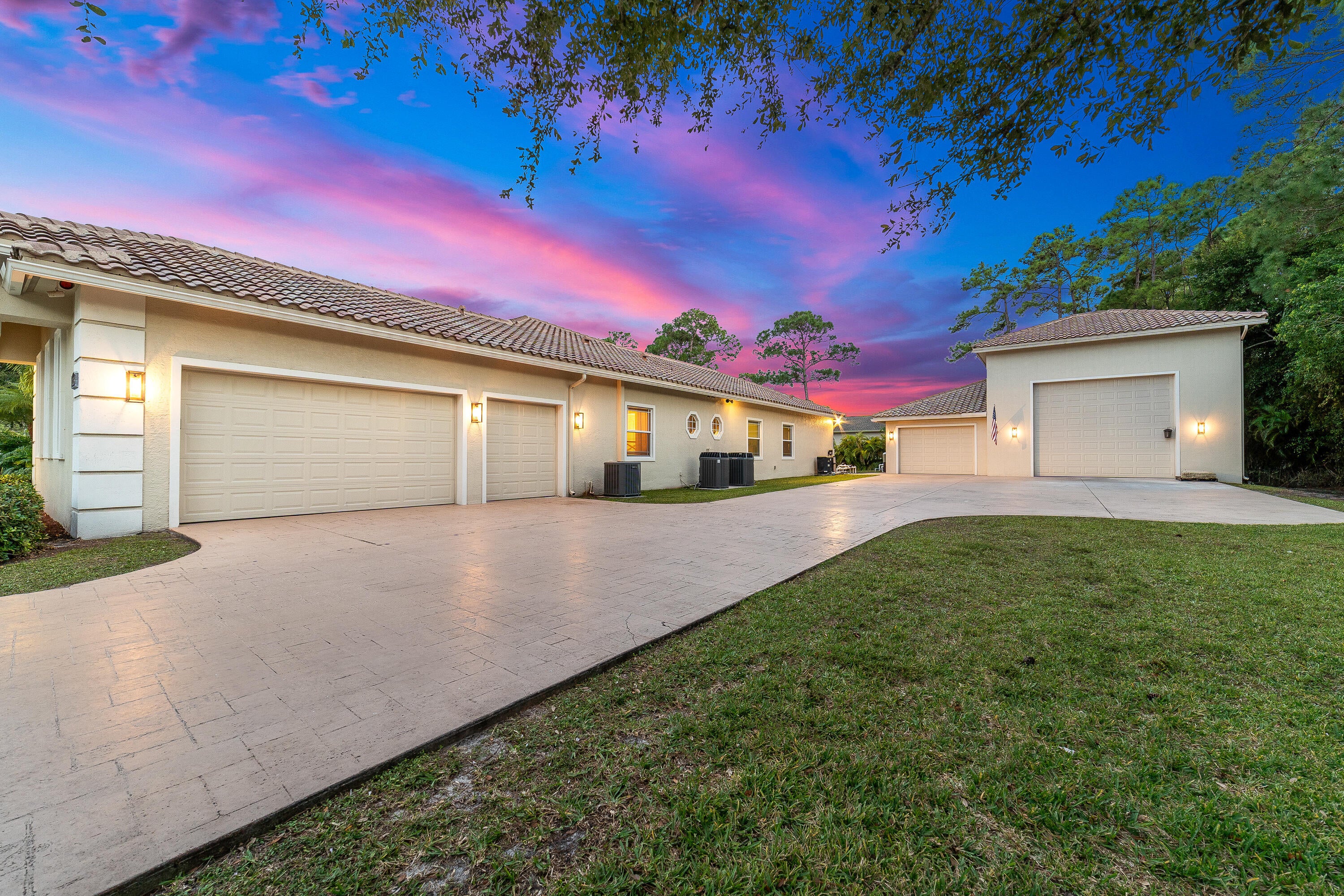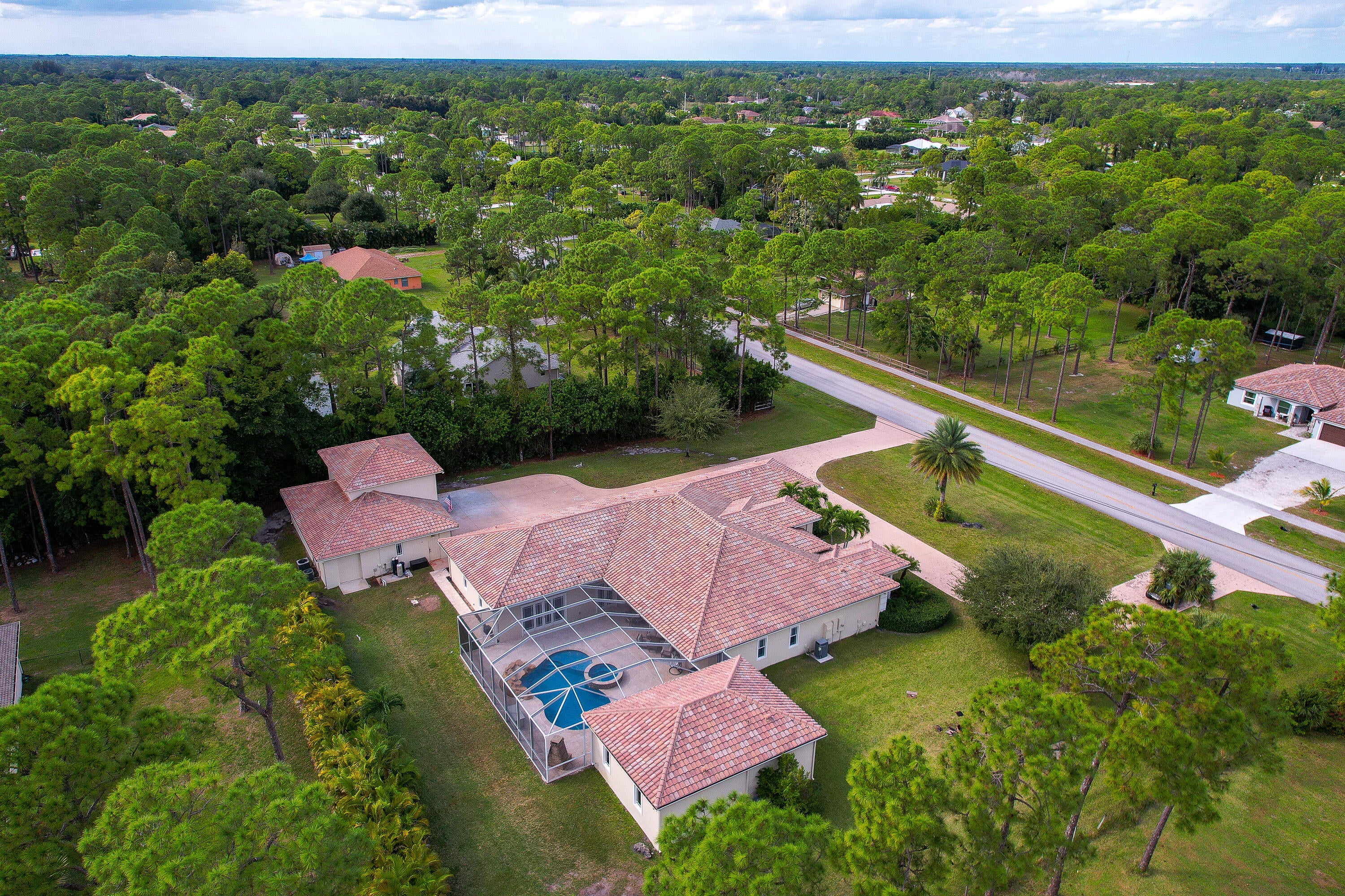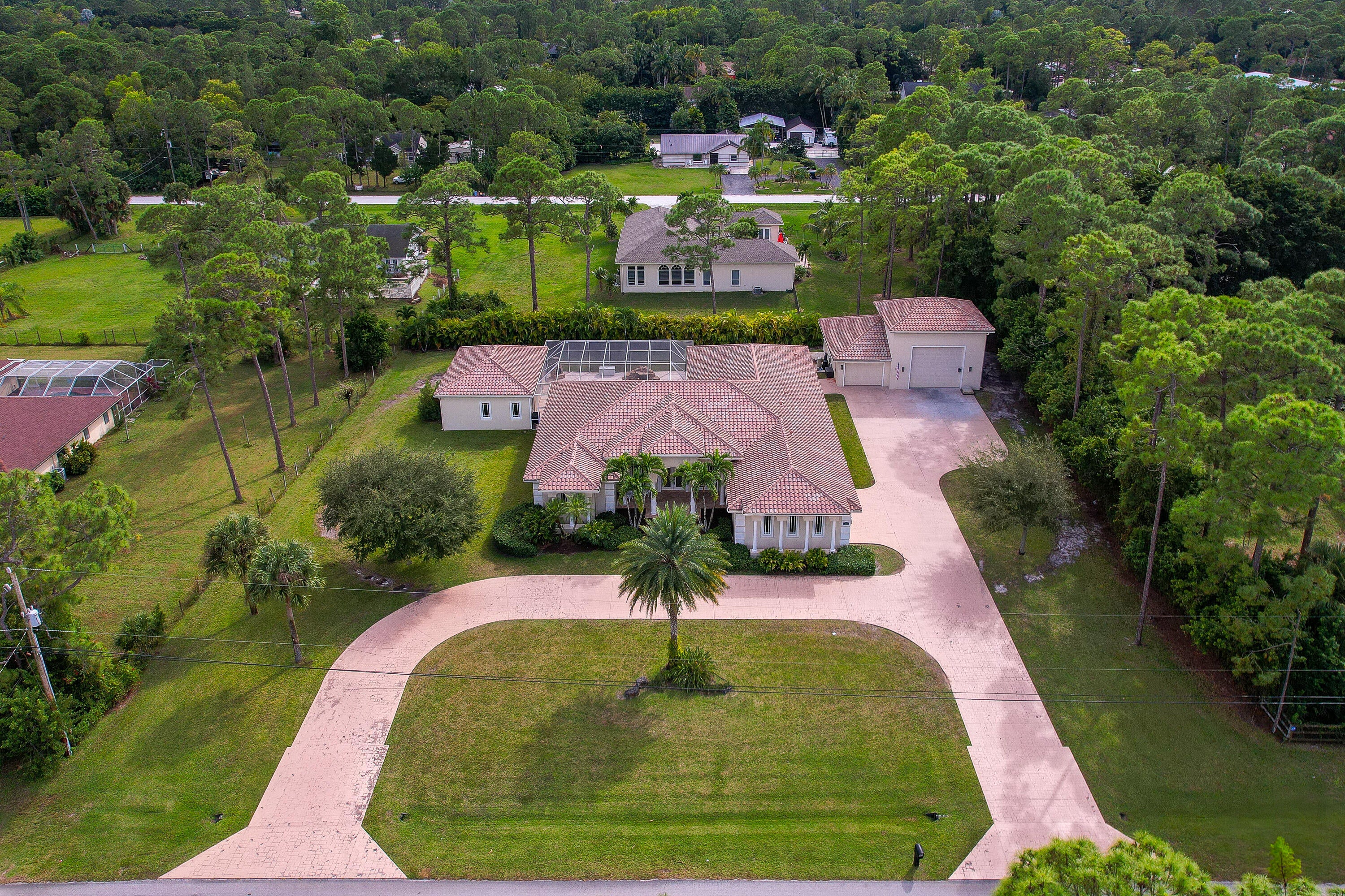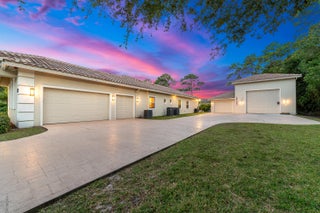 Experience the perfect blend of elegance, comfort, and functionality in this exceptional private estate -- ideally located just minutes from Northlake Boulevard, Westlake, Avenir, Avenir Town Center, and Royal Palm Beach. Though close to everything, this home offers a serene sense of retreat and refined living. The main residence features impact windows throughout and includes a dedicated office, den, and spacious game room, along with a 2.5-car air-conditioned garage. Guests or extended family will appreciate the detached 1-bedroom, 1-bath guest house (approx. 875 sq. ft.), while the fully air-conditioned CBS garage provides abundant space for extra vehicles, an RV, or a boat.At the heart of the home, the custom-designed chef's kitchen impresses with GE Monogram appliances, a pull-out spice rack, granite countertops, and a Kinetico water filtration system. Bathrooms showcase artisan stonework, and every closet is outfitted with custom built-ins for organization and style. The living room's elegant cove ceiling with integrated ambient lighting sets the tone for both relaxing evenings and sophisticated entertaining. Head outdoors to a resort-style saltwater pool with waterfall features and an expansive screened patio designed for year-round enjoyment. Every element of this property reflects meticulous attention to detail and pride of ownership truly a residence where luxury and livability meet.