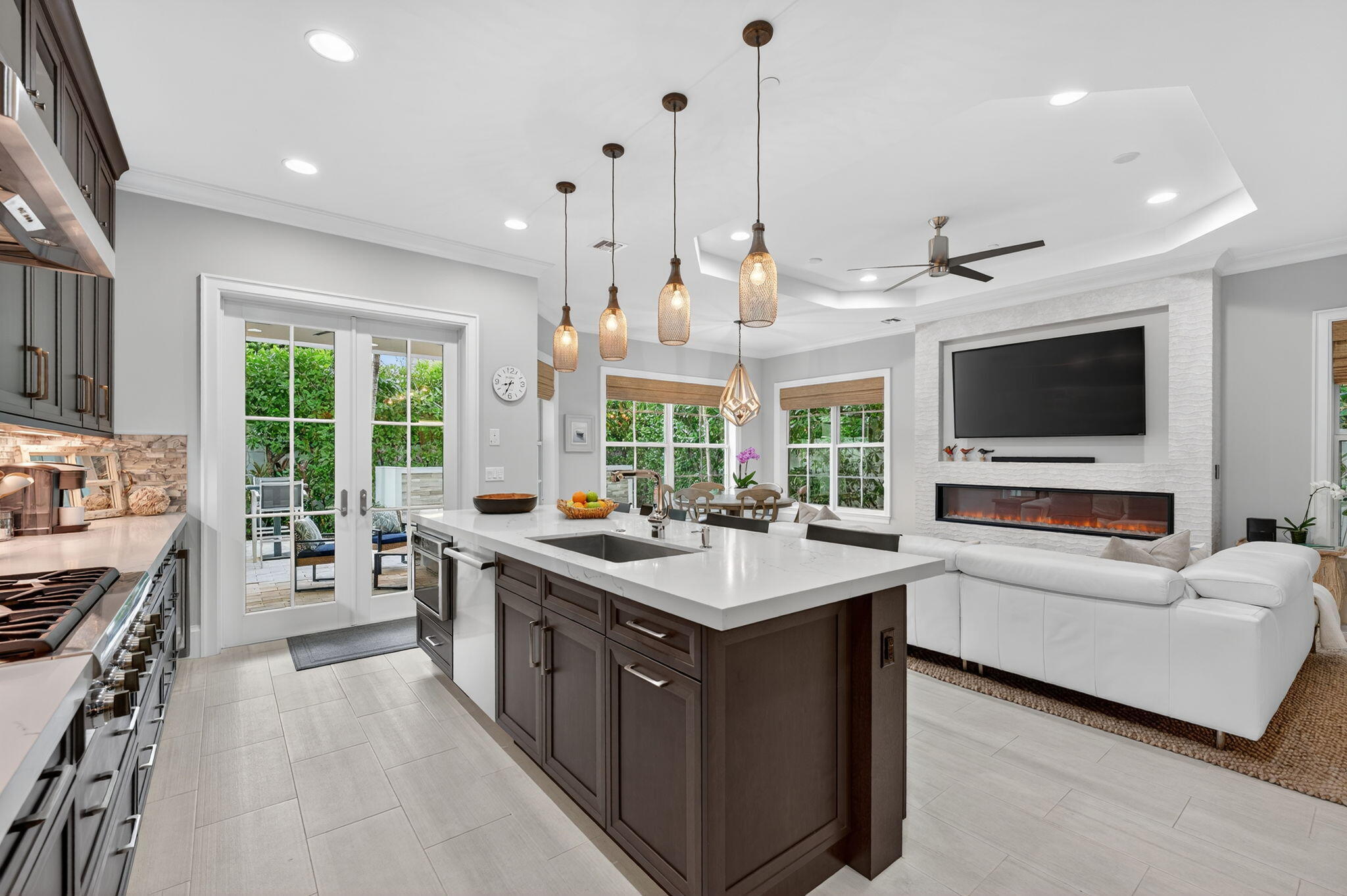 Luxury Townhome with Private Deeded Beach Access! This exceptional residence showcases Refined Coastal Living w/ Top Quality Upgrades through-out! Features include: Gourmet Kitchen w/ Designer Cabinetry, Caesarstone Counter-Tops. Spacious Island, Thermador Luxury Appliance Package including Gas Range, Double Wall Oven, Built-in Wine Cooler. Under Mount Lighting, Elegant Backsplash, 10-foot Ceilings stylish Porcelain Tile, Rich-Wood Flooring , Private Elevator, Fireplace,. Primary Bath features Glass Shower Enclosure & Freestanding Soaker Tub. Outdoor living is Equally Impressive w/ a Private Lanai complete w/ Summer Kitchen, Built-in BBQ, & Private Pool-all surrounded by Lush Tropical Landscaping. Additional highlights include a Custom Mahogany front door, Impact Glass Window & Doors.