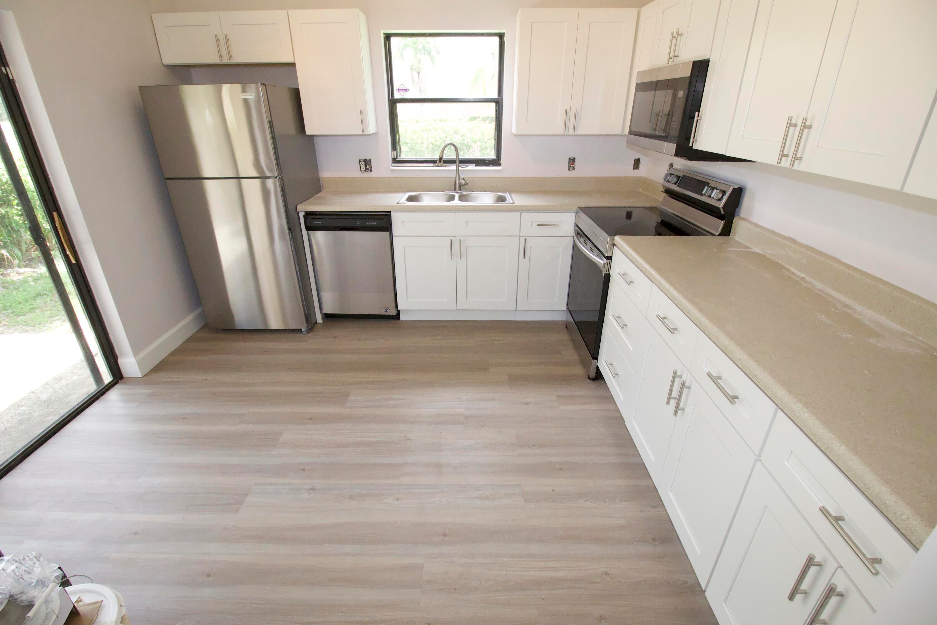 FREE FIRST MONTH! Completely Renovated villa with 2 bedrooms & 2 beautifully renovated bathrooms. Brand new kitchen with white shaker custom cabinetry, plank flooring, brand new appliances, new bathrooms with custom vanities, new fixtures, all freshly painted thru out. The biggest unit available for the price. Come today! Located near Northlake Blvd, close to beaches, shopping, restaurants, easy access to 95, only 10 minutes north of downtown West Palm Beach.