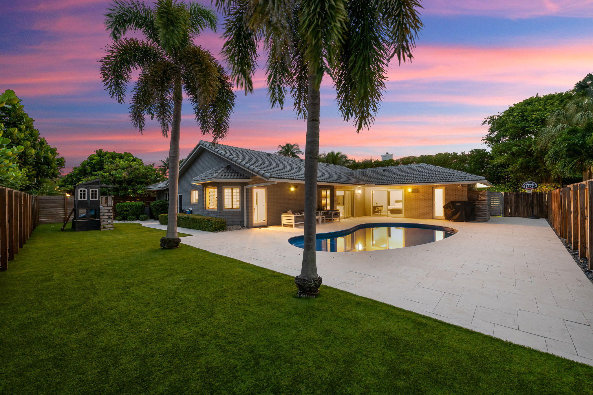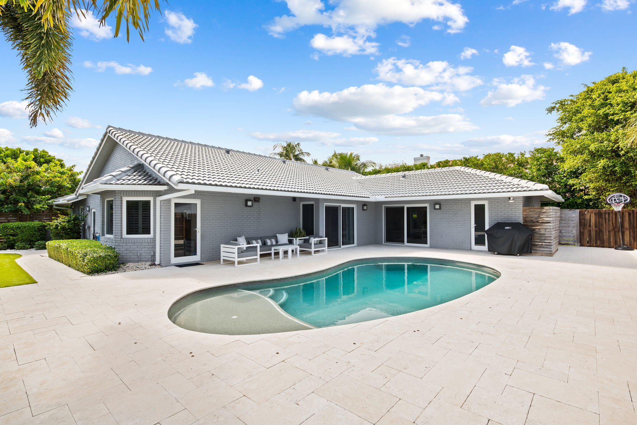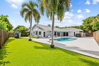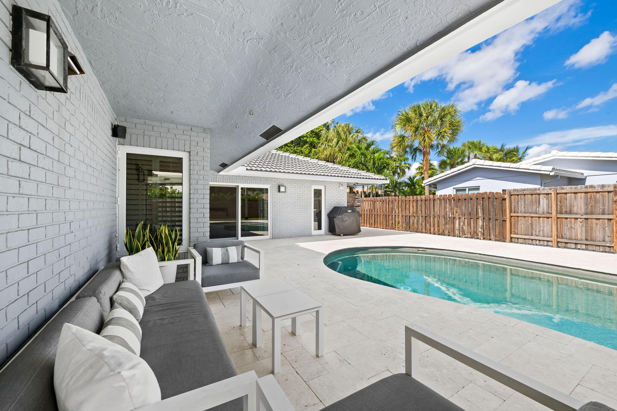 Welcome to Lighthouse Point, a coastal community where comfort, style, and convenience come together. Nestled on a quiet residential street, this beautifully updated 4-bedroom, 2-bath home offers generous space and thoughtful design for modern family living.Step inside to find vaulted ceilings, walnut hardwood floors, and freshly painted interiors that create a bright and inviting atmosphere. The open-concept great room flows seamlessly into a chef-inspired kitchen with marble and quartz countertops, a large island with seating, and a cozy built-in breakfast nook. A bar and coffee area, complete with an 18-bottle wine fridge, makes entertaining effortless.The primary suite overlooks the heated saltwater pool and opens directly to the backyard oasis. A spacious walk-in closet and beautifully updated ensuite bath add both comfort and convenience. Outside, the fully fenced backyard features artificial turf for low-maintenance living, creating the perfect setting for relaxing, entertaining, or watching kids and pets play. Additional highlights include an indoor laundry room with sink and storage, an air-conditioned two-car garage with a Tesla charger, and a new concrete tile roof. Impact doors and windows, a 4-camera smart security system, and a whole-house water filtration system provide peace of mind and lasting value. With ample space for boat parking, outdoor gatherings, and everyday enjoyment, this home blends modern upgrades with relaxed coastal living. Enjoy peace of mind in Lighthouse Point, a close-knit waterfront community known for its safety and small-town charm, complete with its own dedicated police and fire departments. Just a short three-minute walk away, DeGroff Park offers a quiet retreat on the Intracoastal, an ideal spot to watch the boats pass by. Within a five-minute drive, you'll find Dan Witt Park and the Lighthouse Point Community Center, which feature pickleball and basketball courts, fitness classes, youth programs, and a full calendar of community events. You're also minutes from the Lighthouse Point Marina, Deerfield Beach International Fishing Pier, and local favorites such as Papa's Raw Bar and Nauti Dawg Café. Everyday conveniences like Sprouts Farmers Market and Target are nearby as well. Whether you're looking for a peaceful coastal retreat or an active neighborhood to stay connected, this home offers the best of both worlds, combining comfort, convenience, safety, and community in the heart of Lighthouse Point.