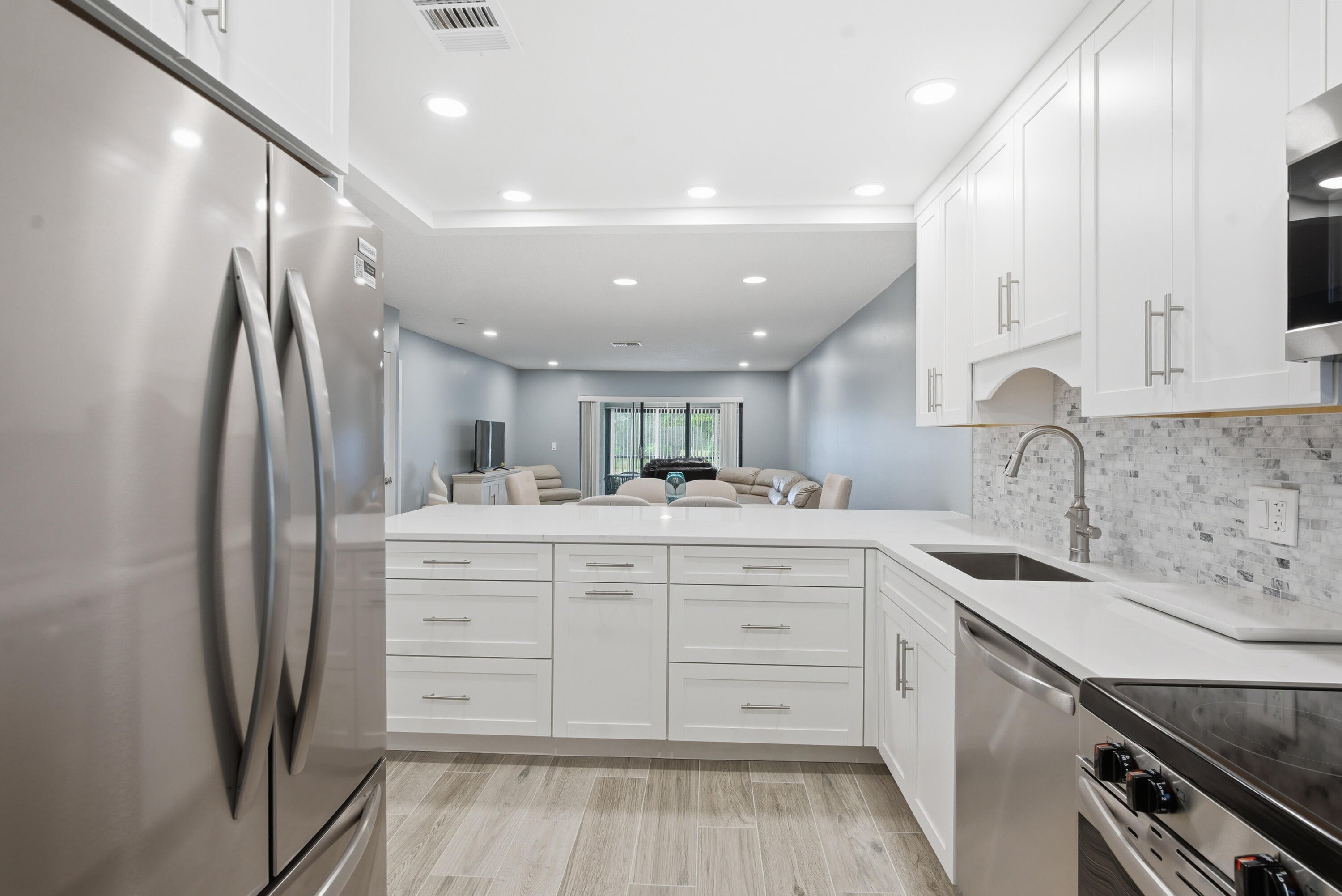 Outstanding condo, newly renovated brand-new porcelain tile flooring, new kitchen, new appliances, quartz counters, wall down for open floor plan. Both bathrooms recently updated as well. Overlooks a gorgeous lake view. Glass and screen enclosed lanai. This condo is a great last-minute find! Easy to show.