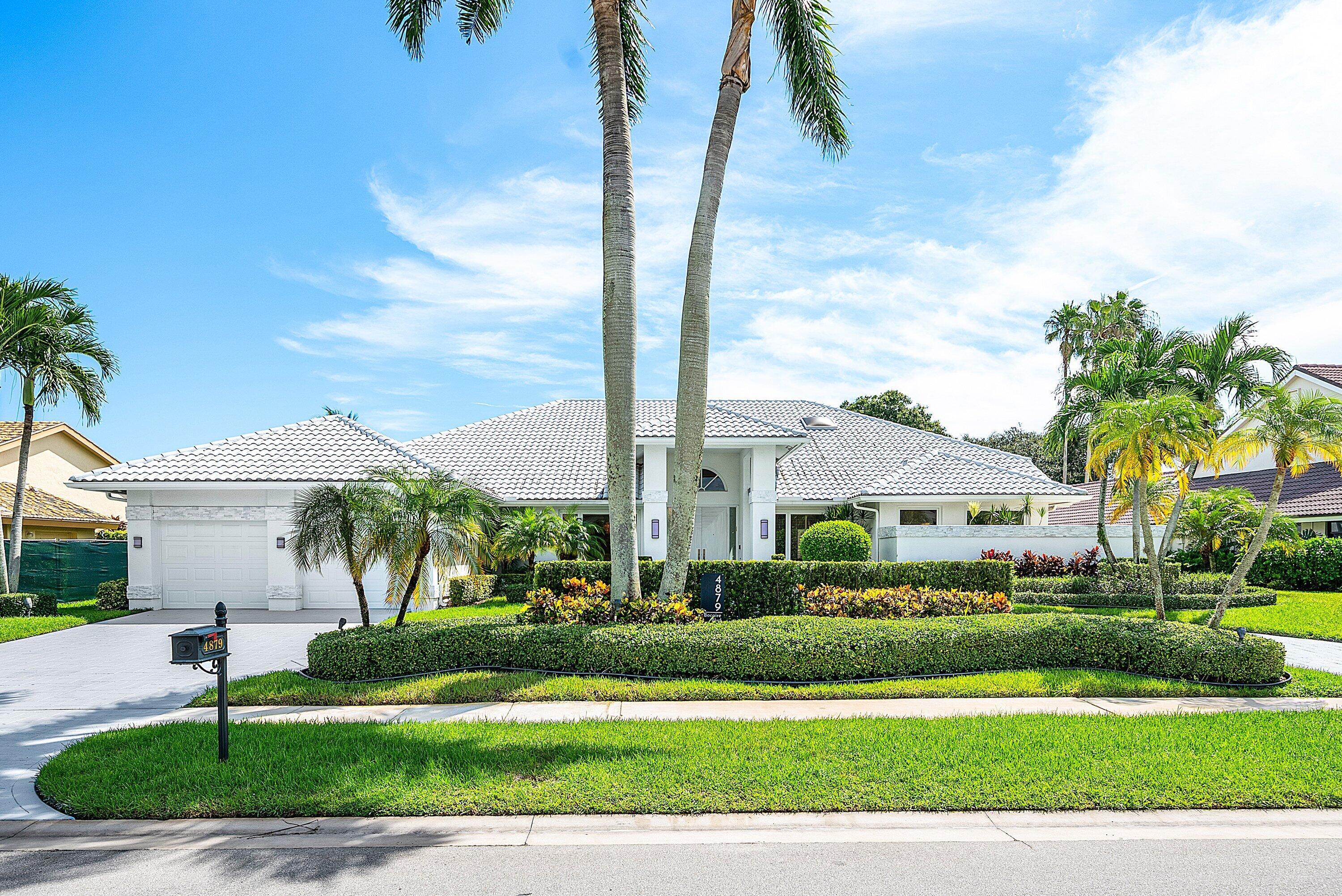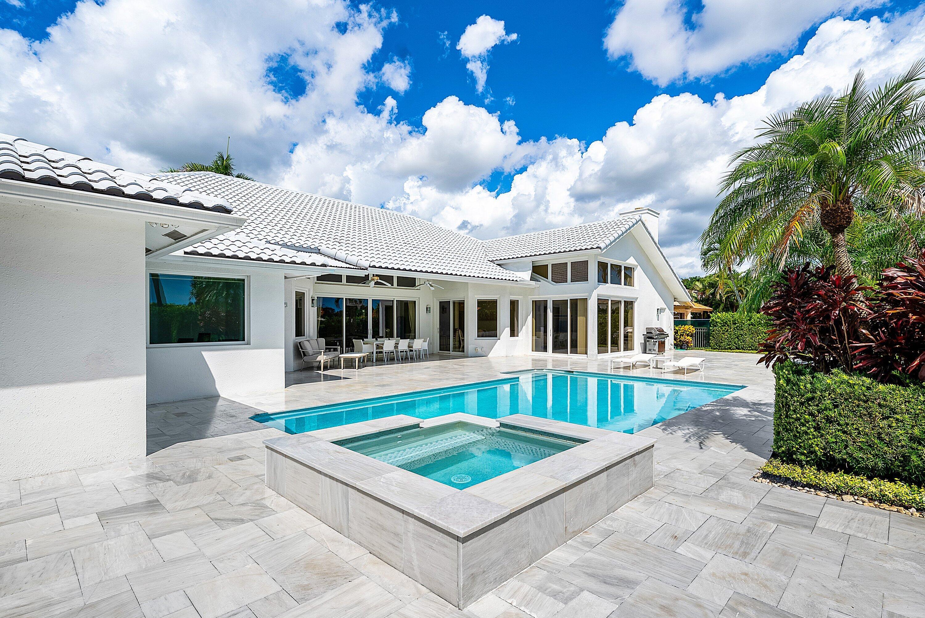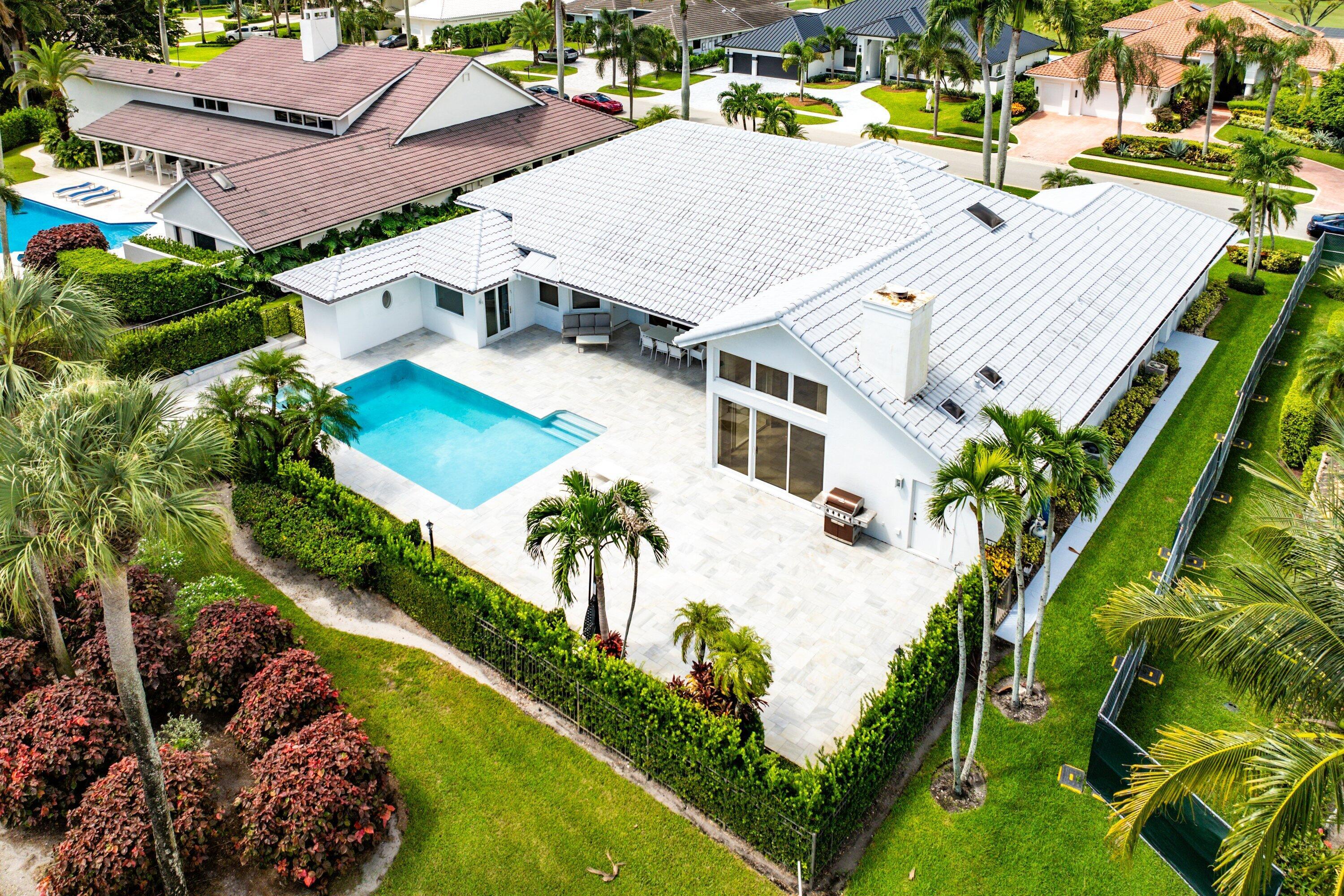 World class golf welcomes you to this sprawling one story custom residence in Bocaire CC. The entry way unfolds to soaring ceilings and views of the newly designed pool, patio and garden. This spacious home has a split plan with ensuite bedrooms. The open kitchen, breakfast area and family room are perfect for entertaining and lead out to the state of the art pool & spa.Located on the opposite wing of the house is a guest bedroom ensuite. The primary bedroom suite features expansive closets, his/ her bathrooms and a bonus room perfect as office or gym. Bocaire CC is a boutique community of 239 homes featuring a newly designed clubhouse, tennis, 24 hr fitness facility, pickle ball, pilates studio, playground and championship golf.