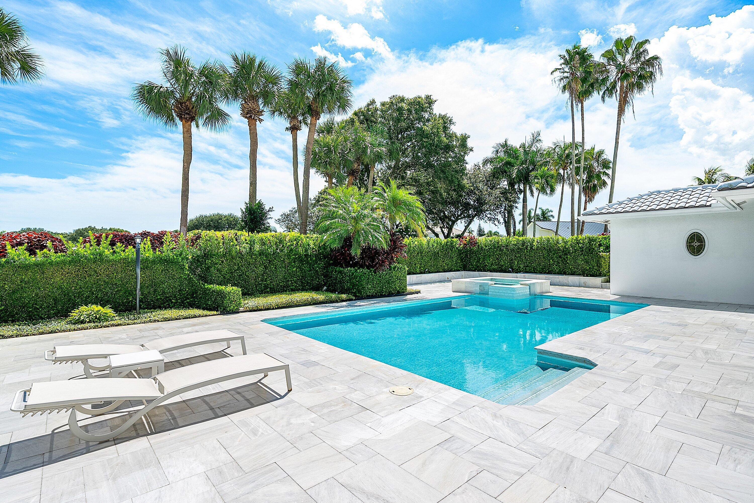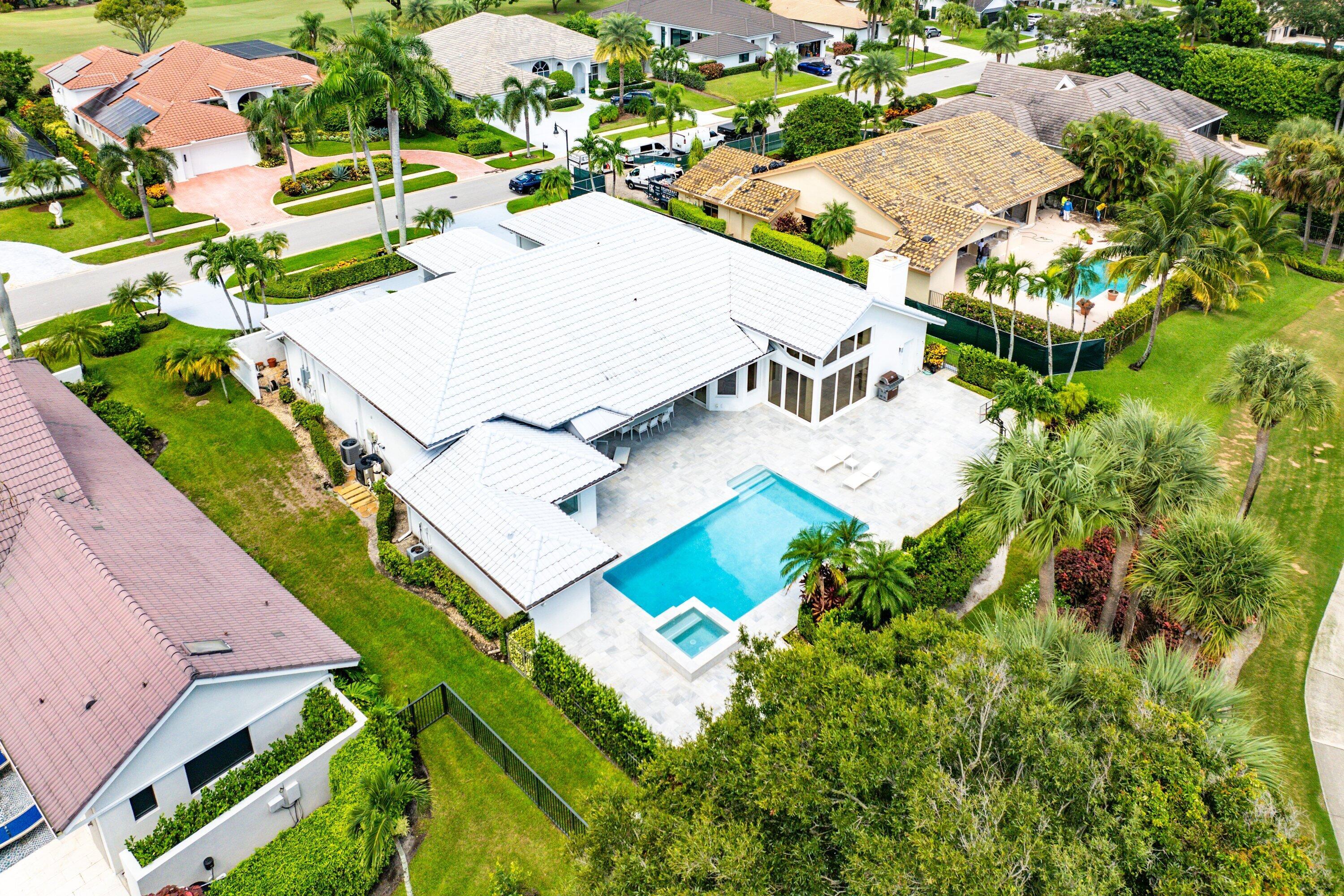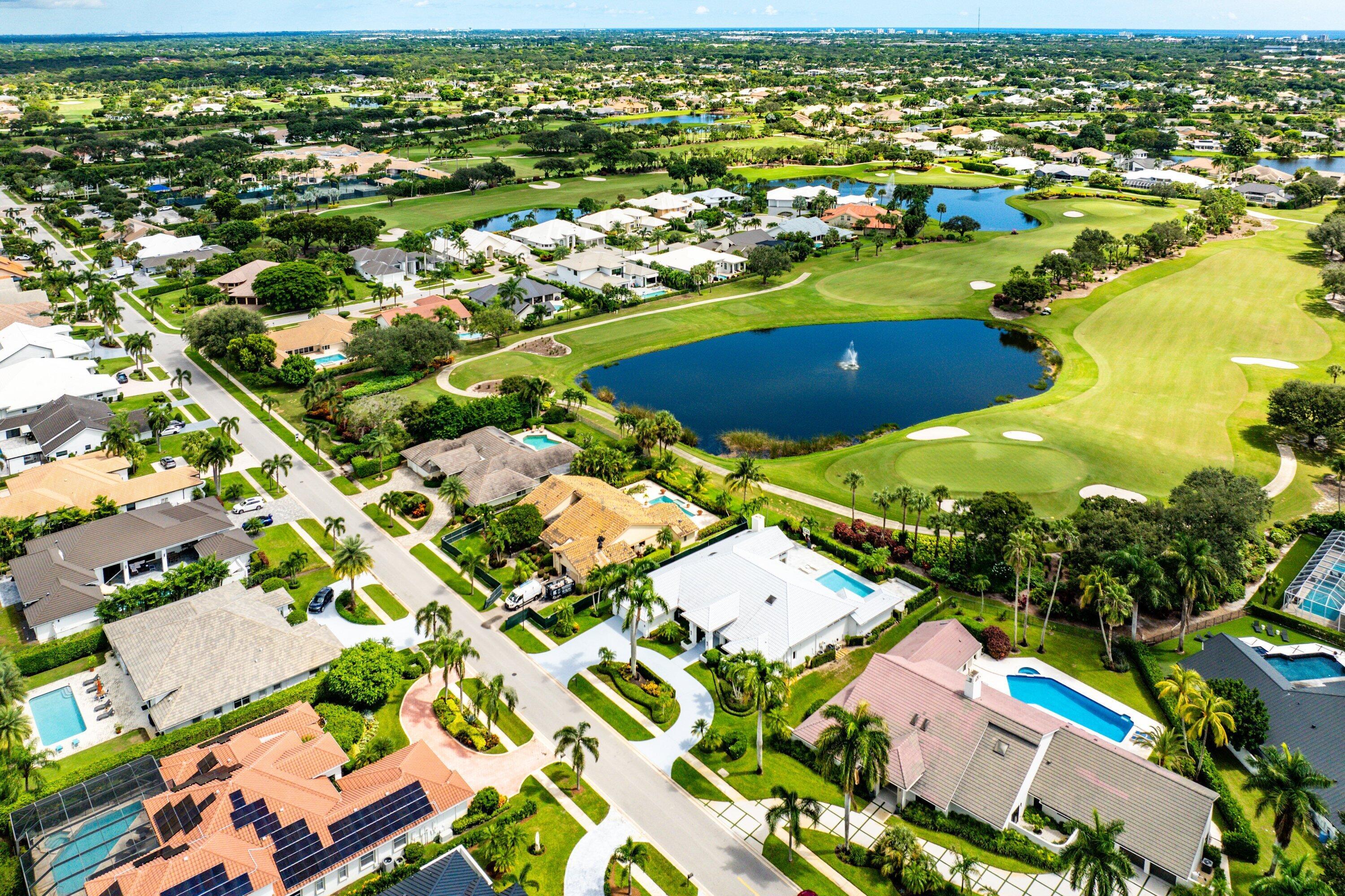 World class golf welcomes you to this sprawling one story custom residence in Bocaire CC. The entry way unfolds to soaring ceilings and views of the newly designed pool, patio and garden. This spacious home has a split plan with ensuite bedrooms. The open kitchen, breakfast area and family room are perfect for entertaining and lead out to the state of the art pool & spa.Located on the opposite wing of the house is a guest bedroom ensuite. The primary bedroom suite features expansive closets, his/ her bathrooms and a bonus room perfect as office or gym. Bocaire CC is a boutique community of 239 homes featuring a newly designed clubhouse, tennis, 24 hr fitness facility, pickle ball, pilates studio, playground and championship golf.