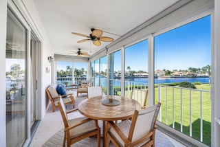 Experience refined Intracoastal living in this beautifully updated three-bedroom, three-and-a-half-bath residence at Bermuda High West. Offering 2,118 square feet under air and 2,343 total square feet, this sophisticated home captures breathtaking wide-water views and an effortless sense of coastal elegance. Renovated with timeless finishes and thoughtful design, the residence features limestone flooring throughout, impact glass windows and sliders, and an abundance of natural light from every room.The expansive living and dining areas are ideal for entertaining, highlighted by a custom built-in entertainment wall, designer chandelier, and custom buffet with storage. A large enclosed balcony--with sliders, screens, ceiling fans, and shades--extends the living space and providesthe perfect setting to enjoy sunset views over the water. The chef's kitchen is beautifully appointed with honed black quartz countertops, a large island with built-in seating, dual Sub-Zero refrigerators, Sub-Zero wine cooler, Miele electric cooktop with grill station, Gaggenau hood, Electrolux Icon convection oven and microwave, and a Bosch dishwasher with custom wood panels. Dual pantries, including a walk-in with pull-out drawers, provide exceptional storage and functionality. The primary suite is a serene retreat with sliders opening to the enclosed balcony and sweeping Intracoastal vistas. A spacious, custom-built walk-in closet and his-and-hers bathrooms each with designer finishes offer privacy and convenience. Two guest bedrooms feature custom closets and elegant detailing, with one easily serving as a den or home office. A dedicated office space with built-in desks, cabinetry, and a private entrance provides the ideal work-from-home setting. Additional highlights include a laundry room with custom cabinetry, LG Inverter washer and dryer, built-in ironing board, and laundry tub, a Roborock vacuum system, dual Trane air handlers and compressors replaced in May 2020, Nest thermostats, and a Rheem 50-gallon hot water heater. Residents of Bermuda High West enjoy a resort-caliber lifestyle on a beautifully landscaped five-acre waterfront property with a full-time on-site manager and staff. Amenities include a refinished pool and club room. The Beach Club, tennis court and two pickleball courts come with the private and required Beach Club Membership ($1,000 annually and $3,000 initial equity contribution). Each residence includes a large, air-conditioned storage room near your tandem two car garage on the first floor of the building, convenient garbage and recycling rooms on each floor, and three guest apartments available to rent for visiting family and friends. Impeccably maintained and offering unmatched Intracoastal views, this exceptional residence combines timeless design, modern upgrades, and resort-style amenities delivering the very best of coastal luxury living in Delray Beach. Seller and Seller's broker make no representations of any kind related to the monthly assessments, pending or contemplated special assessments, the financial condition of the Association, or the conditions of any of the common areas and Buyer acknowledges no representations have been made. Buyer will rely solely on Buyer's own due diligence as it relates to these issues.