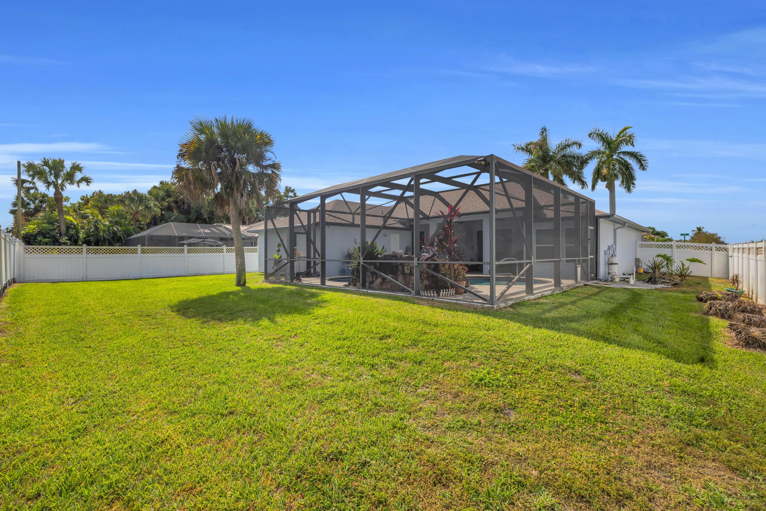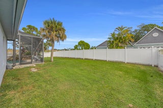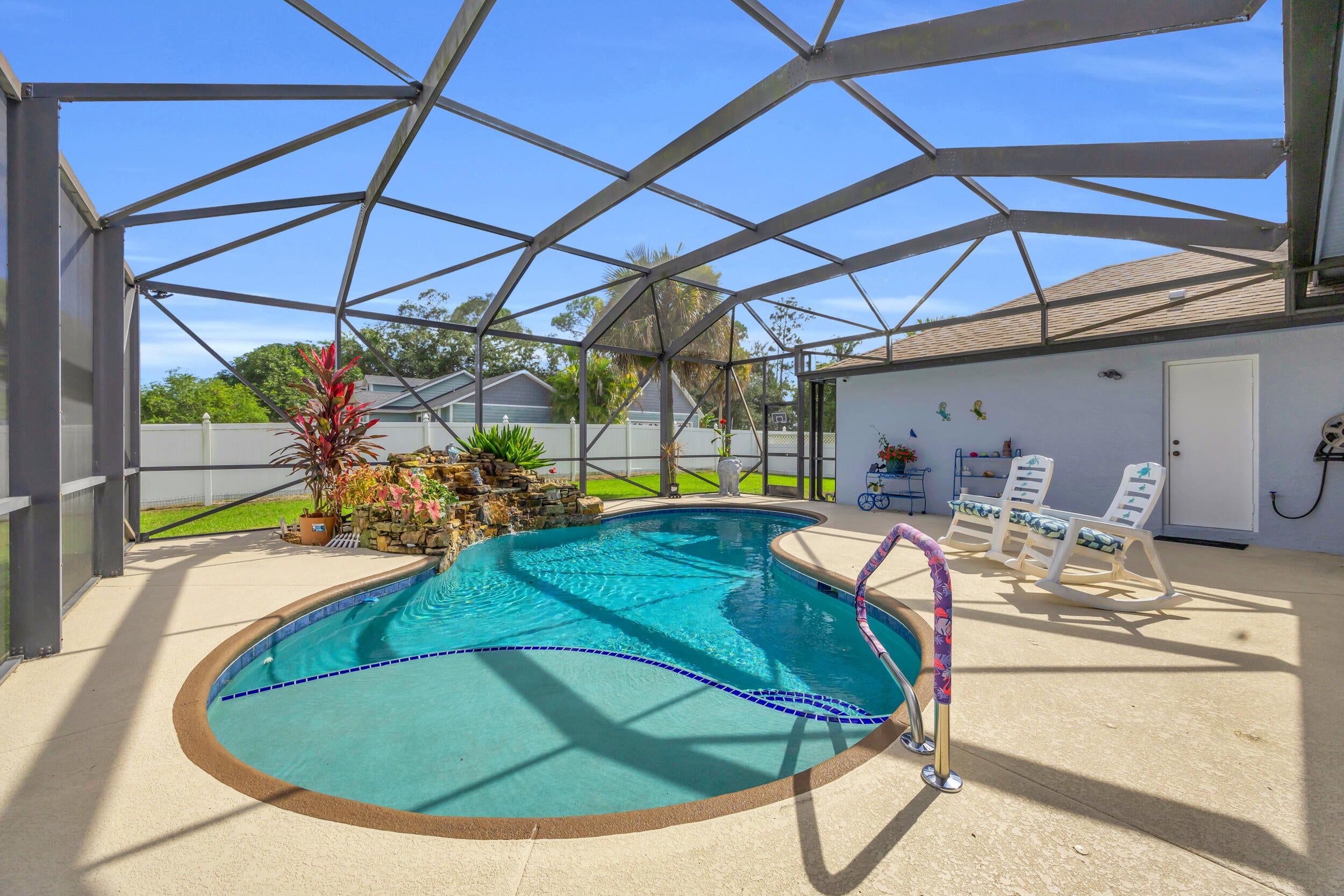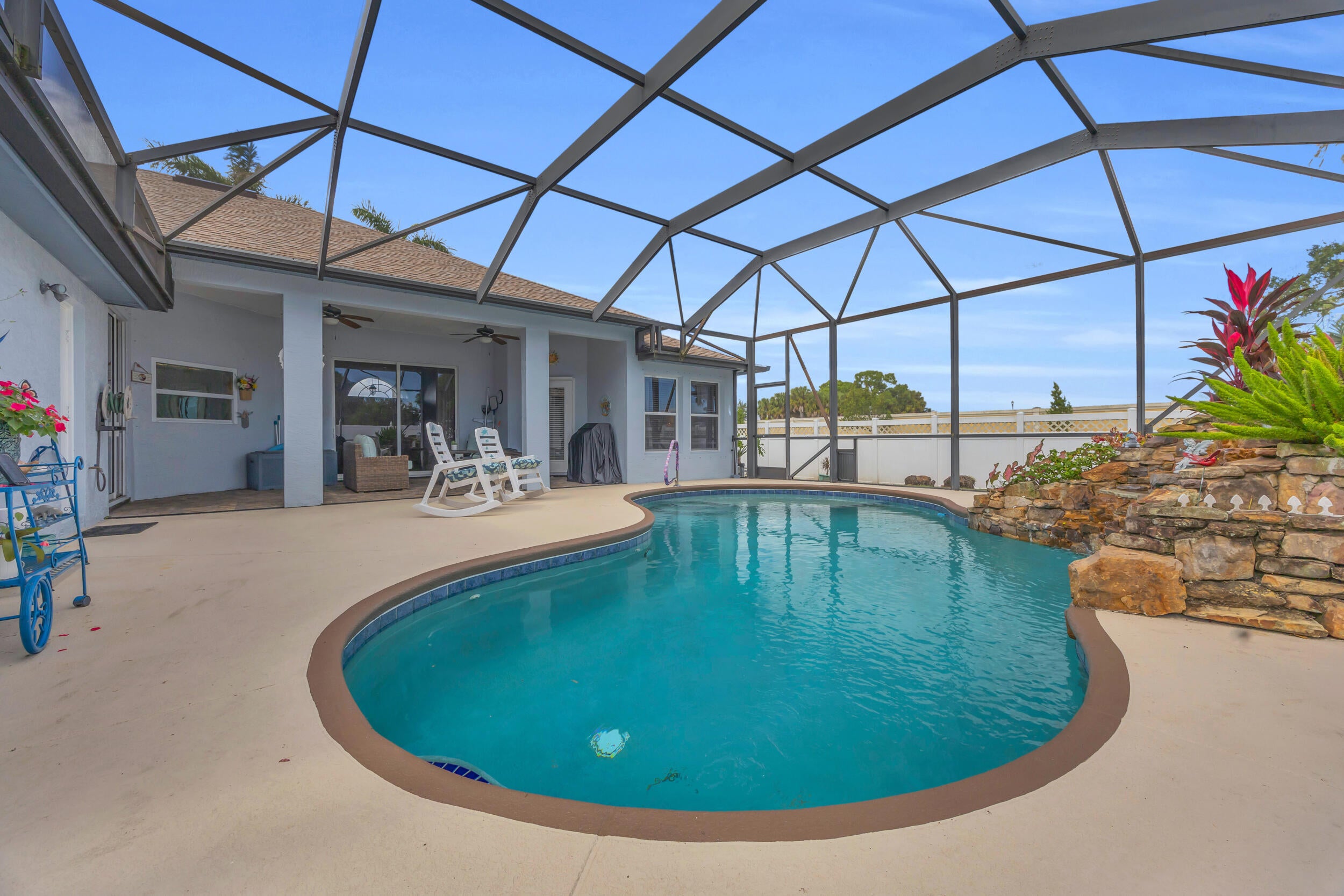 Welcome to Fairgreen Crossing, a sought-after non-HOA community ideally located just outside Tradition--offering all the convenience without the extra fees! Situated on a spacious corner lot with over a quarter acre of extra room, this property gives you the freedom to bring your RV, boat, and all your toys--no restrictions here. This 3-bedroom, 2-bath home has been lovingly maintained by a meticulous owner and features porcelain tile throughout and vinyl flooring in the bedrooms. The updated kitchen is filled with natural light and includes a stylish coffee station for your morning ritual. Step outside to your private paradise: a sparkling pool with a rock-cascade waterfall, surrounded by a large screened enclosure and a white vinyl fence for added privacy. The freshly painted patiodeck offers plenty of space to relax or entertain, with lush green lawn still left to enjoy. With a brand-new 2024 metal roof, an abundance of windows, and a cabana bath leading directly to the pool, this home perfectly blends Florida living, flexibility, and comfortall in a prime location just minutes from Tradition's shops, dining, and entertainment.
