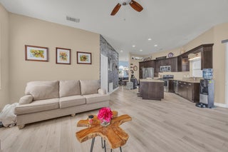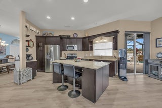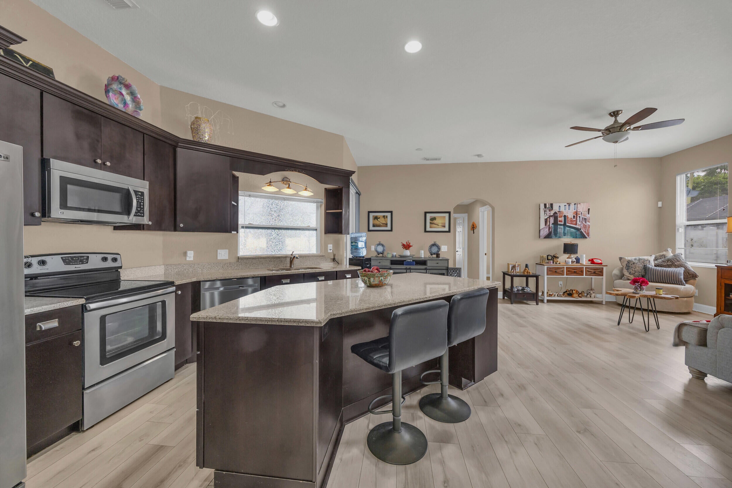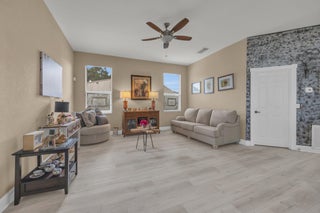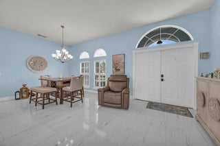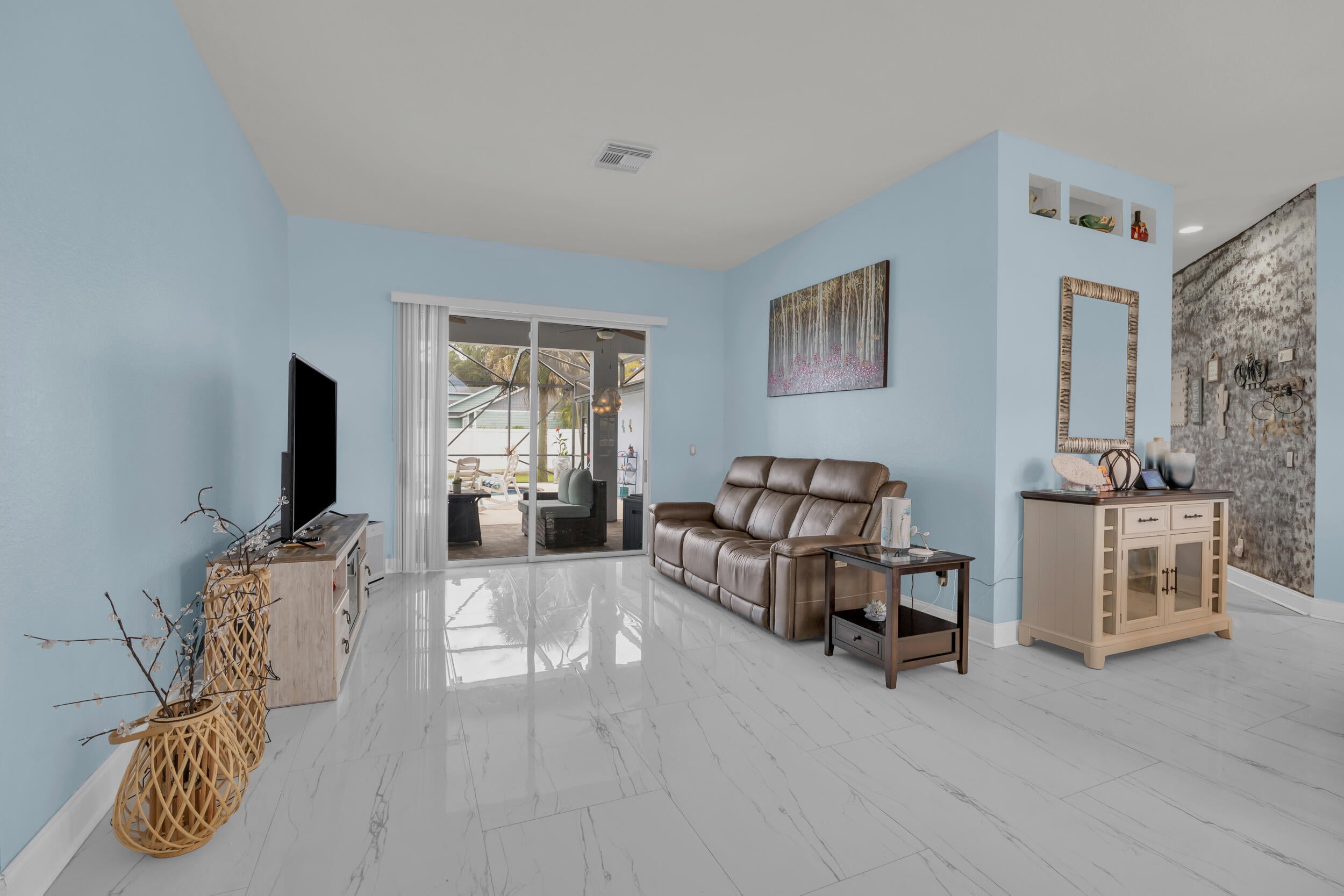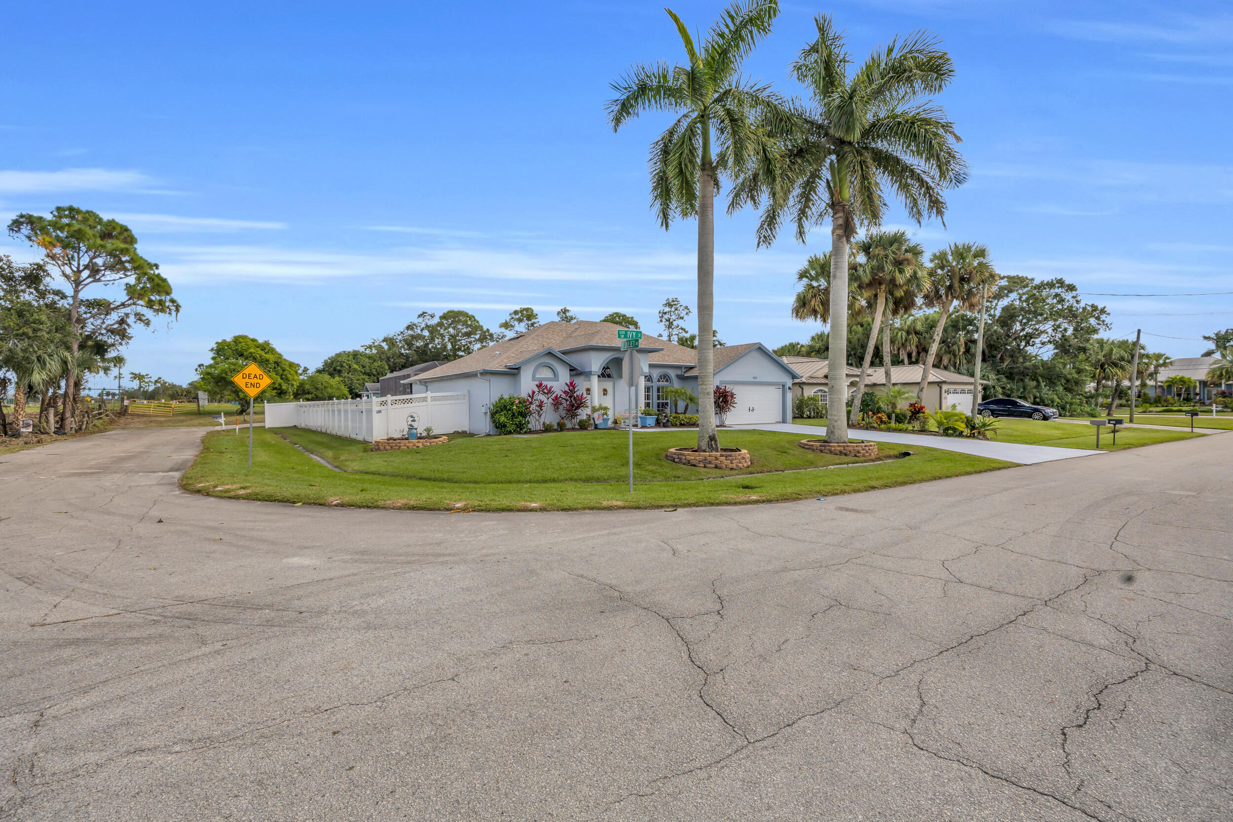 Welcome to Fairgreen Crossing, a sought-after non-HOA community ideally located just outside Tradition--offering all the convenience without the extra fees! Situated on a spacious corner lot with over a quarter acre of extra room, this property gives you the freedom to bring your RV, boat, and all your toys--no restrictions here. This 3-bedroom, 2-bath home has been lovingly maintained by a meticulous owner and features porcelain tile throughout and vinyl flooring in the bedrooms. The updated kitchen is filled with natural light and includes a stylish coffee station for your morning ritual. Step outside to your private paradise: a sparkling pool with a rock-cascade waterfall, surrounded by a large screened enclosure and a white vinyl fence for added privacy. The freshly painted patiodeck offers plenty of space to relax or entertain, with lush green lawn still left to enjoy. With a brand-new 2024 metal roof, an abundance of windows, and a cabana bath leading directly to the pool, this home perfectly blends Florida living, flexibility, and comfortall in a prime location just minutes from Tradition's shops, dining, and entertainment.