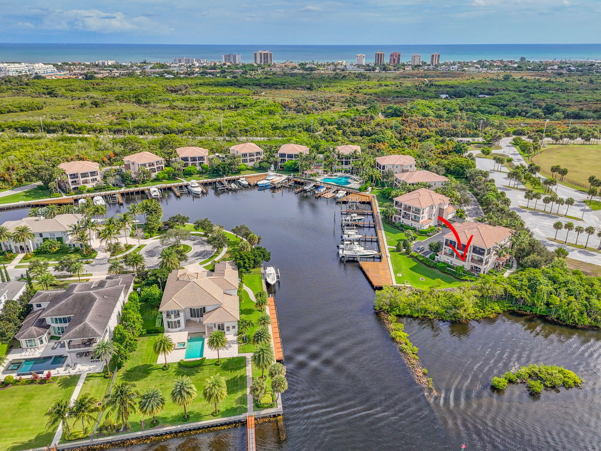 Carriage Residences at Frenchman's Harbor ~ Waterfront Perfection in North Palm Beach!This first-floor, direct waterfront carriage condo offers the rare opportunity to experience the very best in South Florida coastal living. With over 1,900 square feet under air, this spacious three-bedroom, two-bath residence combines refined design with everyday comfort -- all just steps from your private deep-water dock and 20,000-lb boat lift.Inside, the open-concept living area welcomes you with impact windows and doors, interior electric shades and abundant natural light that highlights elegant finishes throughout. Well equipped kitchen is a true standout -- featuring granite countertops, a six-burner KitchenAid gas range, Fisher & Paykel double dishwasher, a prep island, and a walk-in pantry..The primary suite captures tranquil waterway views and offers sliding glass doors leading to the covered patio perfect for your morning coffee or sunset unwind. The European-inspired bath features a large walk-in shower, vessel soaking tub, floating dual-sink vanity, and a custom built-in closet system for effortless organization. Step outside to a private patio surrounded by beautifully manicured greenspace a serene retreat any time of day. Additional highlights include: Interior electric shades and exterior motorized patio screens Custom plantation shutters throughout Natural gas line for cooking and appliances Epoxy-coated and sealed garage floor Whole-home water filtration system Hydro-jet water heater for consistent comfort Located within Frenchman's Harbor, one of North Palm Beach's most exclusive gated communities, residents enjoy a vibrant yet peaceful waterfront lifestyle with quick access to the Intracoastal, beaches, dining, and everything that defines South Florida luxury living.