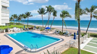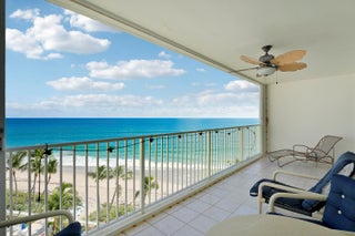 Wake up to the sound of the waves and panoramic ocean vistas from this direct oceanfront condo at Penthouse Towers in Highland Beach. This 8th floor 2-bedroom, 2-bath condo offers an open, light-filled layout designed to capture the beauty of the Atlantic from every angle. The private balcony overlooks endless blue water and sandy shoreline, the perfect spot for morning coffee. Inside, enjoy a split-bedroom floor plan, galley kitchen and move-in-ready interior ideal for seasonal living. Complete accordion storm protection for peace of mind. PH Towers features an oceanfront pool, fitness equipment, club lounge, and private beach access! Located between Delray Beach and Boca Raton on A1A, PH Towers offers the best of South Florida's coastal lifestyle.