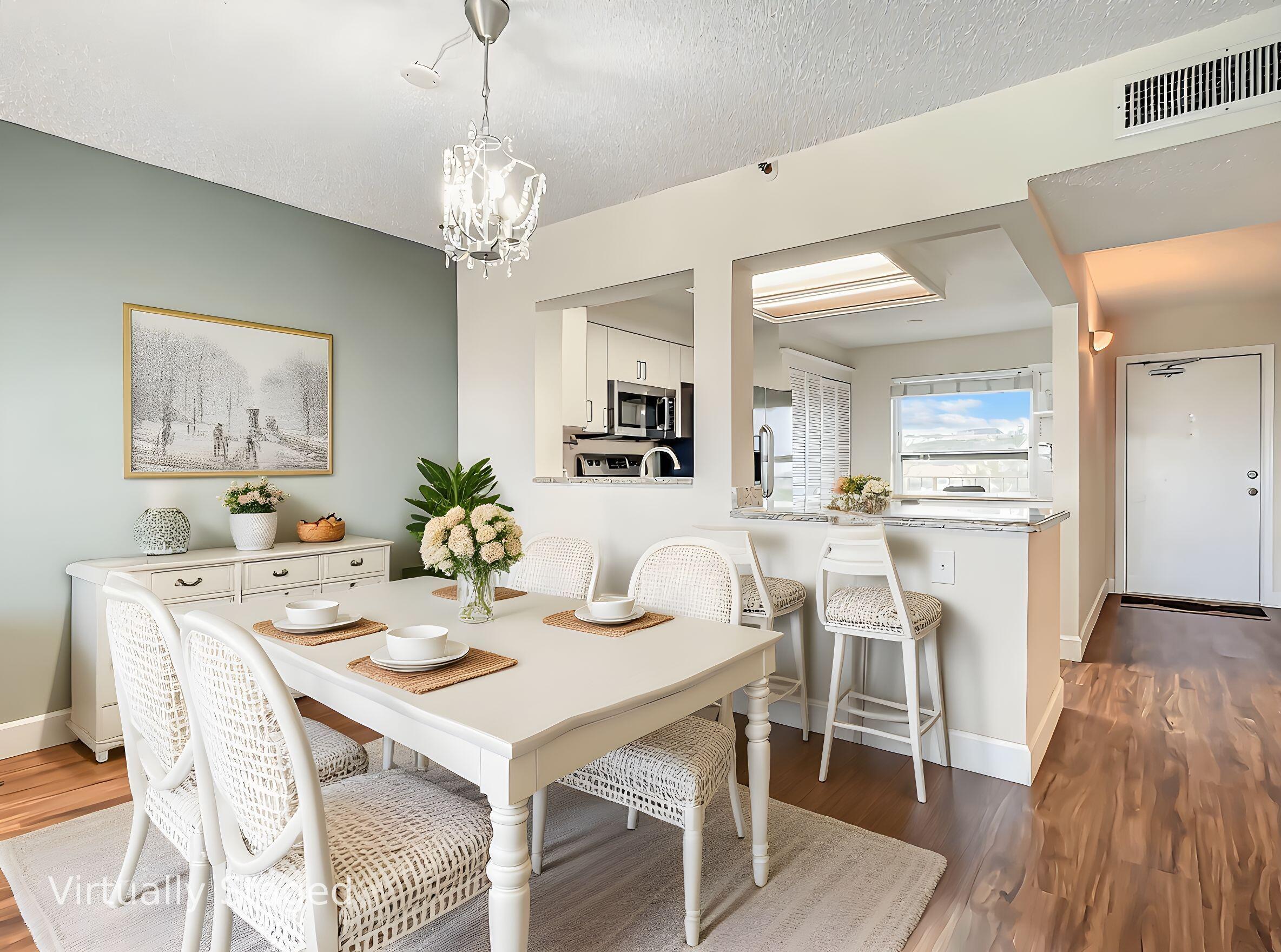 PENTHOUSE UNIT! Welcome to Penthouse #7 at Waters Edge Tower. Virtually Staged for Tenant's privacy--a remodeled 2-bedroom + den, 2-bath residence featuring soaring ceilings, a bright open layout, and no upstairs neighbors! Enjoy stunning lake views from this spacious condo, ideally situated in a quiet, well-maintained community. Amenities include a heated pool, jacuzzi, clubhouse with ballroom and gym, plus an outdoor BBQ area. All ages welcome. Can be financed with 5% down. Building passed the 40-year inspection. Rentals ok after 2 years of ownership. Association requires proof of income and 700+ credit score. Registered service animals / emotional support permitted only. Close to shopping, dining, and beaches.