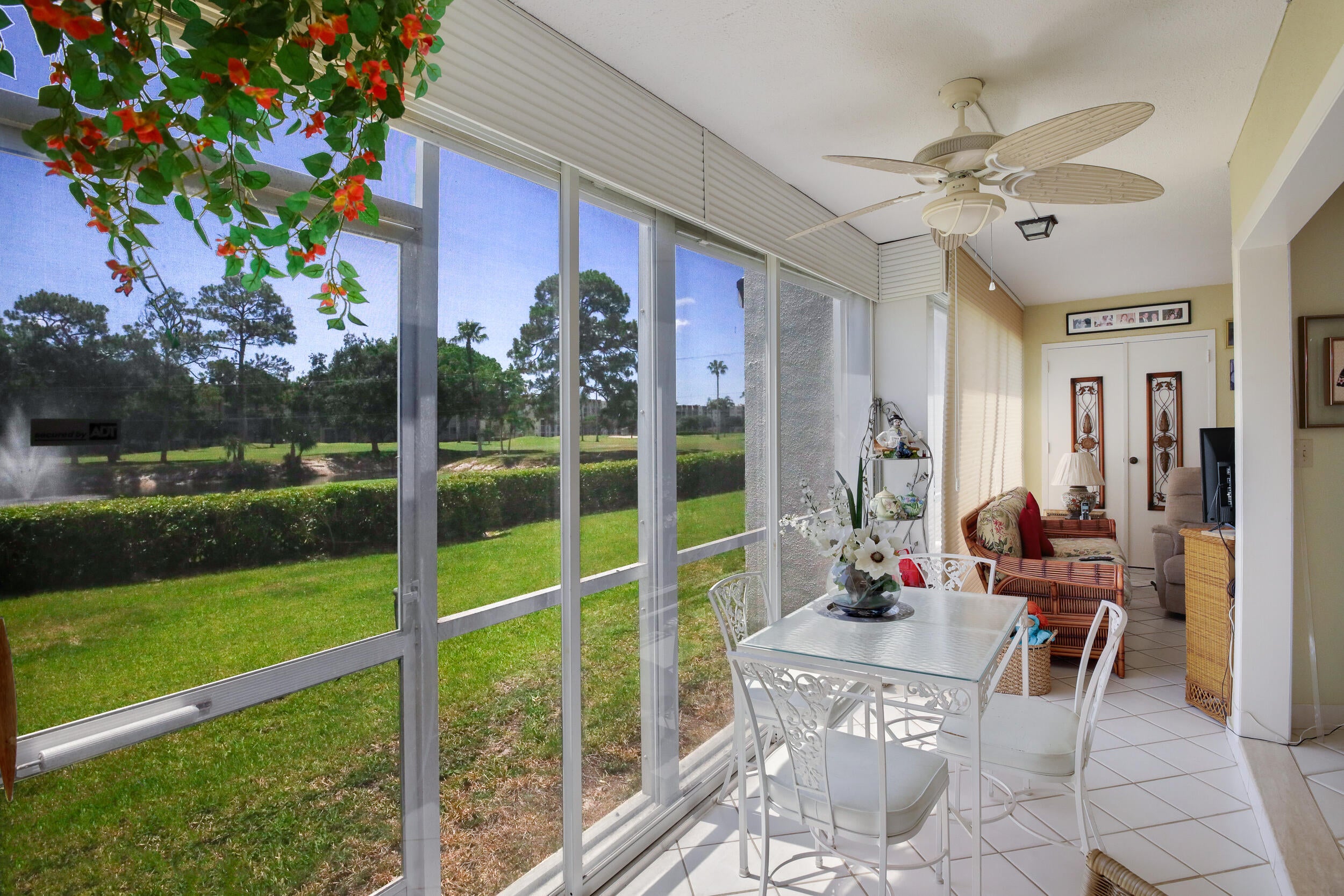 WELCOME TO THIS CONVENIENT 1ST FLOOR CONDO WITH BEAUTIFUL WATER,GARDEN & GOLF VIEWS! FEATURES INCLUDE AN EASTERLY FACING GLASSED SCREENED PATIO THAT ADDS TO THE LIVING AREA & OPENS TO AN EAT-IN KITCHEN, LIVING ROOM & MASTER BEDROOM WITH ITS 2 CLOSETS & ENSUITE BATHROOM. NEW AC 7/25 & UPDATED ELECTRIC PANEL. THIS ENCLAVE OF 3 BUILDINGS HAS A RESORT STYLE POOL & CABANA AREA WITH WI-FI SERVICE. TAKE A PATH ON GOLF COURSE TO THE POINCIANA CLUBHOUSE WITH ITS ADDITIONAL POOL, PICKLEBALL, TENNIS, APY-AS-YOU-PLAY GOLF, GYM, MOVIES, & MEL'S BISTRO & ENTERTAINMENT. AVAILALBLE WITH FURNITURE FOR AN EASY MOVE-IN. THE CONDO FEE INCLUDES HOTWIRE TV & WI-FI, WATER,SEWER, PEST CONTROL. CONVENIENTLY LOCATED APPROXIMATELY 8 MILES TO THE BEACH, MINUTES TO THE TURNPIKE, PBIA(AIRPORT).55+AGE RESTRICTIONS.