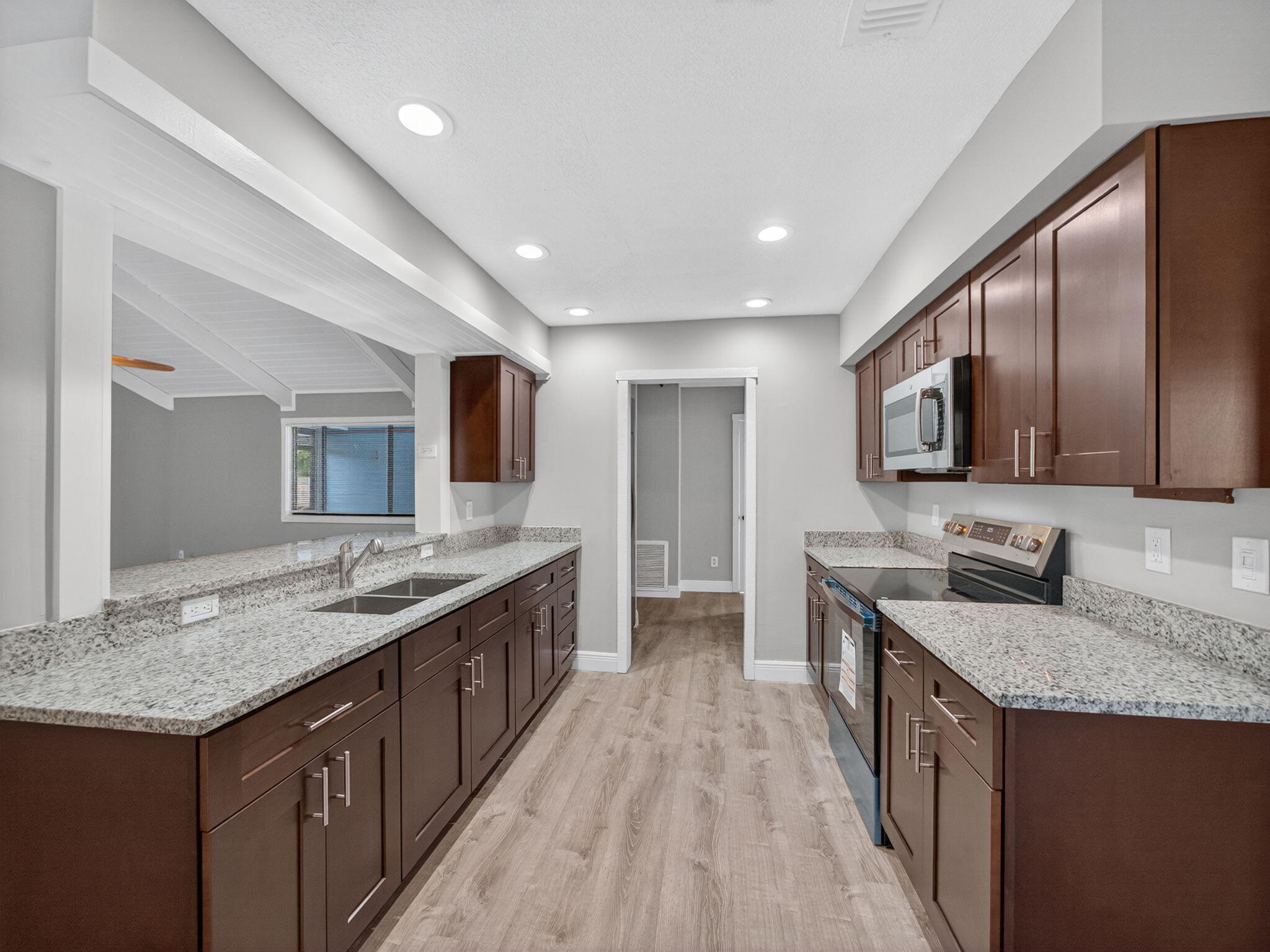 Beautiful pool home located in the wonderful Lakewood Park Community. Main house offers 2 bedroom/1.5 bathrooms, high wood beam ceiling with a fireplace in the spacious living room, completely updated kitchen, fresh paint throughout, updated master bathroom, and closet has new door/organizer. Guest house is a 1 bathroom currently an efficiency but can easily add a full kitchen. Property has a privacy fence. Welcome to your dream home.