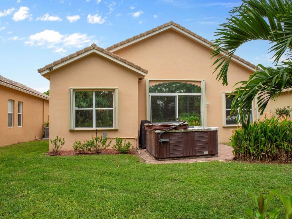 Welcome to your Butterfly Retreat! 3 bed 2 bath home in Portofino Shores featuring a split floorplan w/ vaulted ceilings w/ an inviting, open layout. kitchen has been updated w crisp white cabinets, countertops & a pantry. '24 A/C, Accordion shutters + plantation shutters. Enjoy Florida living on the paver patio w a 7-person hot tub overlooking a serene butterfly garden & private preserve view-- perfect space for relaxation.T his community offers exceptional amenities including a resort-style pool, fitness center, tennis, pickleball, basketball, playground,& a recently remodeled clubhouse.