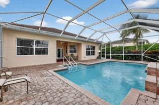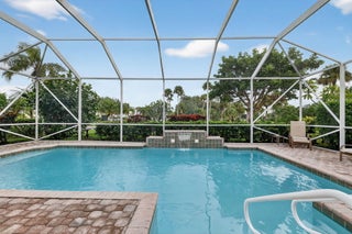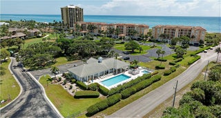 Ocean Village on South Hutchinson Island! 2 bedroom, 2 bath, 2 car garage CBS home with a private pool! Rare find!! Beautiful wood & tile flooring, coffered ceilings, crown molding, beautiful screened salt water pool with large pool deck! Situated on a beautifully manicured corner lot in Ocean Village & steps to the ocean! Near Pelican Yacht Club for all boating enthusiasts & minutes to the gulfstream! Enjoy the ultimate Florida lifestyle at this beautiful award winning oceanfront community offering resort style amenities including 24 hr gated entry, 9 hole par 3 golf course, tennis, pickleball, bocce ball, new clubhouse & fitness center, 4 heated pools, oceanfront restaurant. Located on South Hutchinson Island with 21 miles of uncrowded & unspoiled beaches! Measurements approximate.
