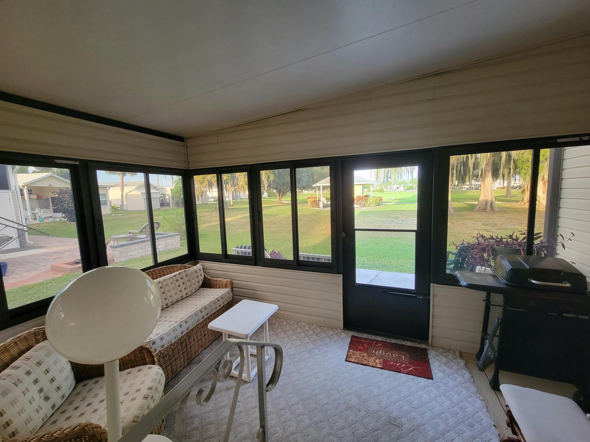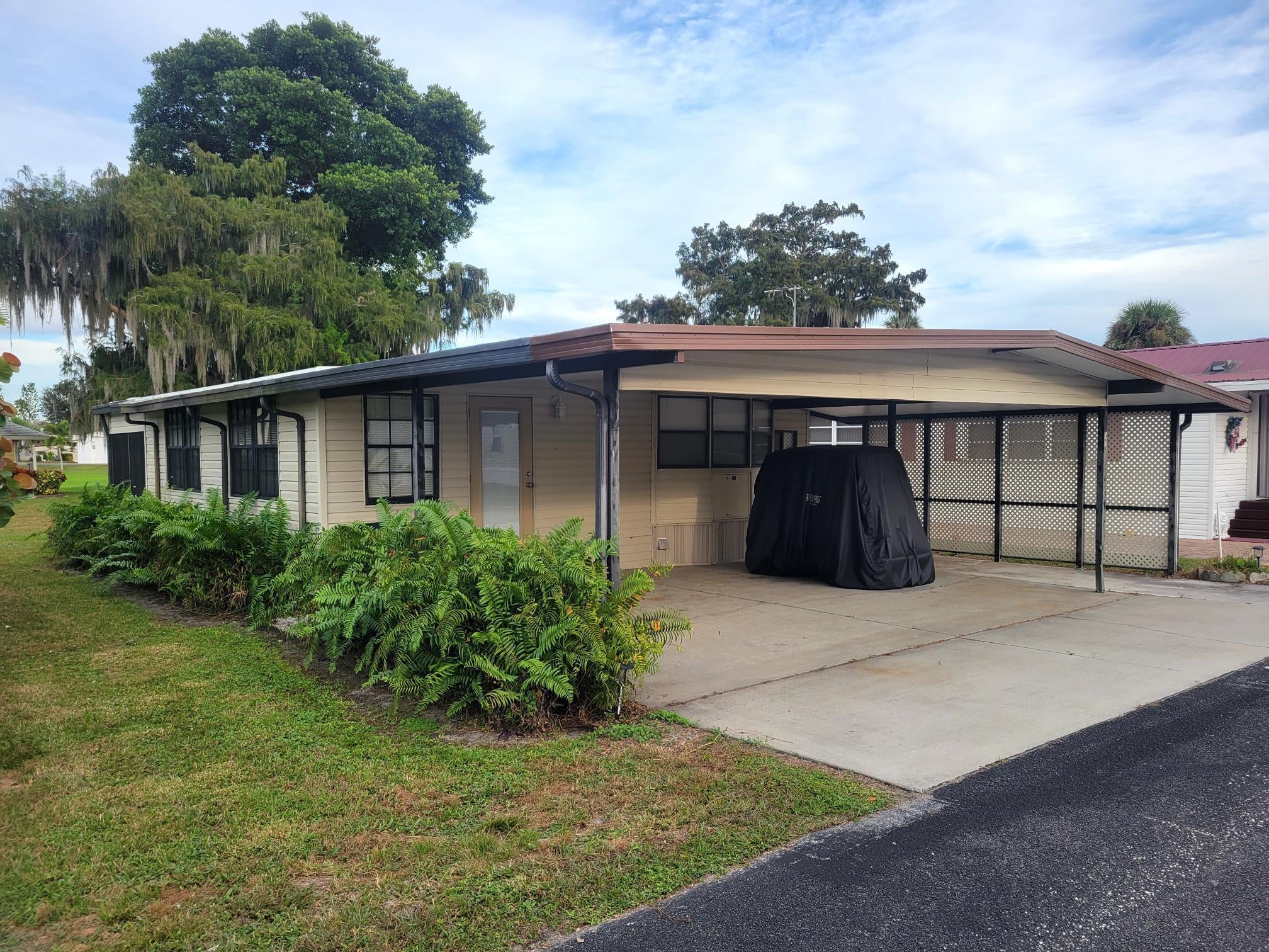Located in Blue Cypress Golf & RV Resort. This 1 bedroom 1 bathroom converted RV is an excellent place for anyone looking a their new home or seasonal escape in a 55+ community. Features include a large living room for relaxing/entertaining, covered parking, large master bedroom, florida room, and a golf course view. New roof in 2024, central a/c, and appliances. Fully furnished and move-in ready. Call today for details and to schedule a tour.