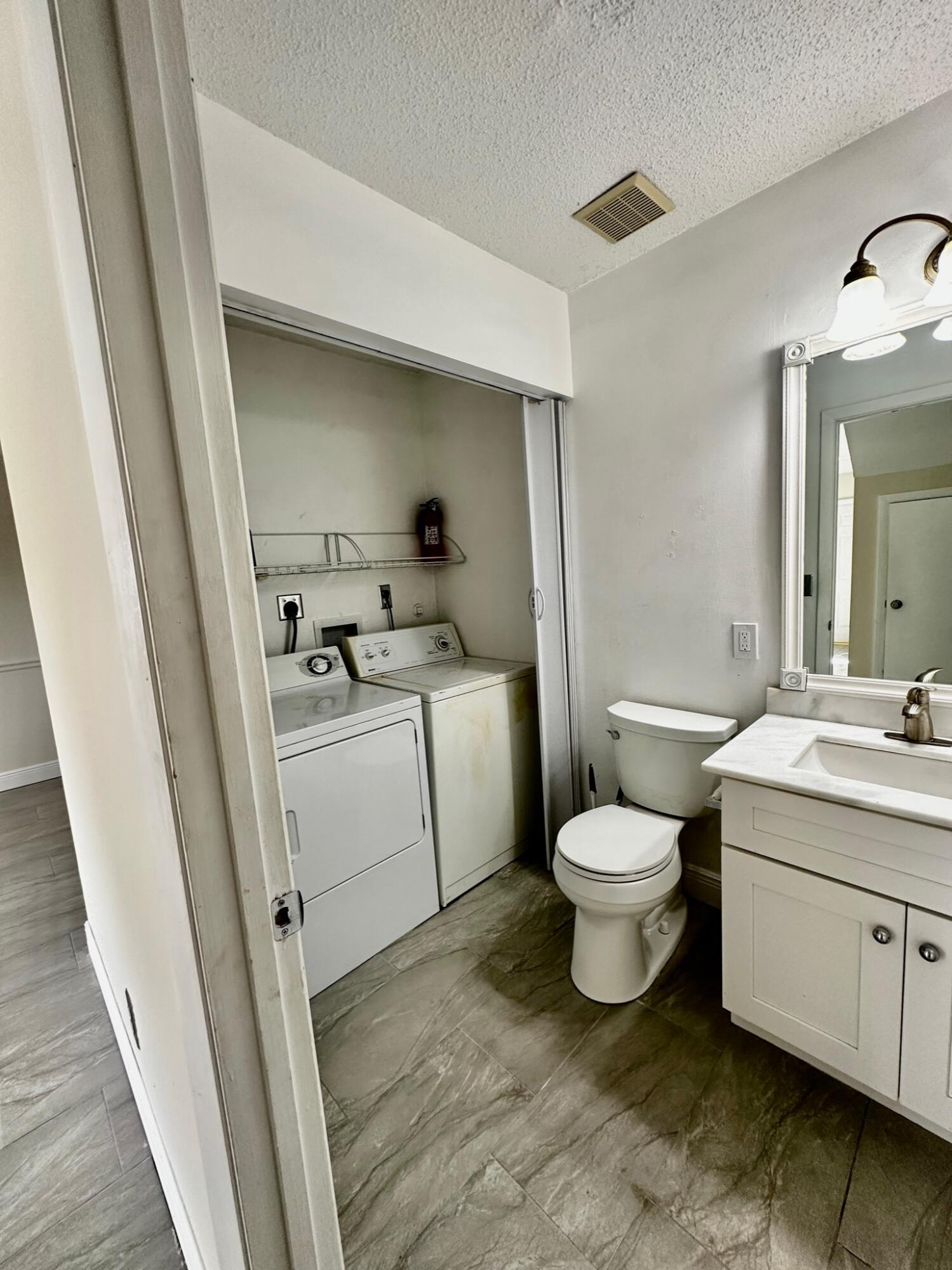 Charming Updated Townhome Between Wellington & West Palm Beach!This lovely 2-bedroom, 2.5-bath townhome features an in-unit washer and dryer, and renovated bathrooms with fresh finishes. Both bedrooms open onto private balconies, perfect for enjoying your morning coffee, while the spacious primary suite includes a large walk-in closet for ample storage.Relax and unwind in the community pool, or enjoy peaceful moments on your private, fenced patio -- ideal for outdoor dining or quiet evenings. Conveniently located between Wellington and West Palm Beach, this residence offers easy access to shopping, dining, and major roadways, while maintaining a serene, tucked-away feel.