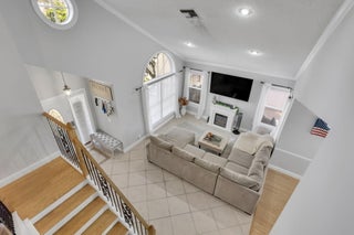 Welcome home to this stunning two-story pool home with a brand new roof, move-in ready and loaded with high-end upgrades!Step inside to an open, light-filled floor plan with a freshly painted interior, six-inch baseboards, crown molding, and custom window casings. The first floor features beautiful tile and hardwood flooring along with a custom-built staircase completed just two years ago.The kitchen is a showstopper--equipped with stainless steel appliances, granite countertops, subway tile backsplash, and abundant cabinetry. The living and dining areas flow seamlessly, perfect for entertaining or family gatherings.Upstairs, the spacious primary suite includes a beautifully upgraded bathroom with dual sinks, a custom vanity offering ample storage, a frameless glass shower withmultiple body sprays and steam feature, and a custom-built walk-in closet.