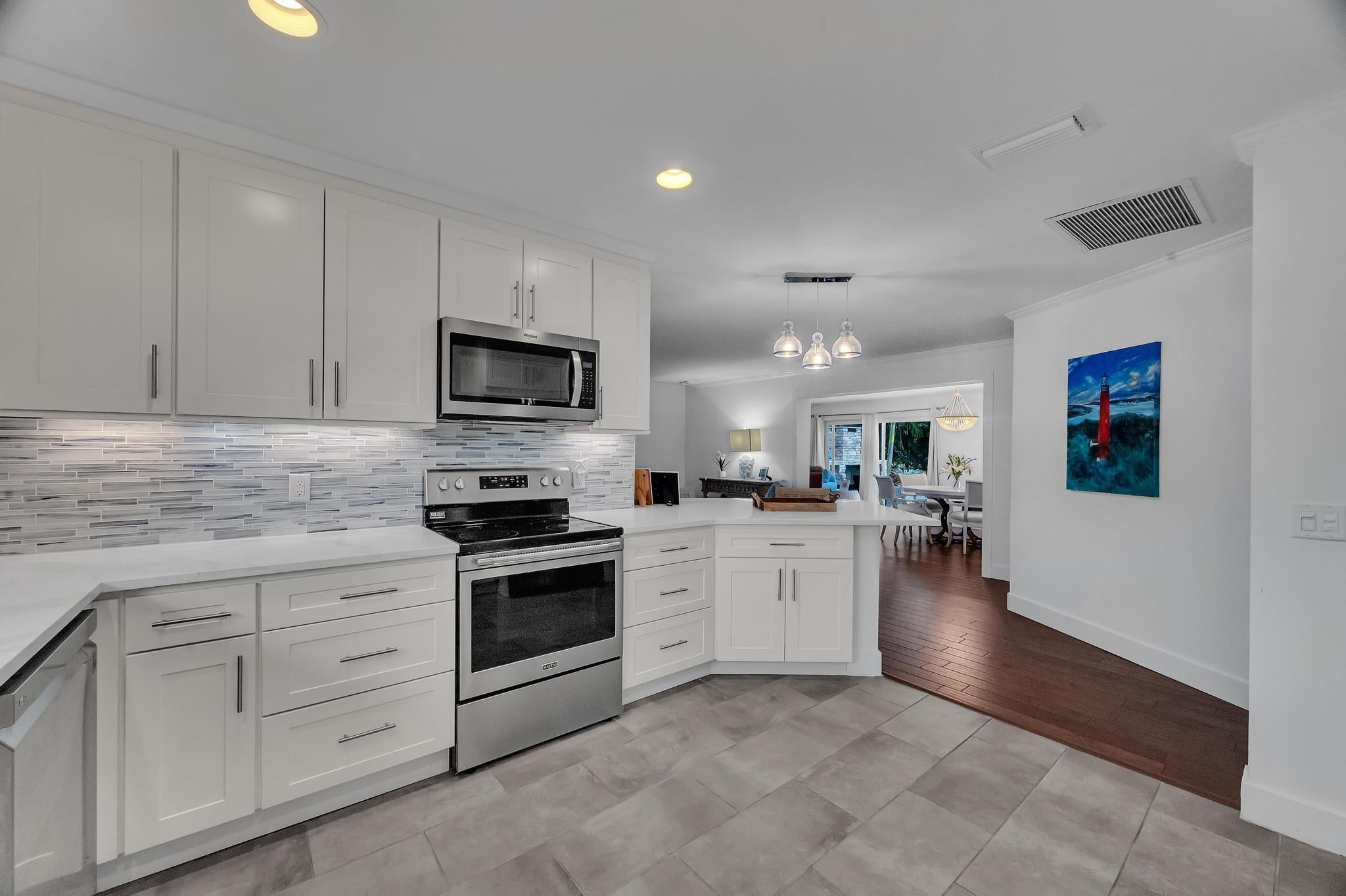 Location! Charming CBS 3 bedroom, two bath home in a quiet neighborhood in Jupiter! A delightful new, custom outdoor living patio with full fireplace and summer kitchen complete the fenced backyard while still leaving plenty of room for a pool! All windows and doors are hurricane impact, new irrigation system and landscaping compliment this home. The large kitchen features white shaker cabinets, quartz countertops, a beautiful tile backsplash. (Too many updates to list.) This home is perfectly located minutes to the beach and shopping and dining!