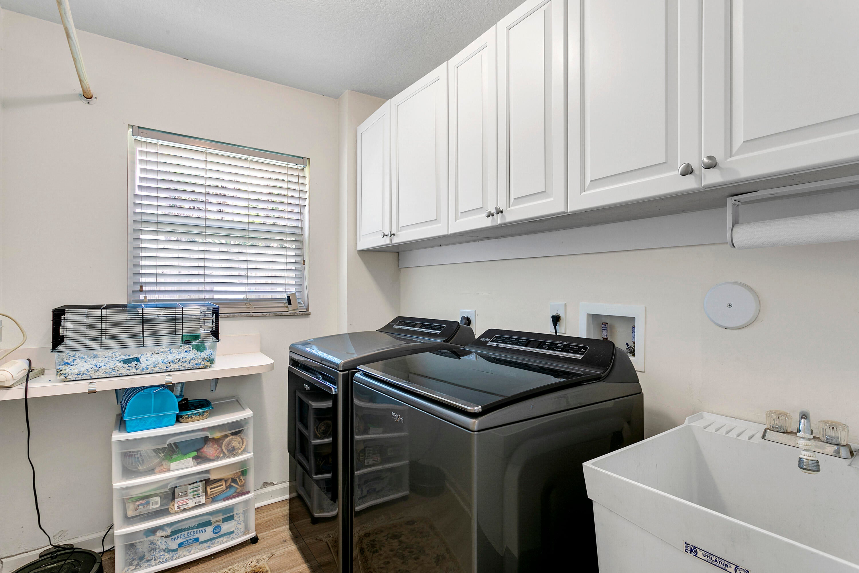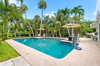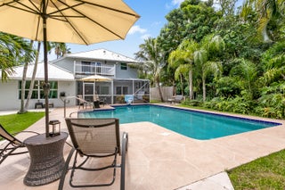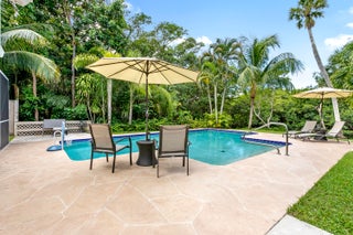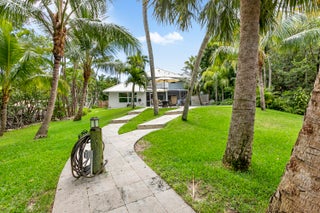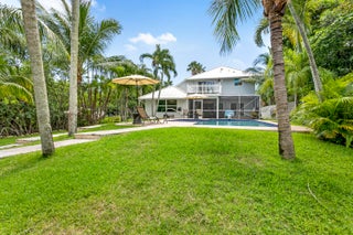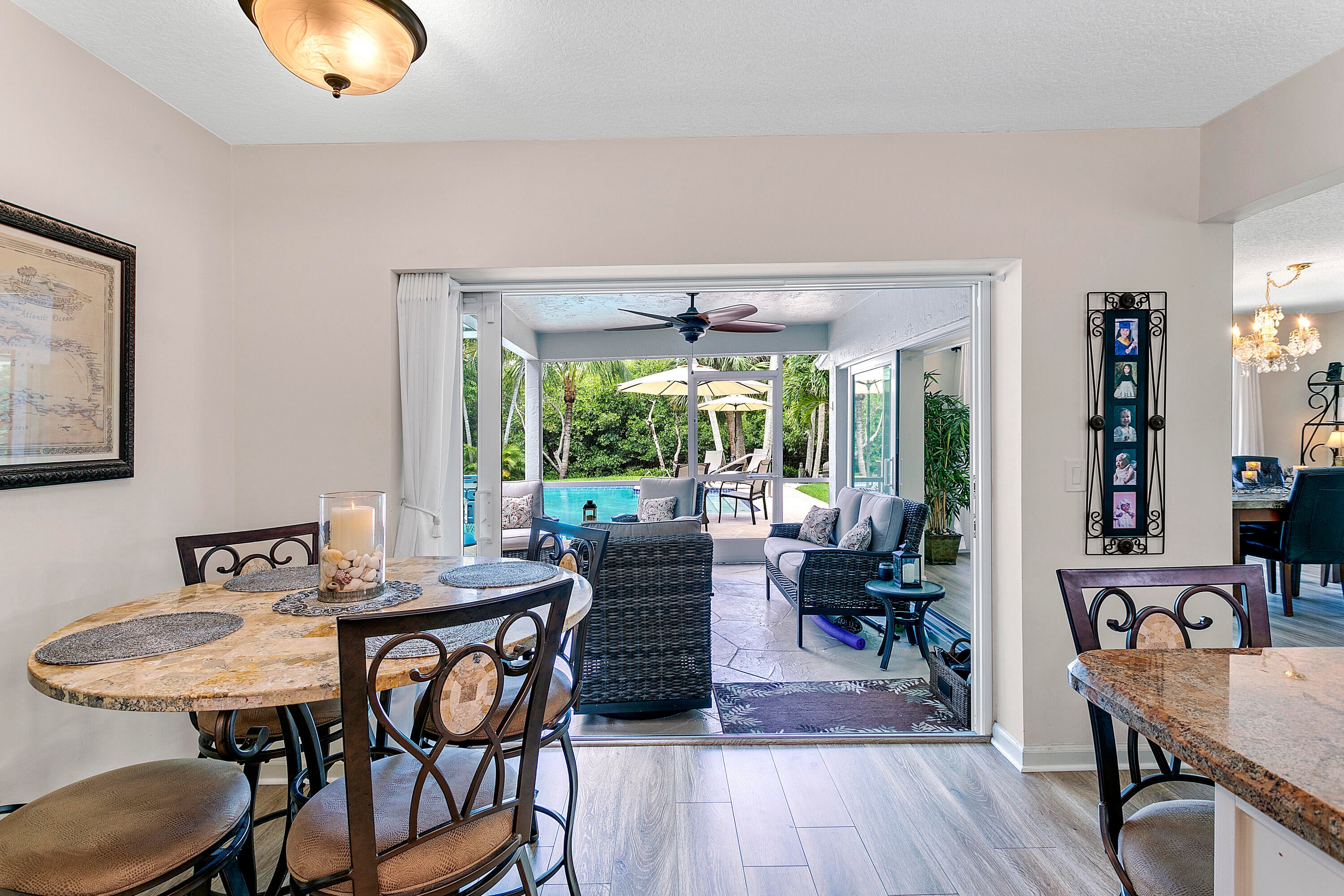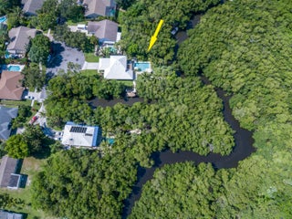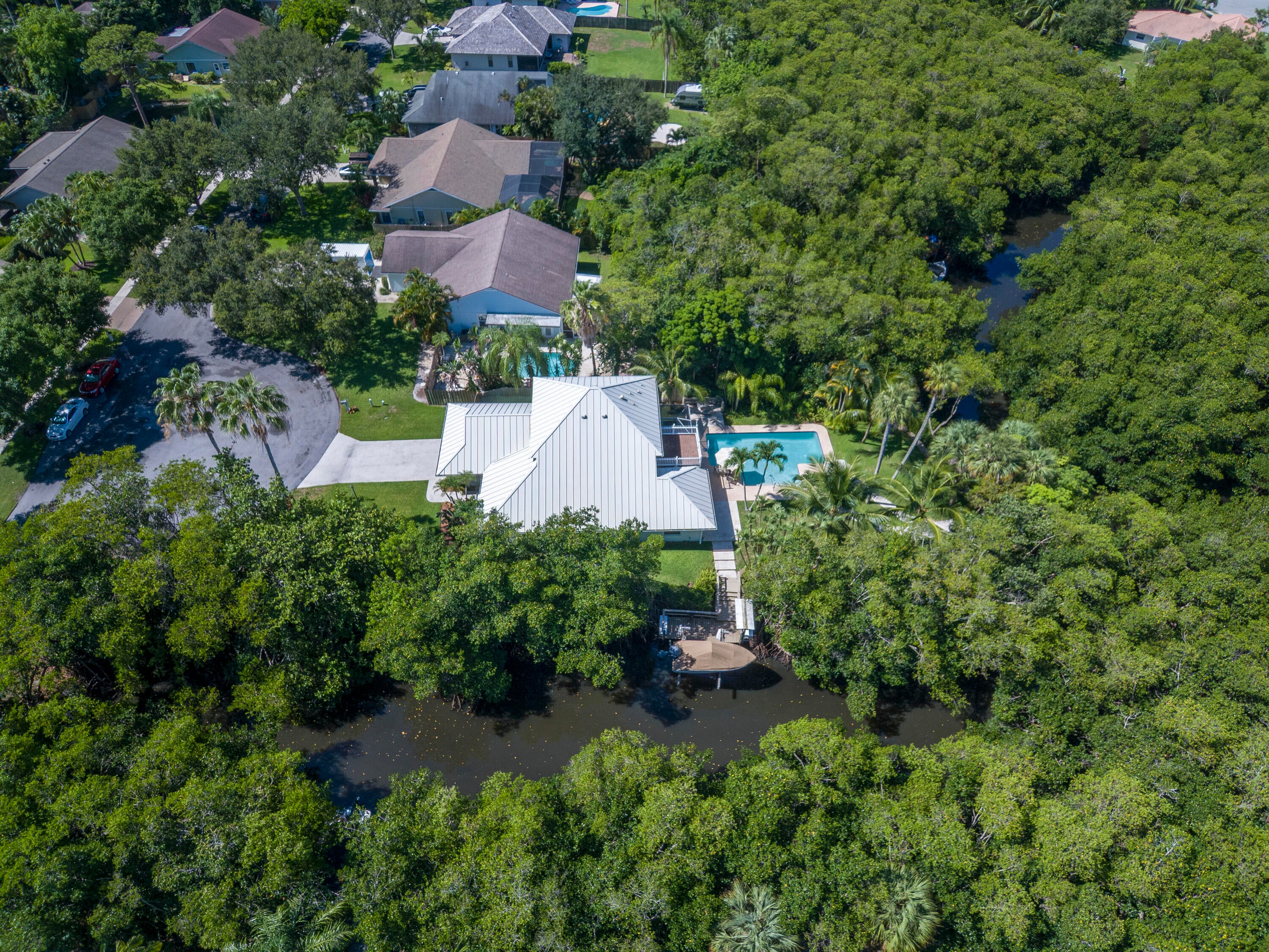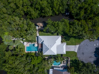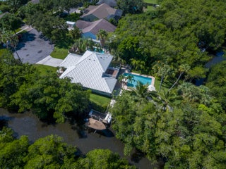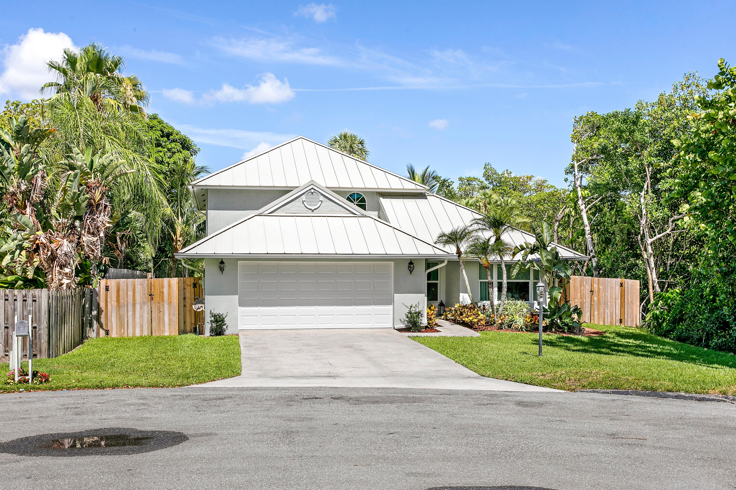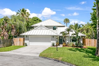 Updated CBS home on a private corner lot with 280' of waterfront on scenic Jones Creek. Enjoy boat watching and wildlife from your tropical oasis with saltwater pool, spa and upstairs balcony. Outside you'll find a spacious screened in patio and two docks! One with a lift on the canal that fits up to a 20ft boat with a covered fish cleaning station and water, electric. The second is a 12ft fishing dock overlooking the waterways of Jones Creek. 3 beds (master up) and 2 baths, 2 top of the line ACs w/dehumidifiers (2024), PGT impact windows and sliding doors, metal roof (2018), hurricane-rated garage door, alarm, surge protector, 12kW generator. Quiet cul-de-sac, spacious yard with palm trees, low HOA ($700/yr), top-rated schools (Jerry Thomas, IMS, Jupiter).Great location, close to shopping and restaurants. Boater's dream in desirable Jupiter! 4.8' bridge clearance under Center Street at mean high tide to open water, Jupiter sandbars and Inlet.