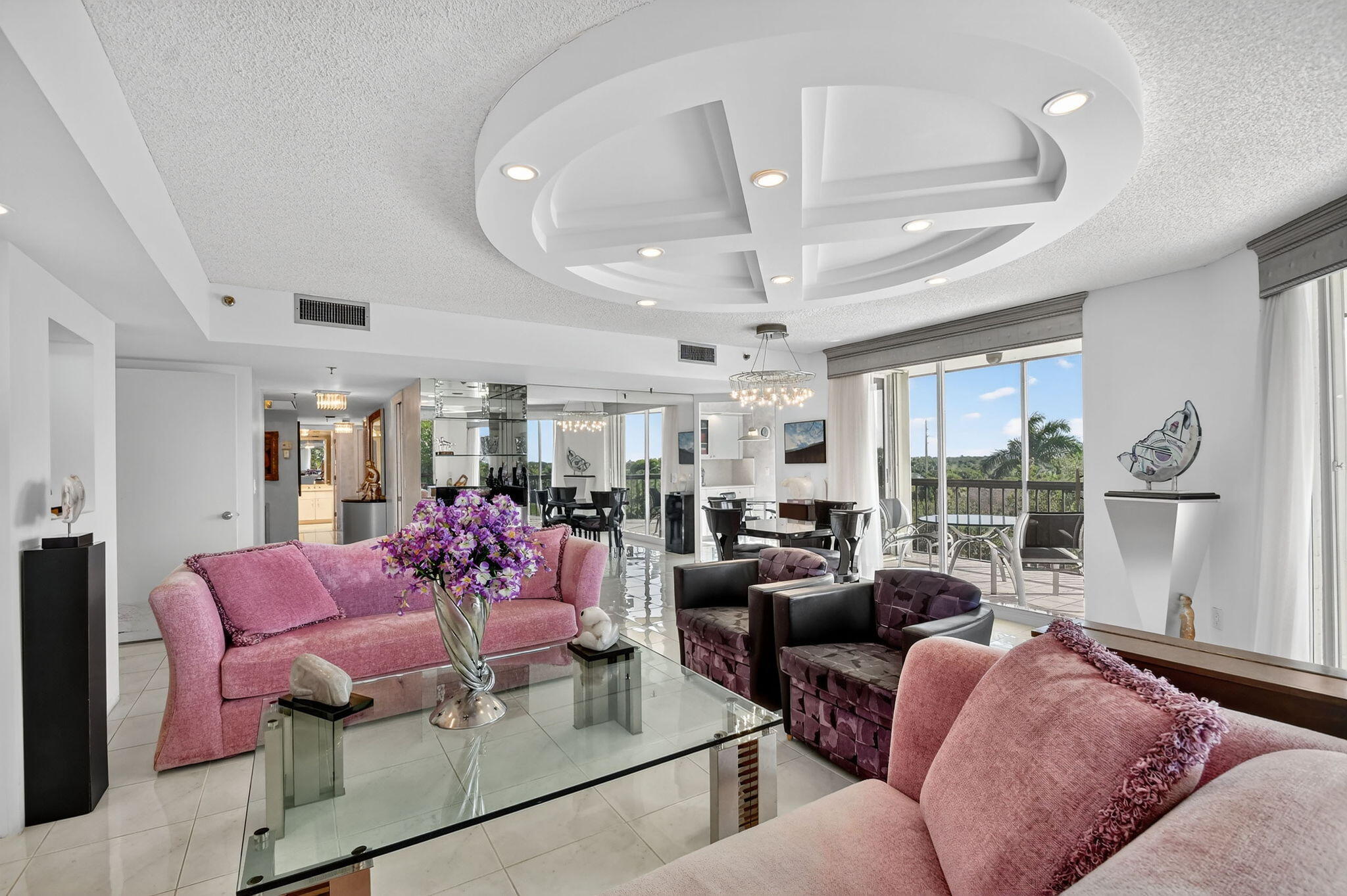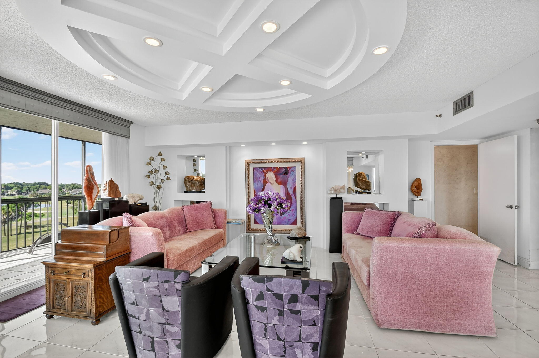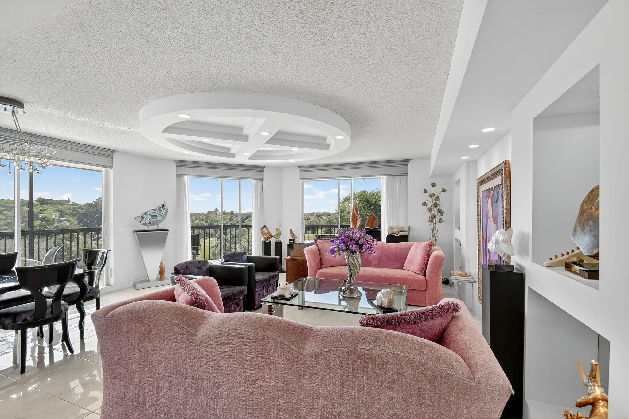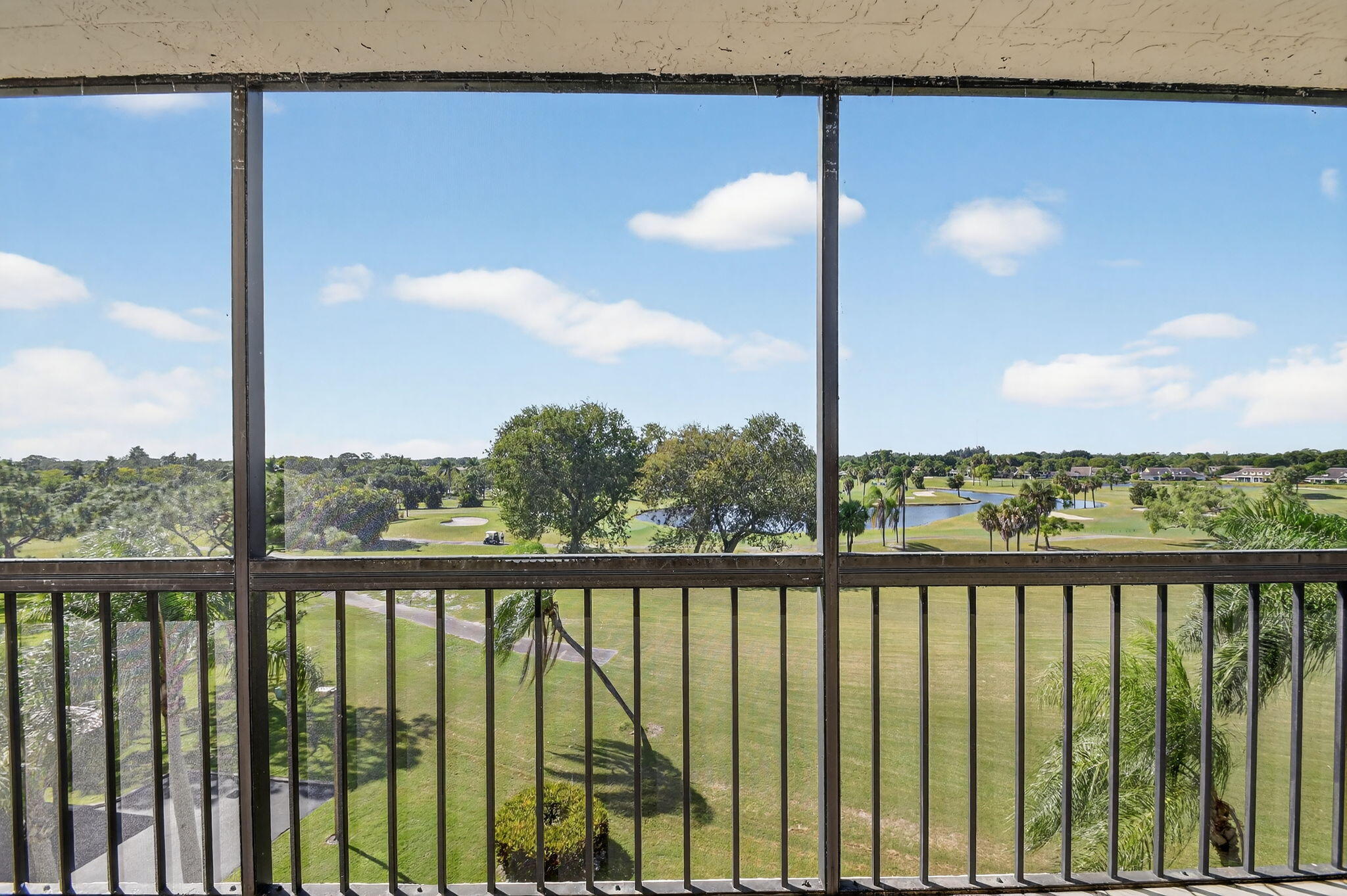 Spectacular golf, lake & tropical garden views from your wrap around screened enclosed balcony. This corner 3/2 condo is the largest of all Valencia's Models. Multiple sliding doors draw in natural sun light creating a warm ambiance. In the evening enjoy beautiful sunsets on your screened porch. Enjoy sit down kitchen, large washer/dryer, extra storage, walk in closet, Roman Tub, bar, pantries, accordion storm shutters & carport. Experience peace & security of manned guard gates & 24-hour security patrols. Your tropical pool is just out your front door. In this amazing location you are minutes from Florida Turnpike, I95, airports, entertainment, restaurants, shopping, medical centers, places of worship & many beautiful beaches. Golf memberships are available but are not mandatory