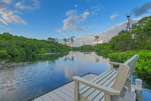Double Lot .76 acres on the River with 140 ft of water frontage. Two Properties being sold together. Lot 8 is a completed property and fully developed. Lot 9 has been cleared, filled, and graded, setting the stage for your future vision. Ready to build on, or it can be combined with the current home (lot 8) to make one large property on the River. New Large Dock, Pilings and a New Floating Dock are already in place. A Special Property with a 'lot' of potential. Stunning Renovated CBS Modern Home with Detached Guest House, Large Captivating Pool, Cedar Built-In Sauna, Turf Rooftop Decks and Lawn, Expansive Silver Travertine Driveway & Pool Deck, Hardscaping with Private Gated Entry. Epic Views of Loxahatchee River & Jonathon Dickinson State Park with sunset views. Minutes to the beach.Ocean access from the River. 5 Bedrooms, 4.5 Bathrooms offering nearly 5000 sq ft of Airy Living Space with Abundant Natural Light. Large Private Property with 18 sq. miles of Park Land for Hiking/Biking Trails from your back door access. Awe-Inspiring Second Level Master Bedroom Suite with office/exercise room and outside shaded deck offering breathtaking 180 degree views of the River and Park. Access to the outside from every room in the house via patio, balcony, deck, and rooftop. New recent upgrades include: New Roof, Entrance & Exit aluminum powder coated modern Driveway Gates, Silver Travertine Driveway, Porcelain Floors in kitchen, family room, dining room, bathroom, laundry room, and center Glass Staircase area, new Tiki Hut, exterior & interior Painting, extensive Landscaping, Hardscape work including Black Polished Japanese Stones surrounding property, and exterior stucco/wood work. Gourmet kitchen, Two dramatic and elegant working marble fireplaces, custom glass staircase railing, Impact glass windows and doors, Three car garage w/ finished floor, Volume Ceilings, Large Heated Salt Water dark bottom Pool with Glass Tile and pool shelf(baby friendly), Silver travertine decking throughout the backyard, large covered front porch, stairs, paths, balconies and lanai area. Large driveway with ample parking for cars, boats, or RV. Security cameras & Alarm system. No HOA fees and low Martin County taxes. Just minutes to shopping, fine & casual dining, entertainment, and the beach. PBI is 30 minutes away.