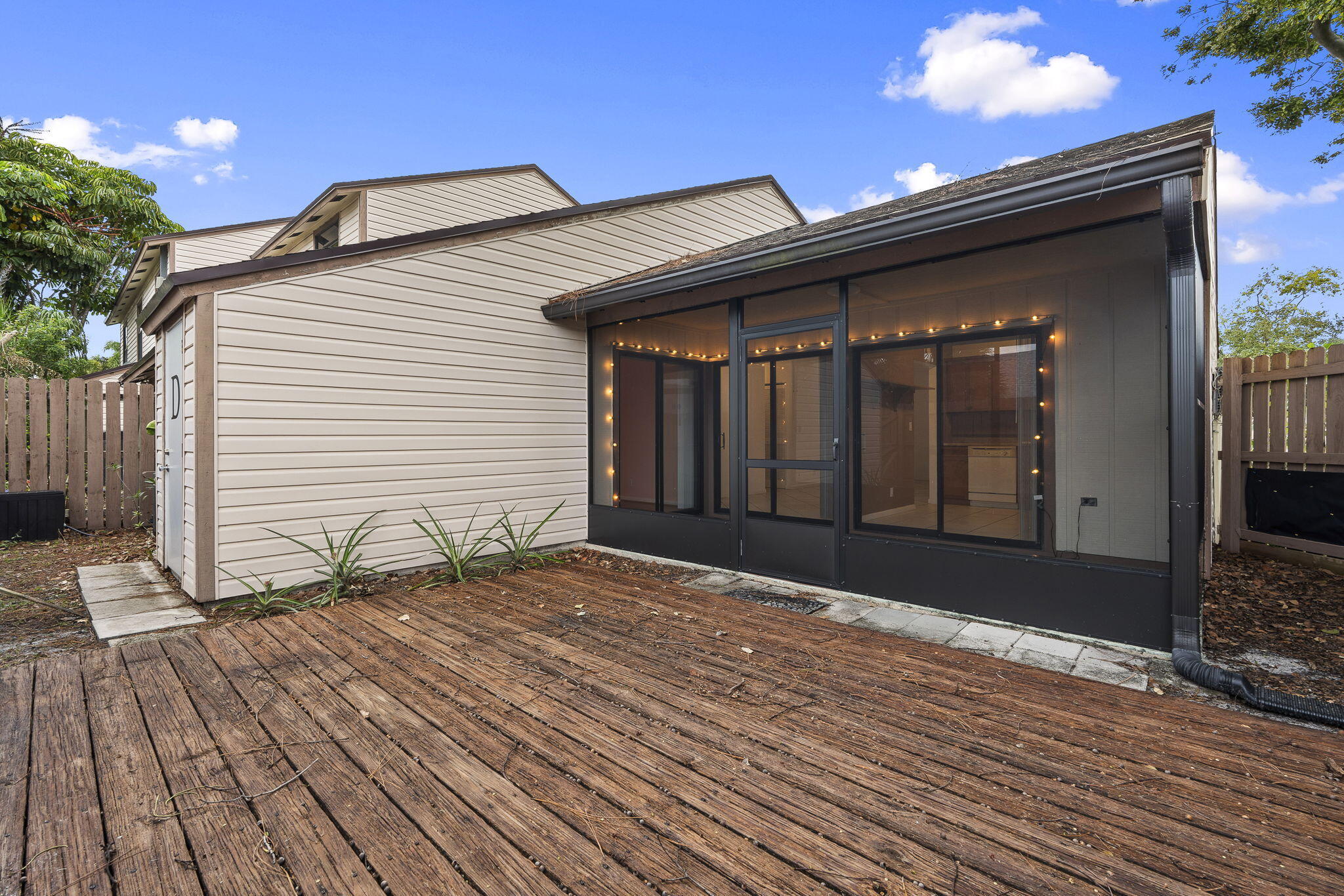 Location, location, location!! Located in the heart of Jupiter, all of this areas amenities are within just a few minutes: Walmart, medical offices, banks, post office, easy access to I-95 & plenty of shopping & dining options that wont leave you disappointed. 3 sliding glass doors open to a peaceful deck & fully fenced yard - landscape to your hearts desire or sunbathe in privacy. Vaulted ceilings enhance the space. Plenty of natural light. Full size washer & dryer in unit. Enjoy the pool or take a short drive to the beach. Assigned parking is just in front of your door.
