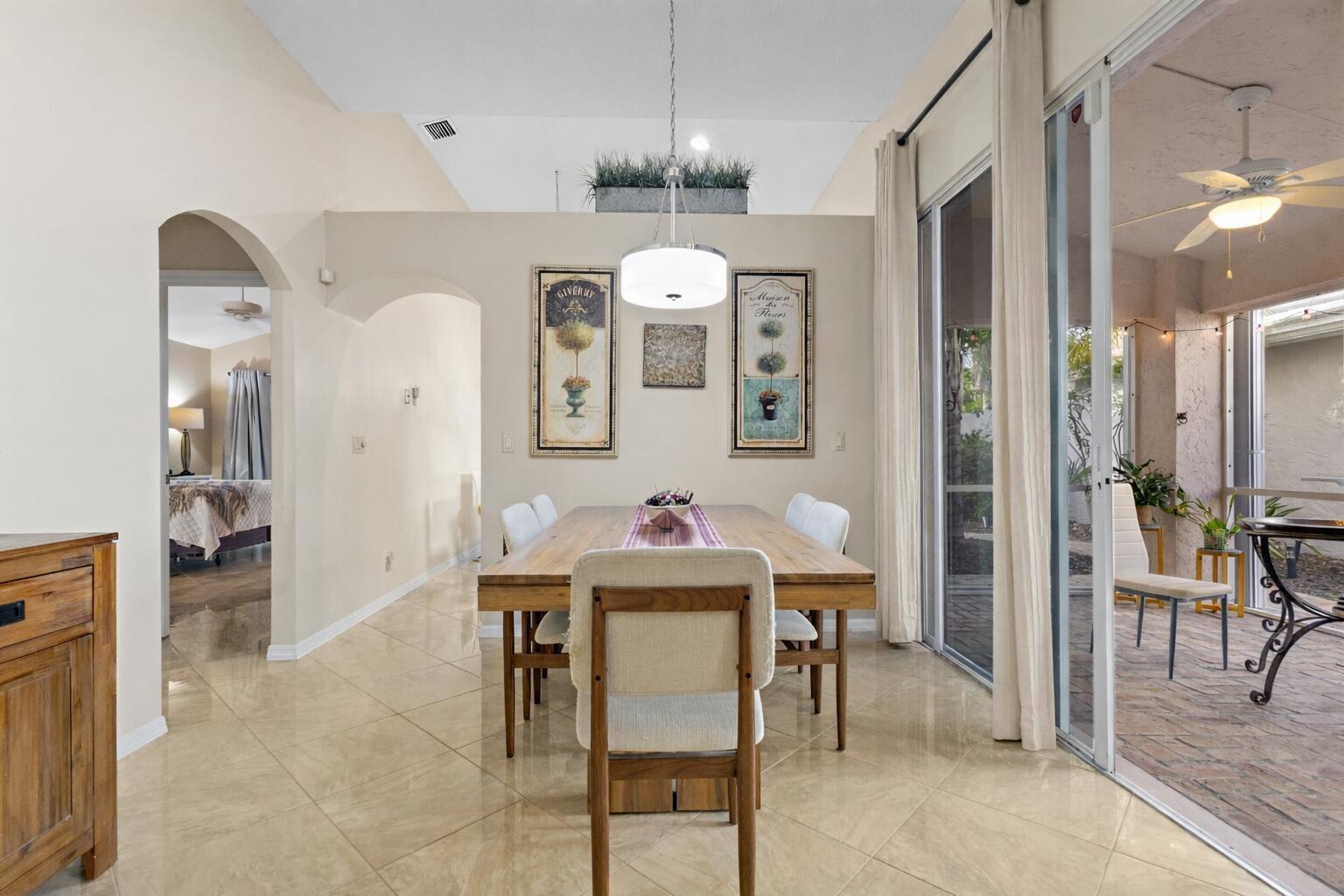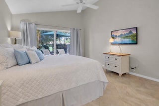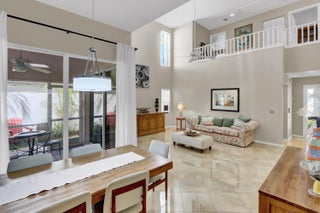 Golf course home in prestigious Barclay Club at PGA National overlooking the Fazio Course. This light and bright residence features a primary bedroom on the main level, soaring ceilings, and an open floor plan. Updated kitchen with new LG stainless steel appliances. Private screened patio offers peaceful fairway and greenery views.Recent upgrades include a 3-year-old A/C, Guardian storm shutters, and Samsung washer and dryer. Select furnishings may convey, offering a potential turnkey opportunity. Barclay Club amenities include a lakeside community pool and beautifully maintained grounds. HOA dues include basic cable and internet through Xfinity, front yard landscaping, common area landscaping, and common area maintenance and insurance.Two-car garage, excellent privacy, and no mandatory membership. Conveniently located near beaches, dining, entertainment, and world-class shopping.