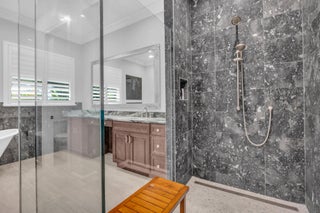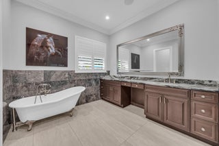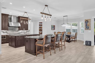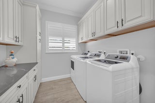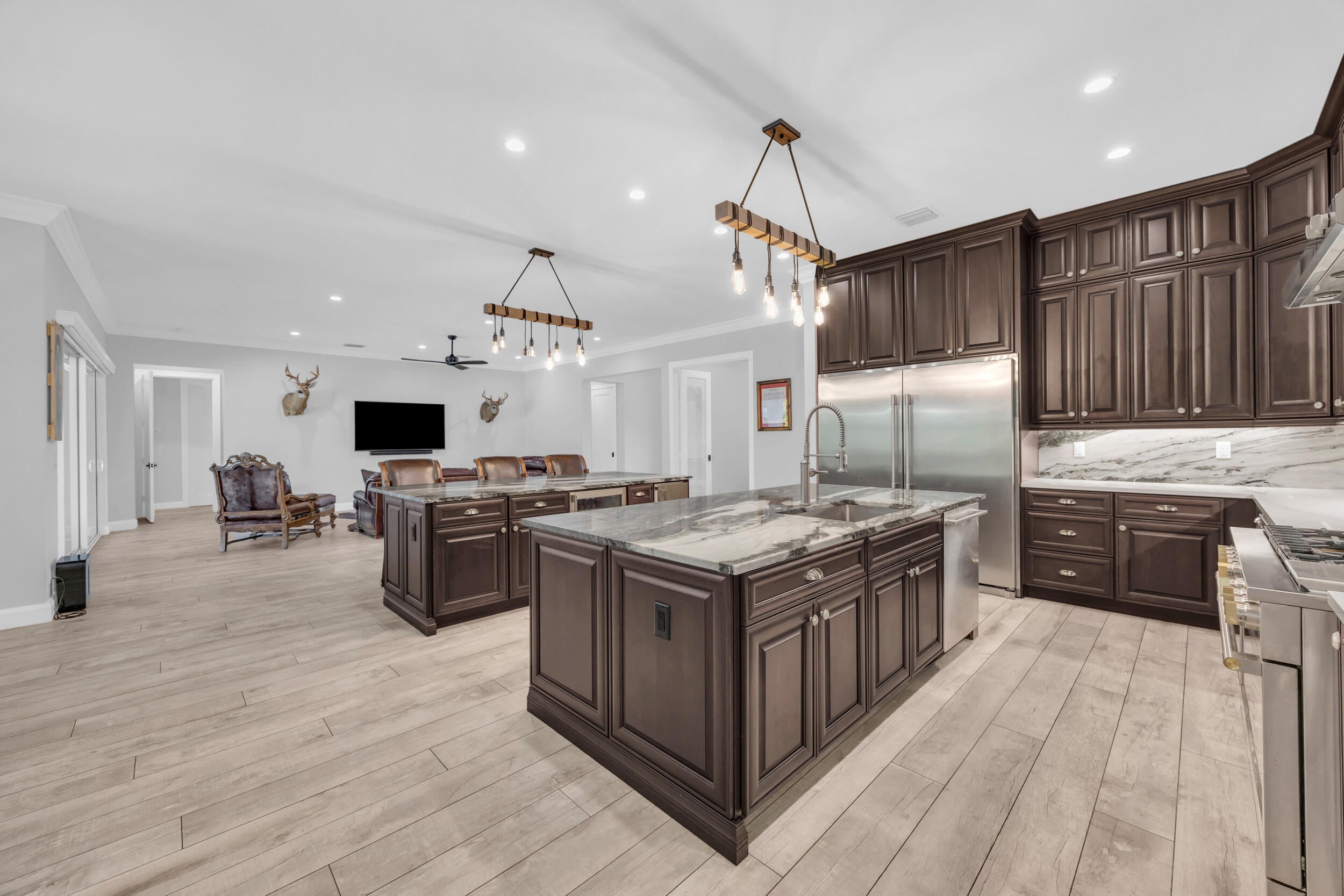 Experience the pinnacle of modern luxury at 5481 Hibiscus Rd, a 2022-built custom CBS estate with a detached guest cottage, perfectly situated in the prestigious Pennock Point neighborhood of Jupiter. Every detail of this residence reflects thoughtful design and timeless sophistication.Step inside to soaring 12-foot ceilings, elegant crown molding, and plantation shutters throughout. The heart of the home is a chef-inspired kitchen featuring solid wood cabinetry, soft-close drawers, and dual oversized islands. Exquisite marble and quartz countertops complement a suite of premium GE Monogram appliances, including a 6-burner gas range with griddle, pot filler, built-in ice maker, and wine cooler. The open-concept layout flows seamlessly into the dining and livingareasideal for entertaining. The primary suite on the main level provides a serene retreat, highlighted by a double tray ceiling, dual walk-in closets, and a spa-like bath complete with a clawfoot soaking tub, frameless glass shower with waterfall head, and dual vanities. Two additional ensuite bedrooms offer privacy and comfort, while the second-floor guest suite features a private balcony overlooking the pool and lush backyard. Step outside to a resort-style oasis, complete with a freeform saltwater pool, travertine decking, and a spacious covered patio perfect for lounging or dining al fresco. A gas pool heater, pool chiller, and integrated rock speakers create the ultimate outdoor sanctuary. Smart-home features include a Sonos sound system throughout the interior and exterior, and Lutron Caseta lighting for custom ambiance. The CBS-built guest house offers a full kitchen, bedroom, bath, and complete storm protectionideal for visitors or extended stays.Additional highlights include a three-car garage, expansive 90x30' parking area perfect for a boat or RV, Cat 6 wiring, and an invisible pet fence.This exceptional property combines elegance, comfort, and technology in one of Jupiter's most sought-after communities